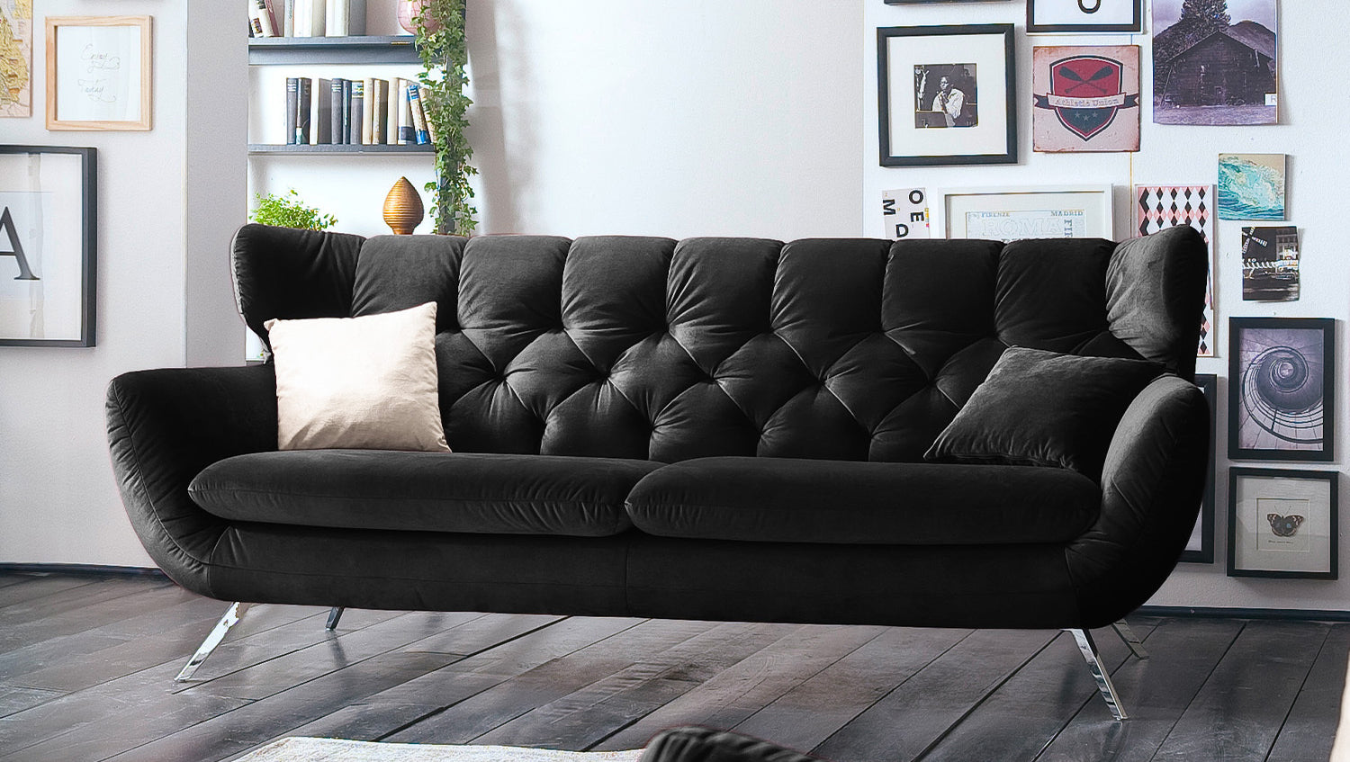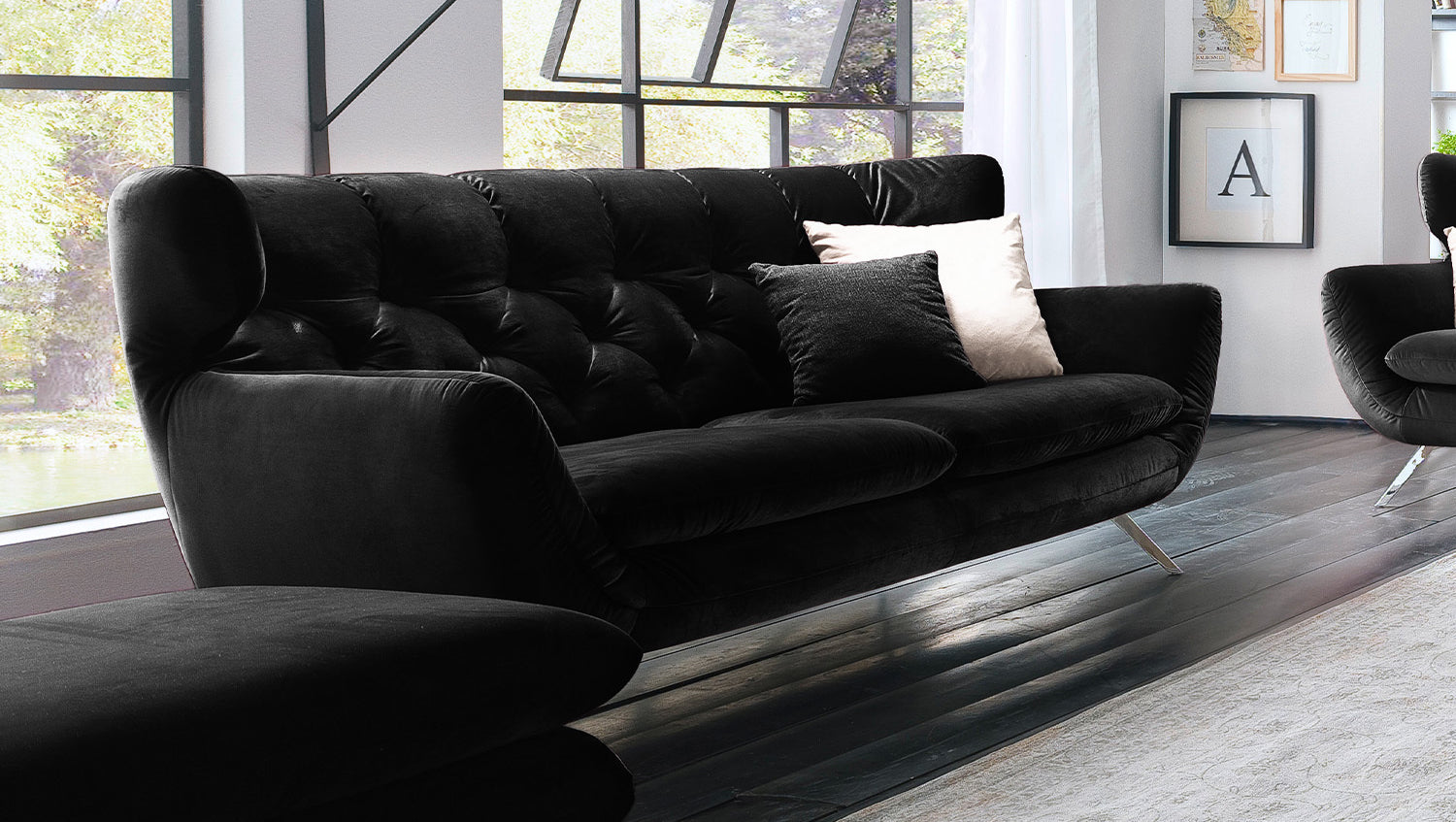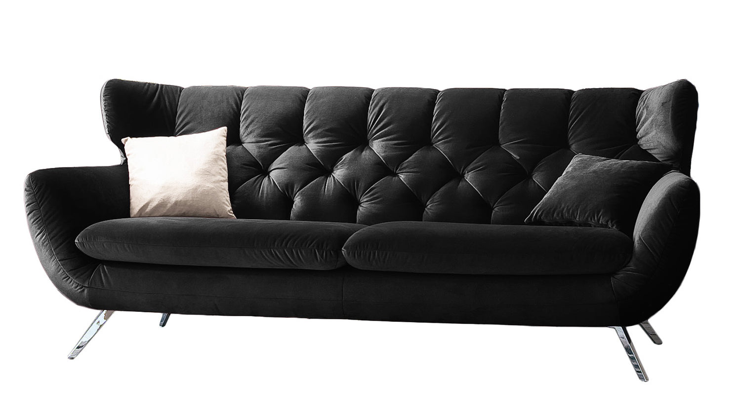 Das KAWOLA Sofa CHARME ist etwas ganz Besonderes! Es ist nicht nur ein Möbelstück, sondern ein wahres Design-Highlight, das neue Akzente im Wohnraum setzt. Der Stil des Sofas CHARME erinnert an die sechziger Jahre: Der Rücken wurde aufwendig abgesteppt ohne Knöpfe; die Rückenlehne wurde an den beiden Seiten leicht nach vorne gewölbt und erinnert an die Form eines Ohrensessels; die Füße aus Metall sind leicht ausgestellt. Die Polsterung des Sofas besteht aus PUR-Schaum und besticht durch ihren weichen und legeren Sitzkomfort. Die Sitzkissen passen sich der Körperform angenehm an. Selbstverständlich wurde das Sofa komplett in Velvet bezogen, so dass es auch frei in den Raum gestellt werden kann. Wer nicht nur ein Sofa sucht, sondern ein ganz besonderes Highlight, der liegt mit dem KAWOLA Sofa CHARME goldrichtig!