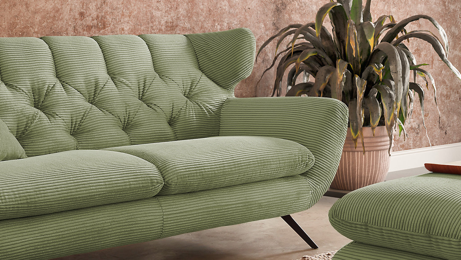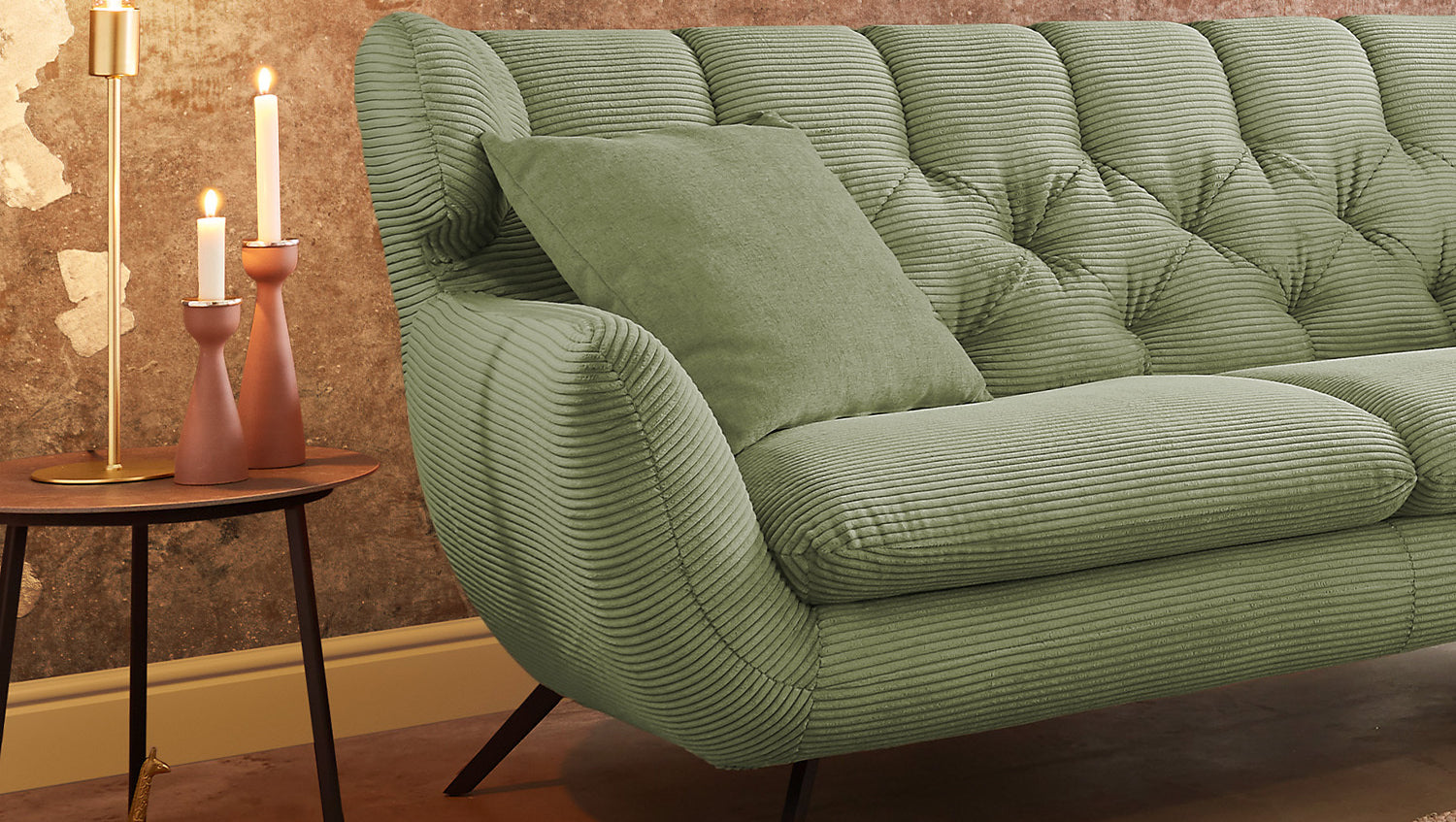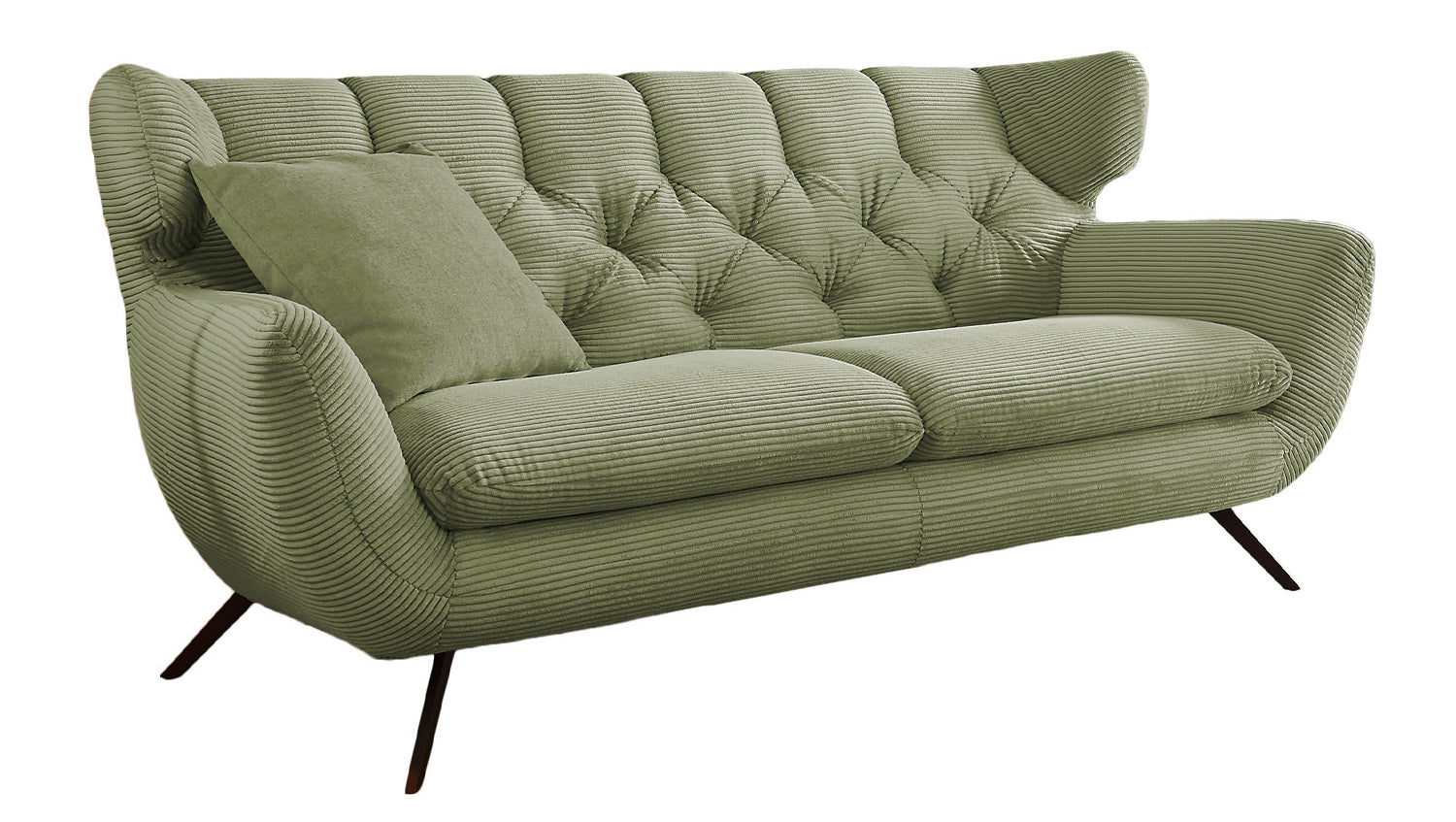 Das KAWOLA Sofa CHARME ist etwas ganz Besonderes! Es ist nicht nur ein Möbelstück, sondern ein wahres Design-Highlight, das neue Akzente im Wohnraum setzt. Der Stil des Sofas CHARME erinnert an die sechziger Jahre: Der Rücken wurde aufwendig abgesteppt ohne Knöpfe; die Rückenlehne wurde an den beiden Seiten leicht nach vorne gewölbt und erinnert an die Form eines Ohrensessels; die Füße aus Metall sind leicht ausgestellt. Die Polsterung des Sofas besteht aus PUR-Schaum und besticht durch ihren weichen und legeren Sitzkomfort. Die Sitzkissen passen sich der Körperform angenehm an. Selbstverständlich wurde das Sofa komplett in Cord bezogen, so dass es auch frei in den Raum gestellt werden kann. Wer nicht nur ein Sofa sucht, sondern ein ganz besonderes Highlight, der liegt mit dem KAWOLA Sofa CHARME goldrichtig!