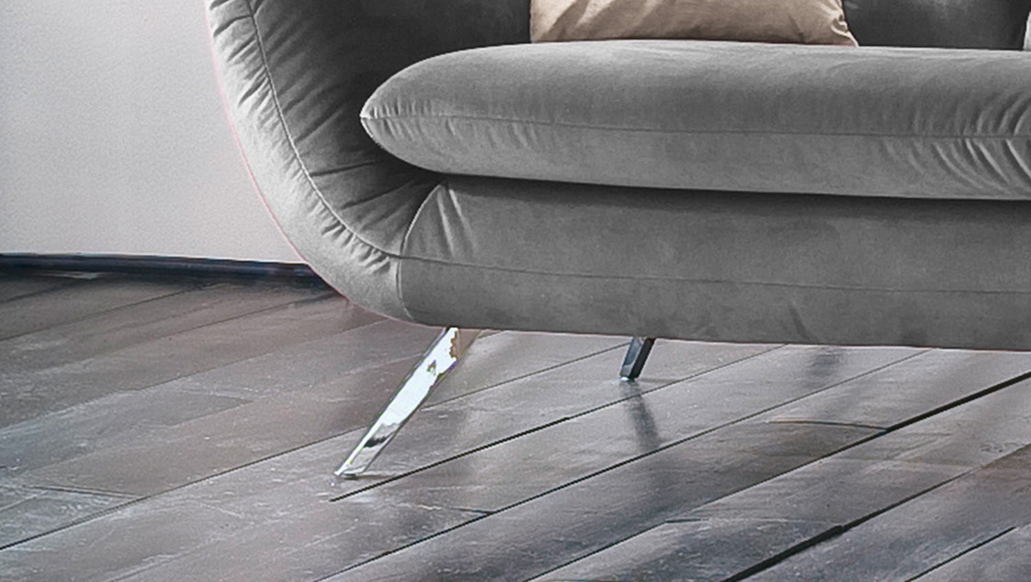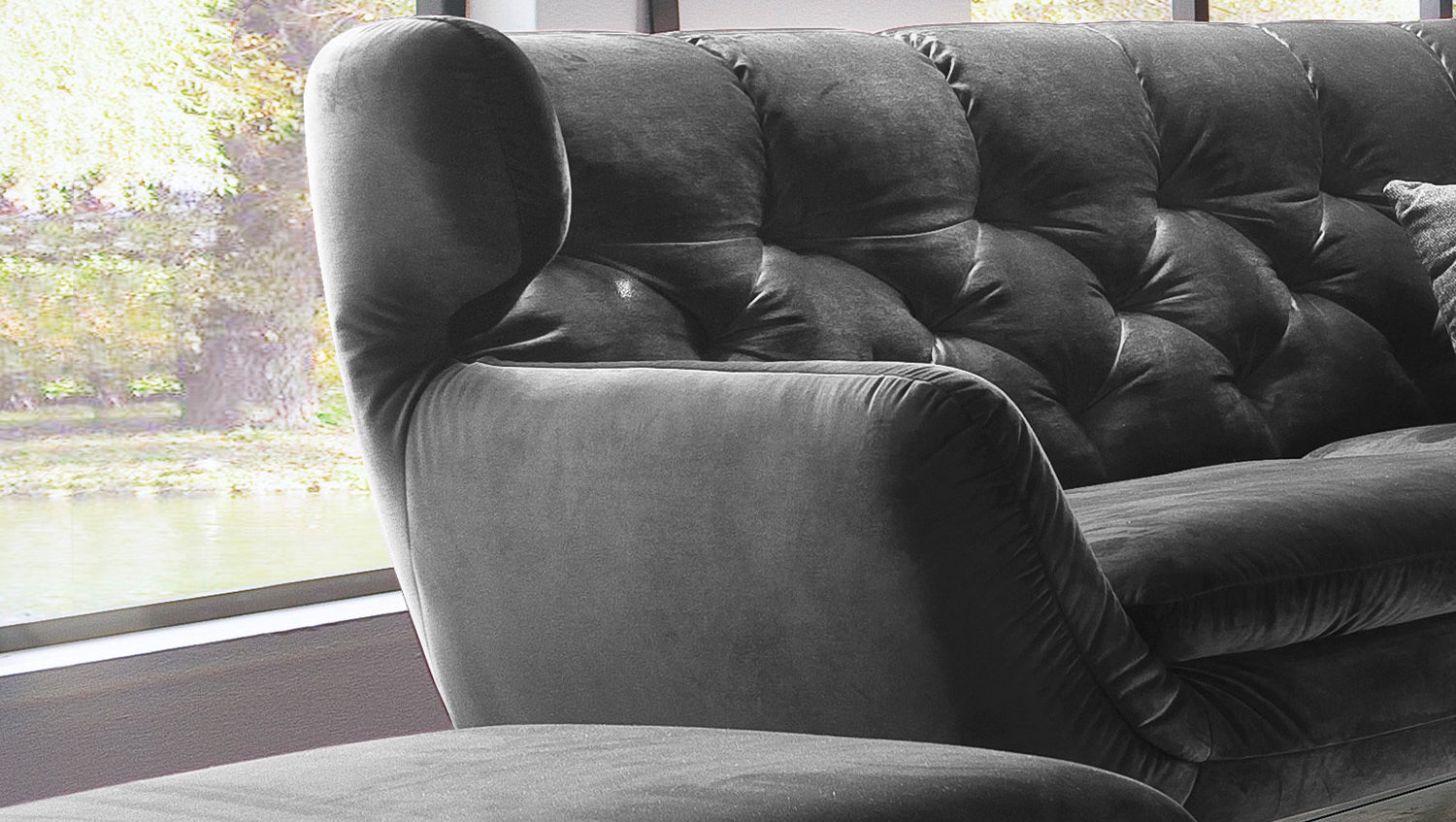 Selbstverständlich wurde das Sofa komplett in Velvet bezogen, so dass es auch frei in den Raum gestellt werden kann.