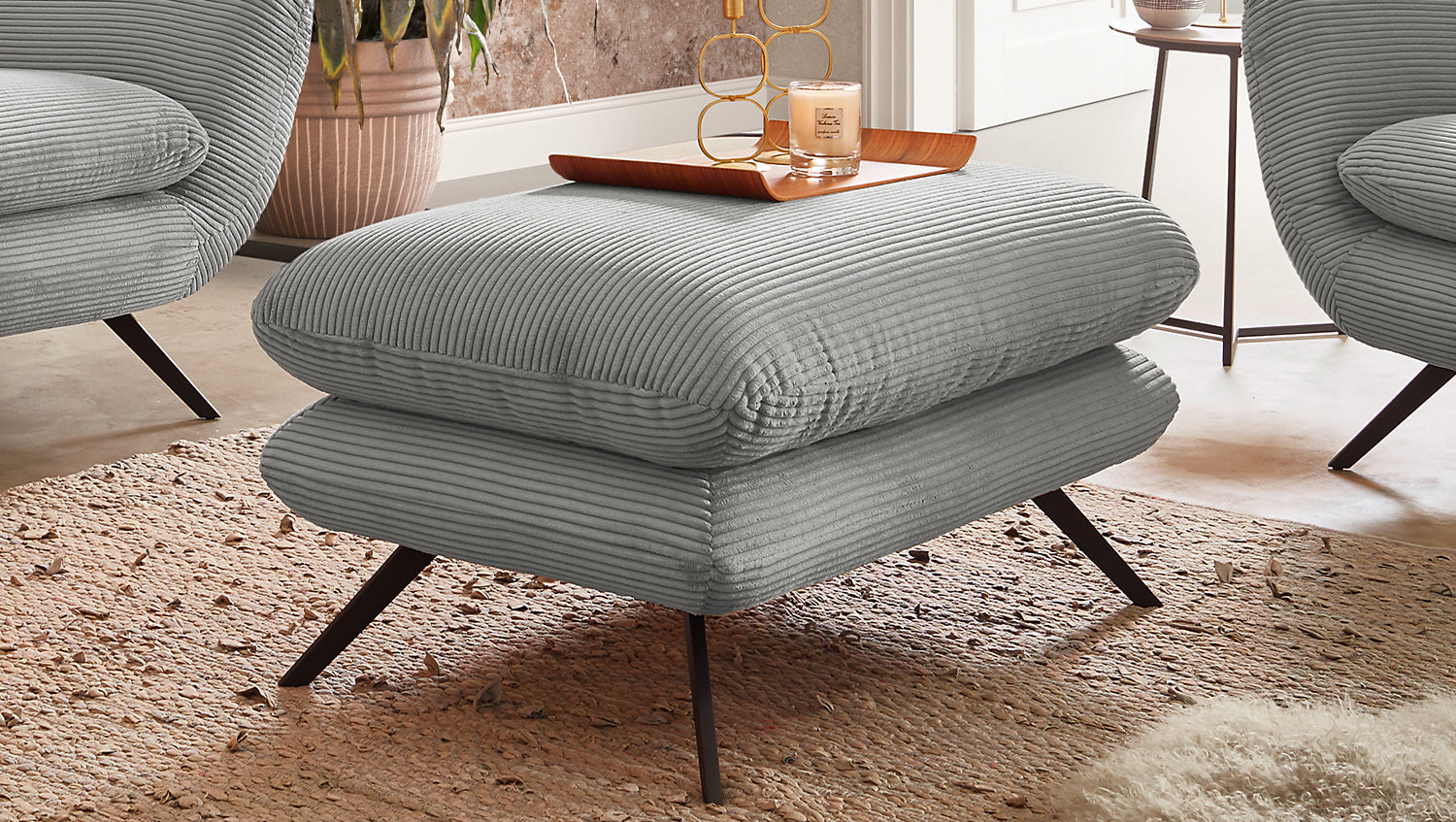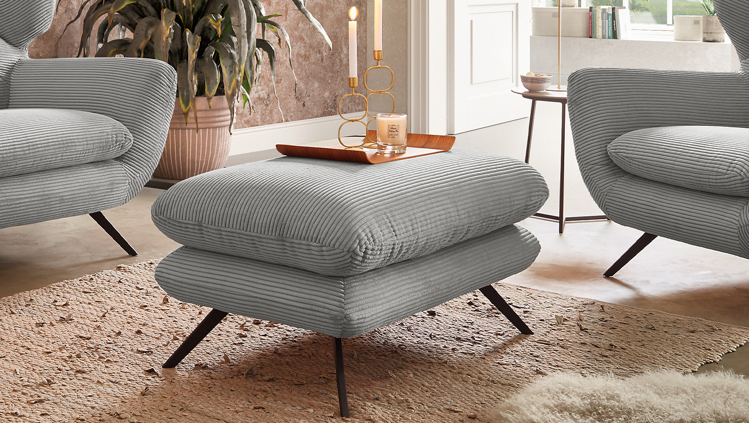 KAWOLA Hocker CHARME Hockerbank groß Cord hellgrau