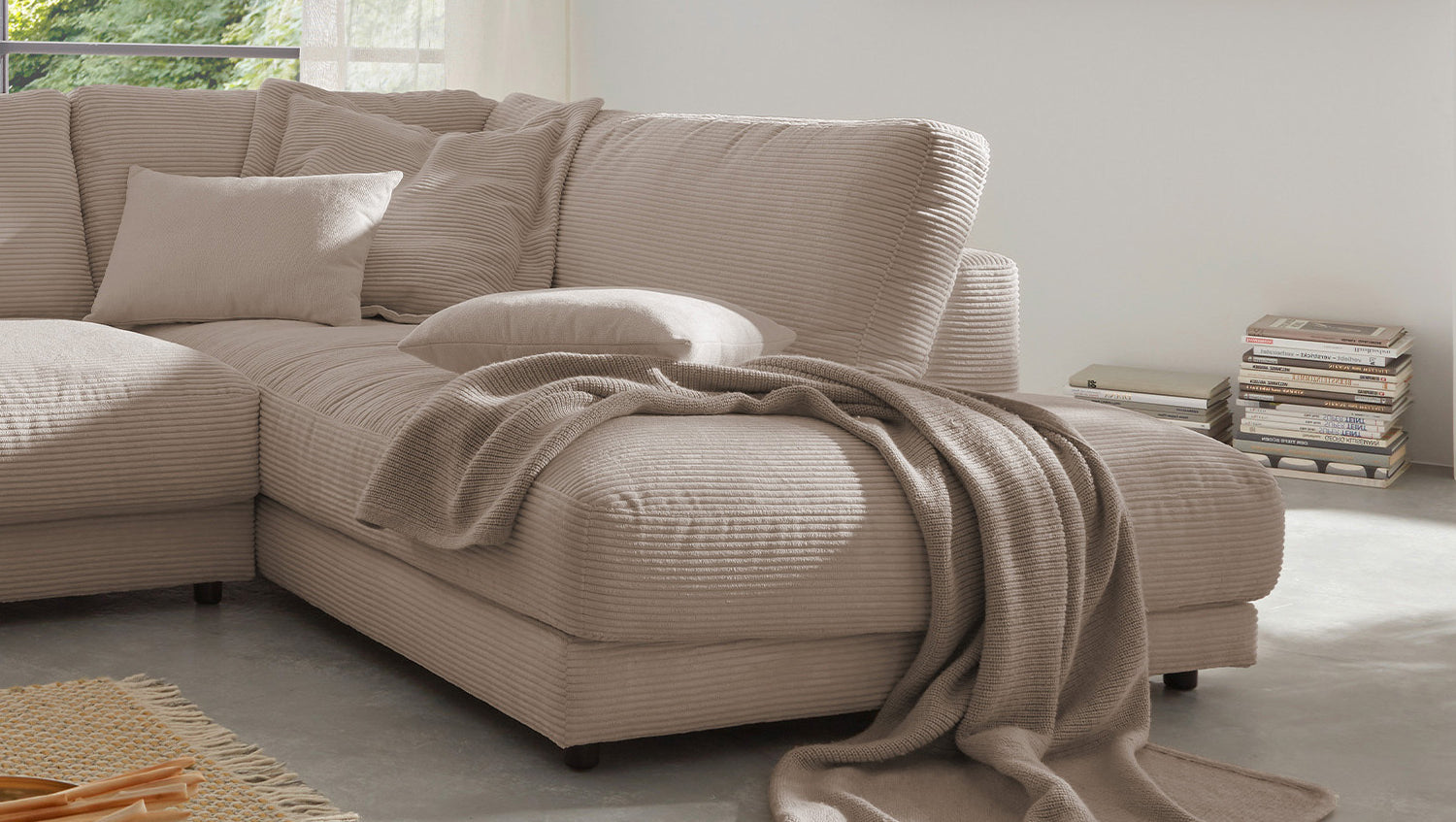 KAWOLA Sofa MADELINE Ecksofa Cord taupe