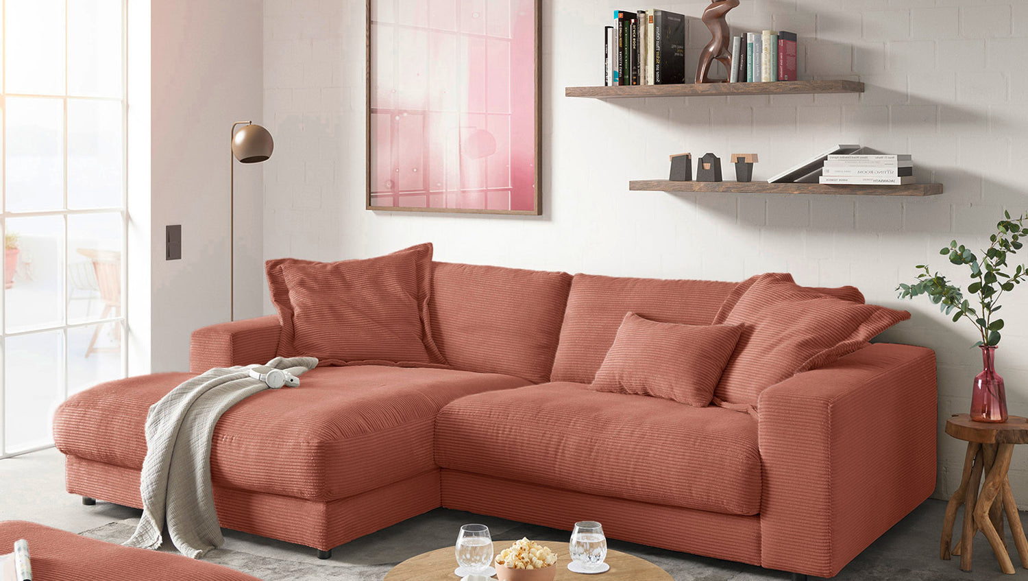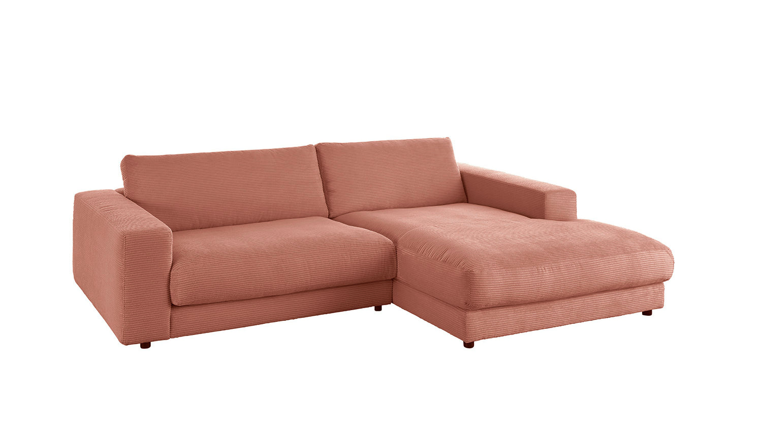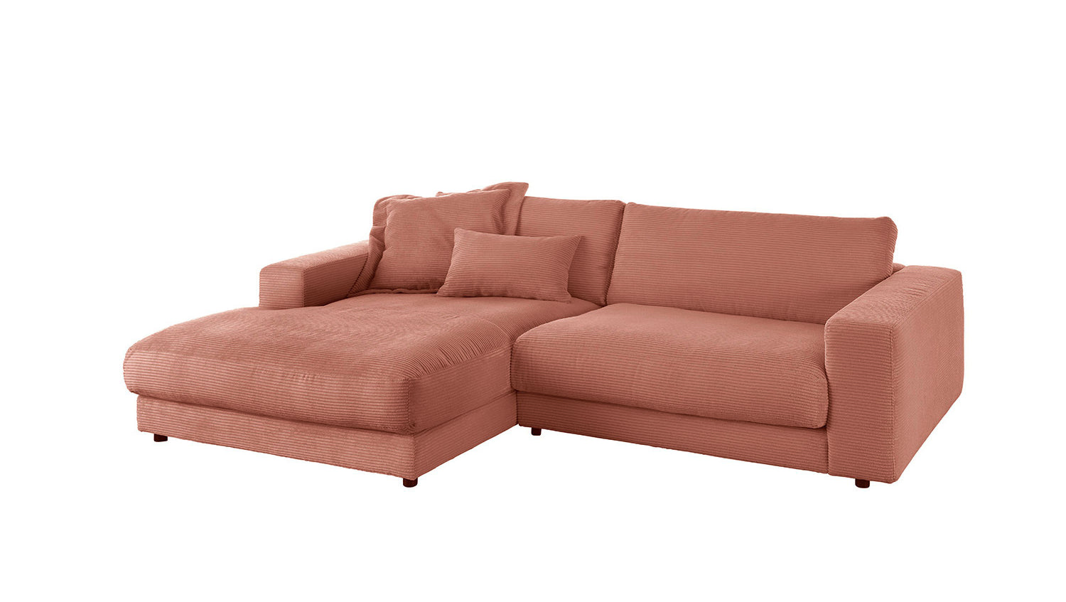 KAWOLA Sofa MADELINE Ecksofa mit Longchair Cord rost
