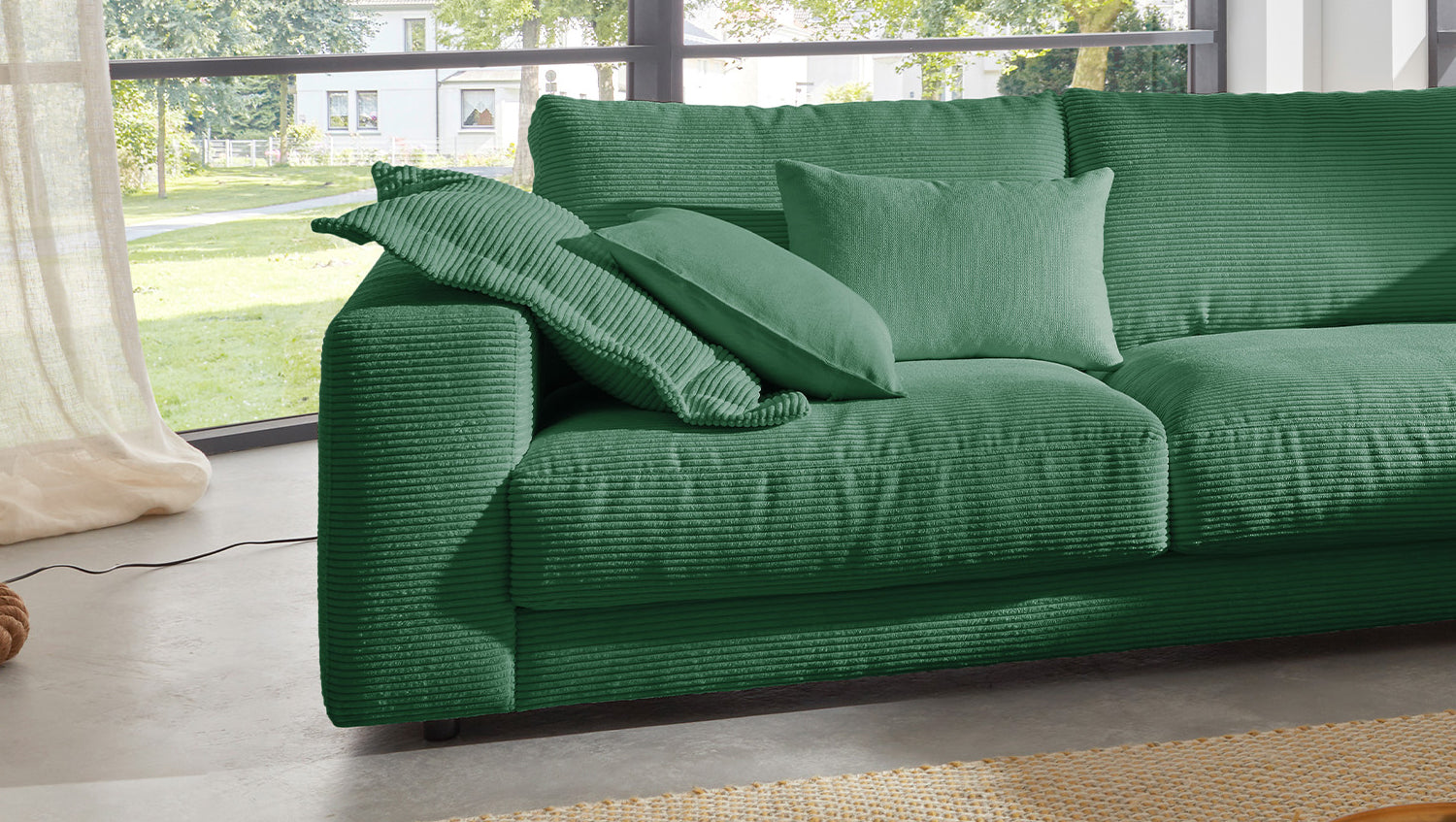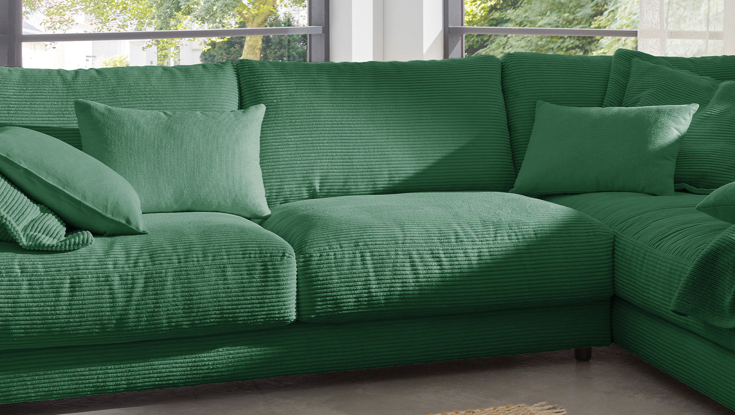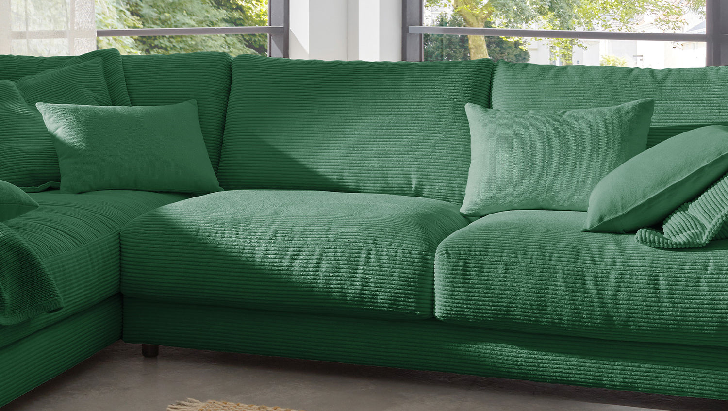 KAWOLA Sofa MADELINE Ecksofa Cord smaragd
