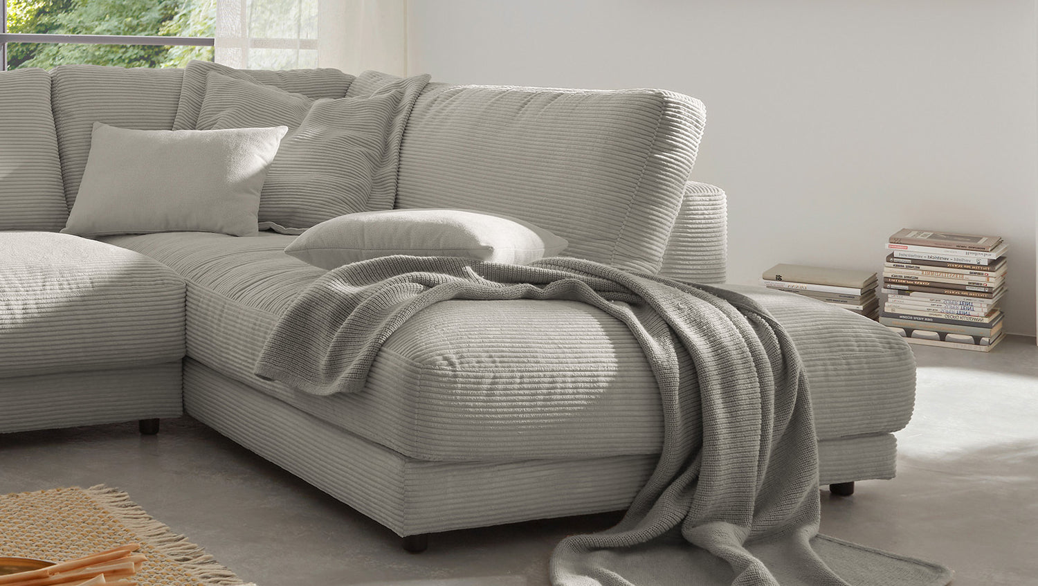 KAWOLA Sofa MADELINE Ecksofa Cord steingrau