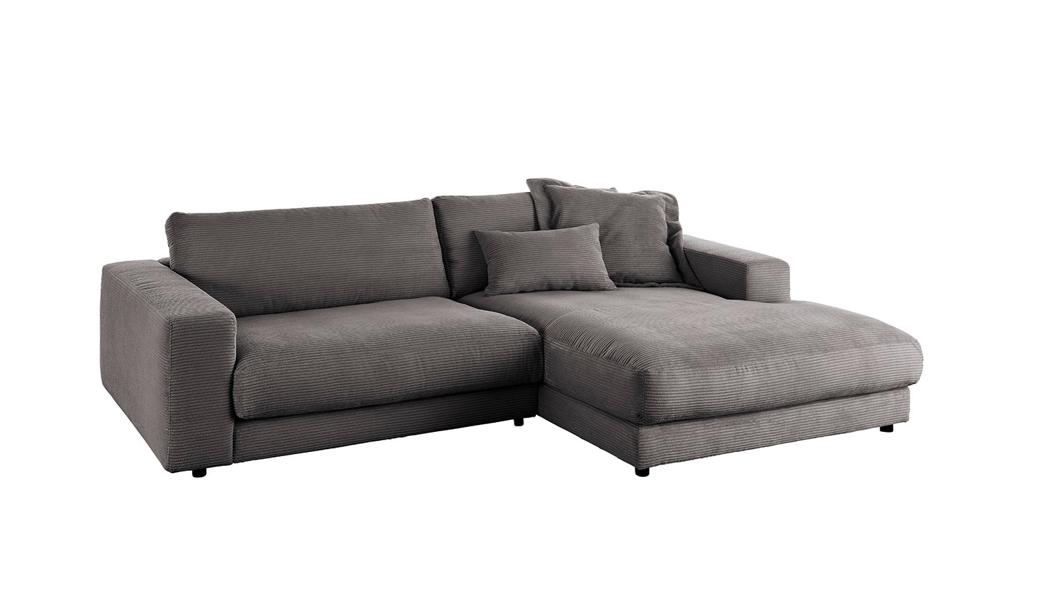 KAWOLA Sofa MADELINE Ecksofa mit Longchair Cord grau