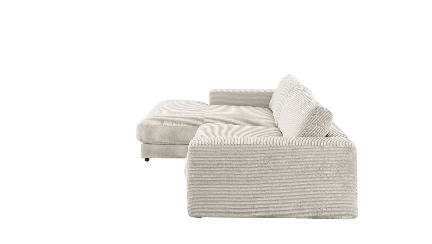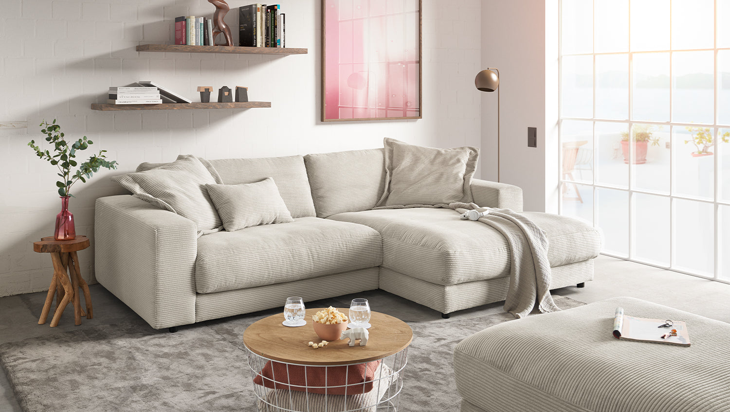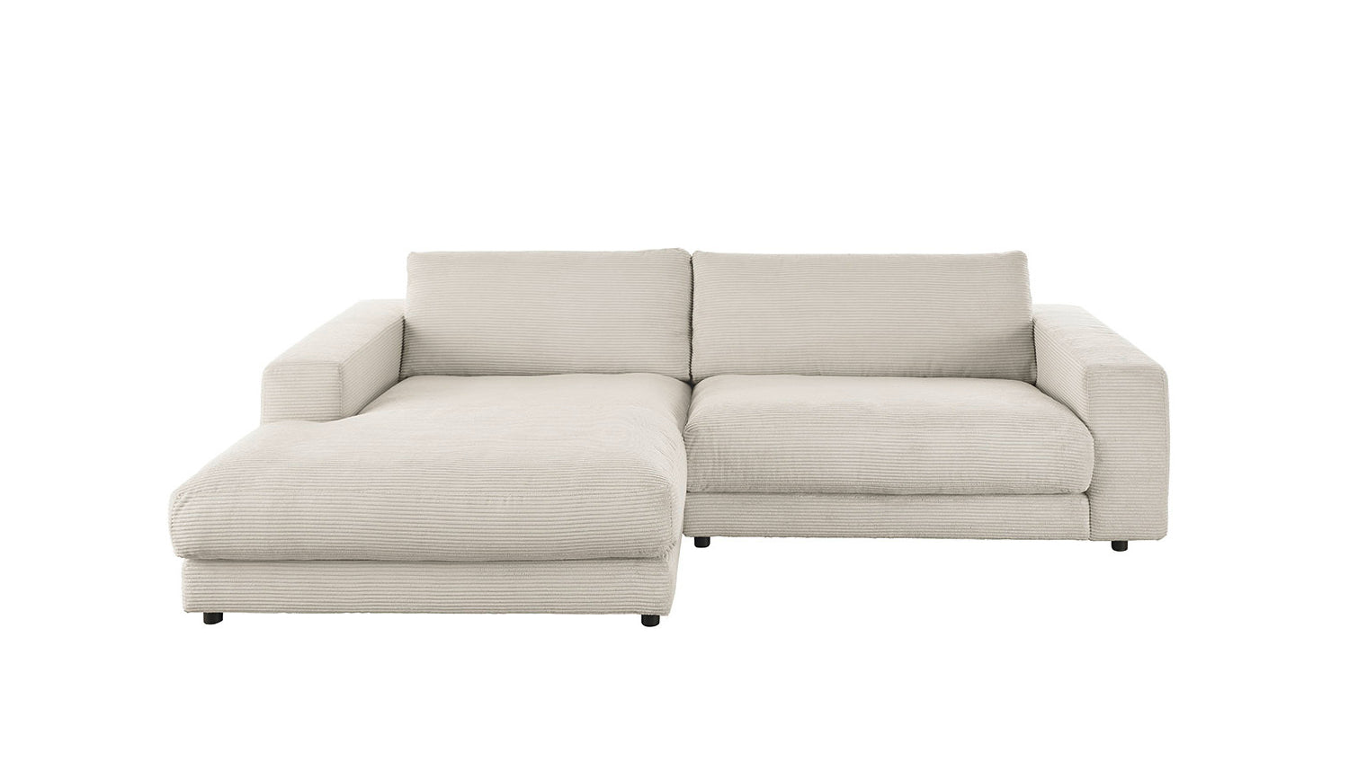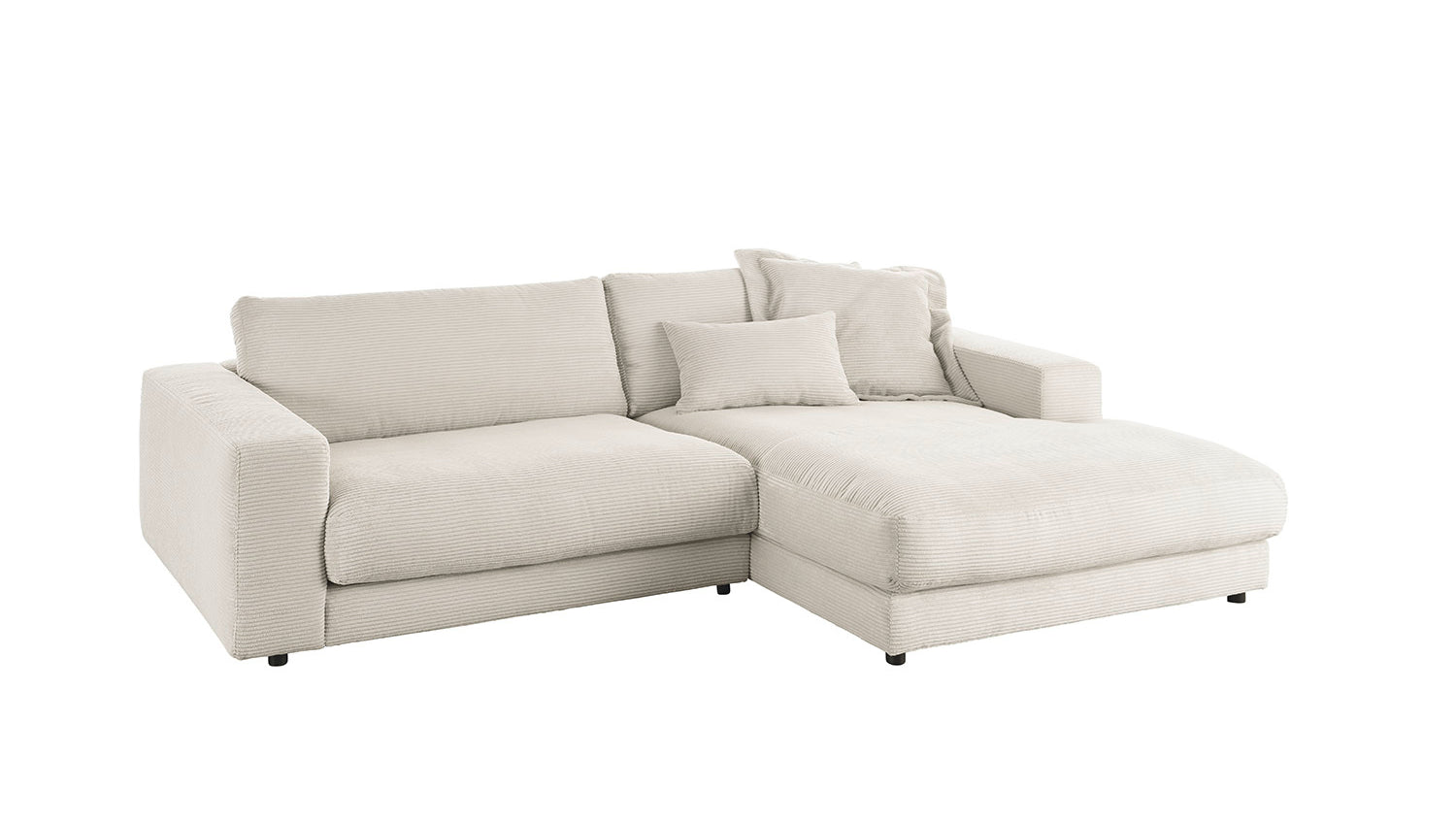 KAWOLA Sofa MADELINE Ecksofa mit Longchair Cord hellgrau