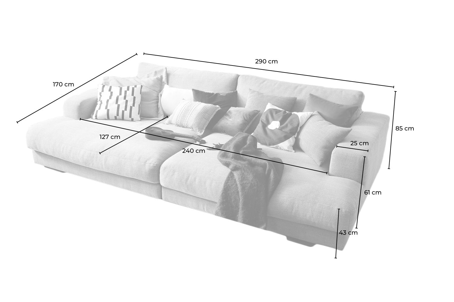 Das KAWOLA Big Sofa MADELINE besticht durch seinen hervorragenden Sitzkomfort, der durch die äußerst legere Polsterung zustande kommt und zum Verweilen und Entspannen einlädt. Das ungewöhnliche Maß und seine moderne und urbane Form verleihen dem Sofa sein unverwechselbares Aussehen und bieten ausreichend Platz, um gemütliche Abende zu verbringen. Mit seinem zeitlosen Design fügt es sich nahtlos in jede Umgebung ein und macht auch frei im Raum stehend eine gute Figur. Wenn Sie Ihrem Wohnzimmer einen außergewöhnlichen Anstrich verleihen wollen, ist das Big Sofa MADELINE definitiv das Richtige für Sie!