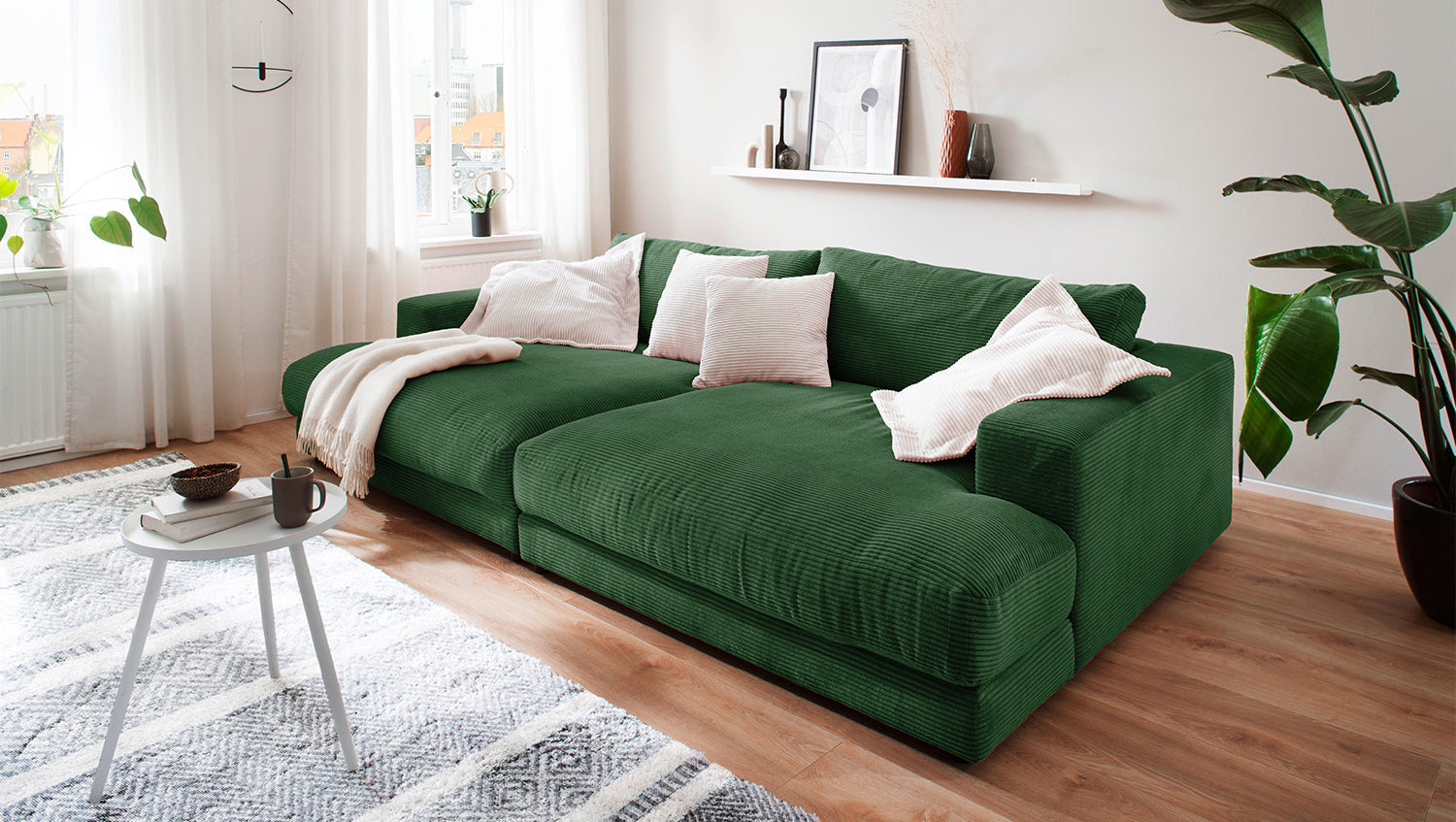 Das KAWOLA Big Sofa MADELINE besticht durch seinen hervorragenden Sitzkomfort, der durch die äußerst legere Polsterung zustande kommt und zum Verweilen und Entspannen einlädt. Das ungewöhnliche Maß und seine moderne und urbane Form verleihen dem Sofa sein unverwechselbares Aussehen und bieten ausreichend Platz, um gemütliche Abende zu verbringen. Mit seinem zeitlosen Design fügt es sich nahtlos in jede Umgebung ein und macht auch frei im Raum stehend eine gute Figur. Wenn Sie Ihrem Wohnzimmer einen außergewöhnlichen Anstrich verleihen wollen, ist das Big Sofa MADELINE definitiv das Richtige für Sie!