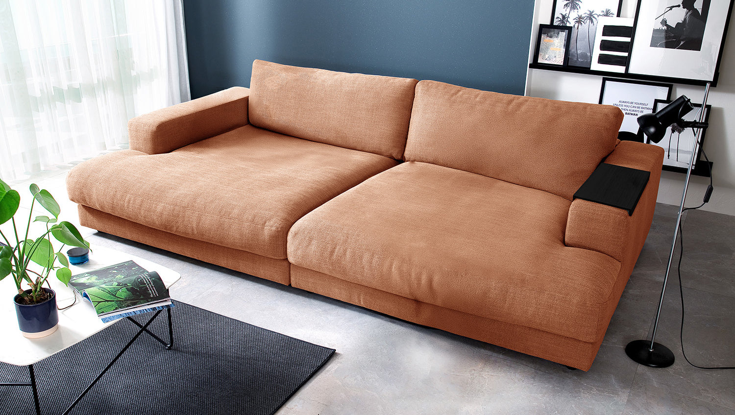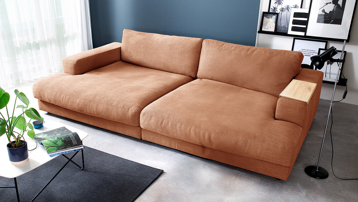 Das KAWOLA Big Sofa MADELINE besticht durch seinen hervorragenden Sitzkomfort, der durch die äußerst legere Polsterung zustande kommt und zum Verweilen und Entspannen einlädt. Das ungewöhnliche Maß und seine moderne und urbane Form verleihen dem Sofa sein unverwechselbares Aussehen und bieten ausreichend Platz, um gemütliche Abende zu verbringen. Mit seinem zeitlosen Design fügt es sich nahtlos in jede Umgebung ein und macht auch frei im Raum stehend eine gute Figur. Wenn Sie Ihrem Wohnzimmer einen außergewöhnlichen Anstrich verleihen wollen, ist das Big Sofa MADELINE definitiv das Richtige für Sie!