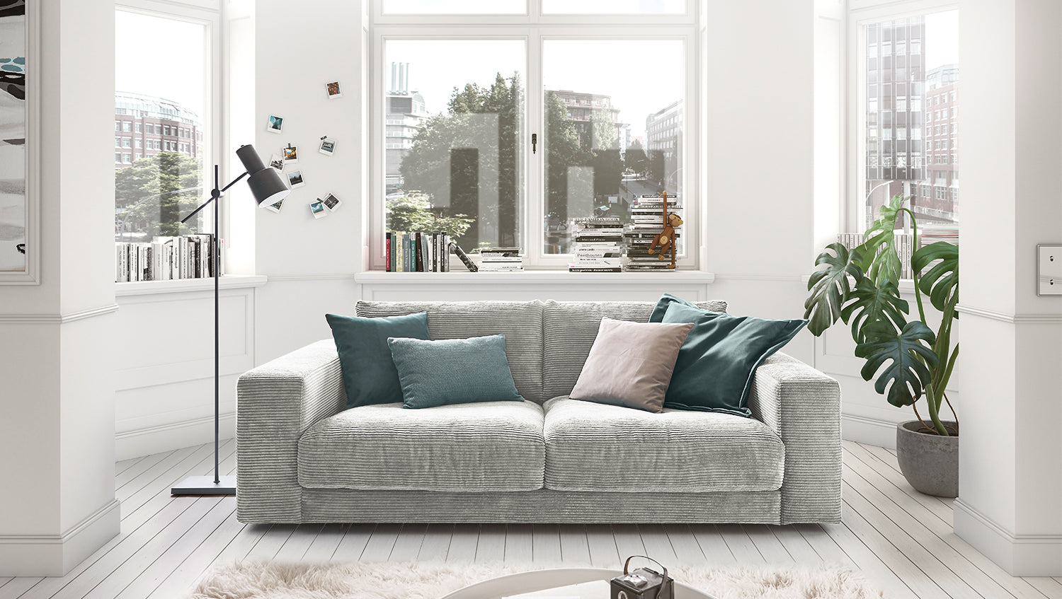 KAWOLA Sofa MADELINE 2-Sitzer Cord hellgrau