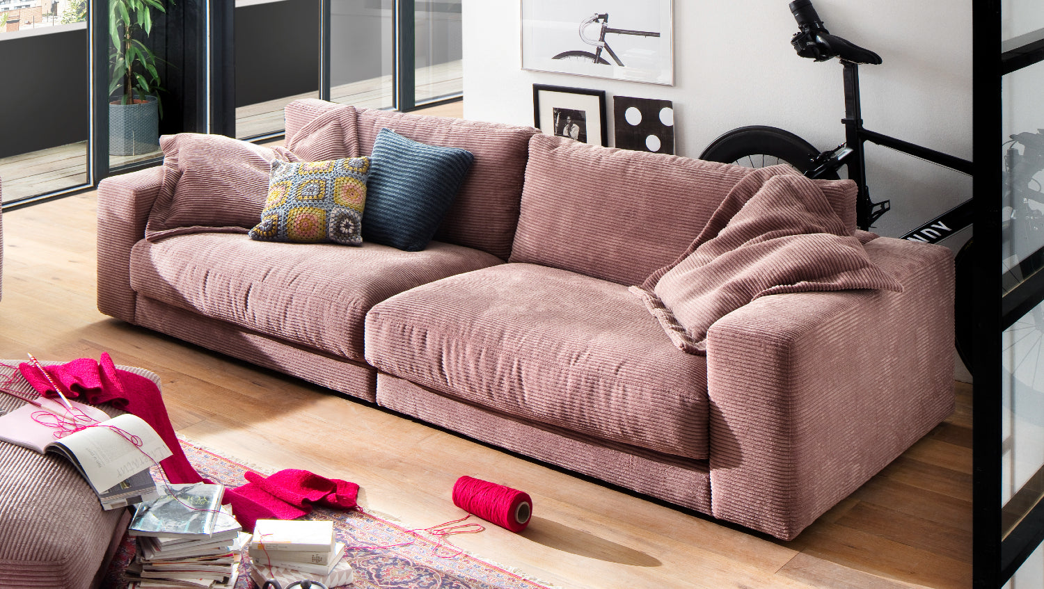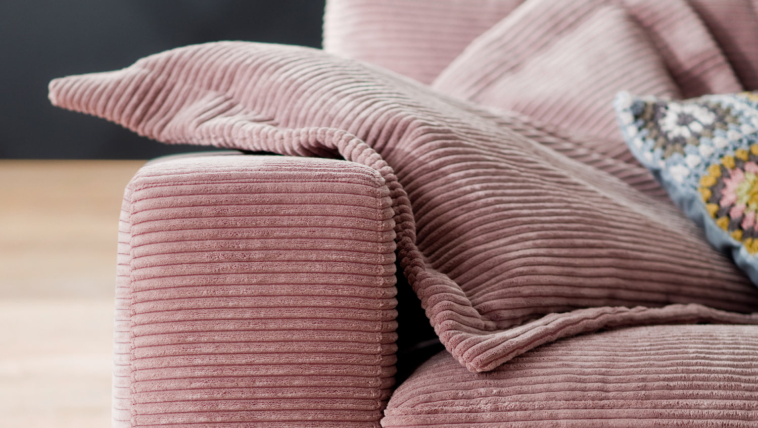KAWOLA Sofa MADELINE 3-Sitzer Cord rosa