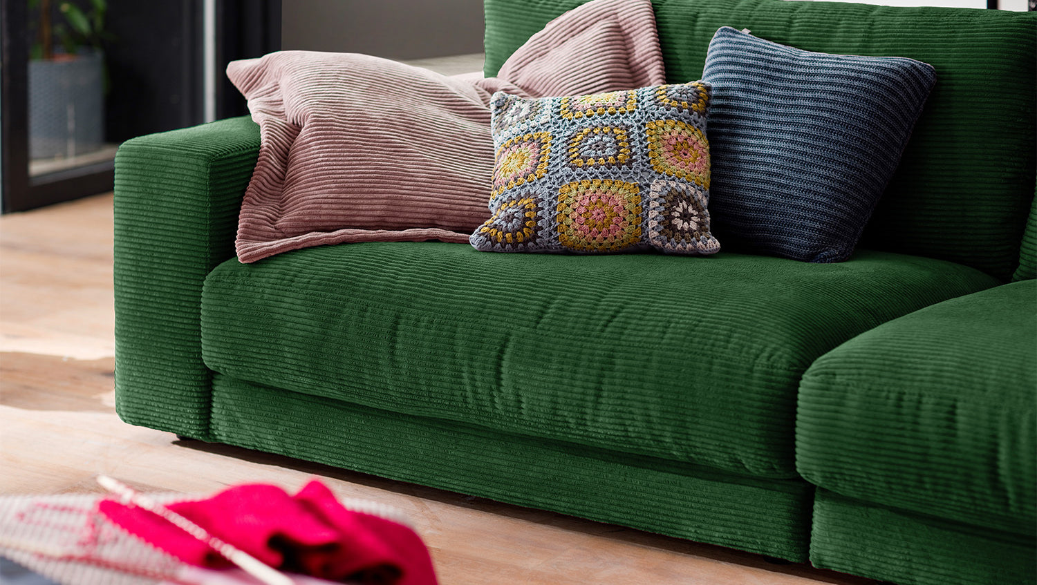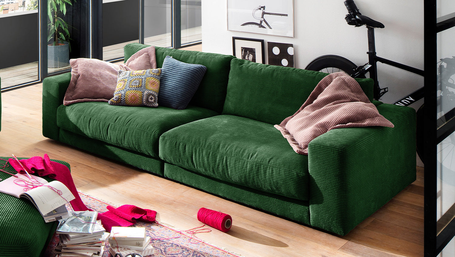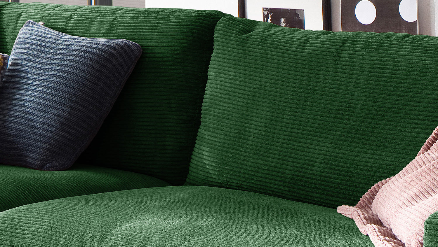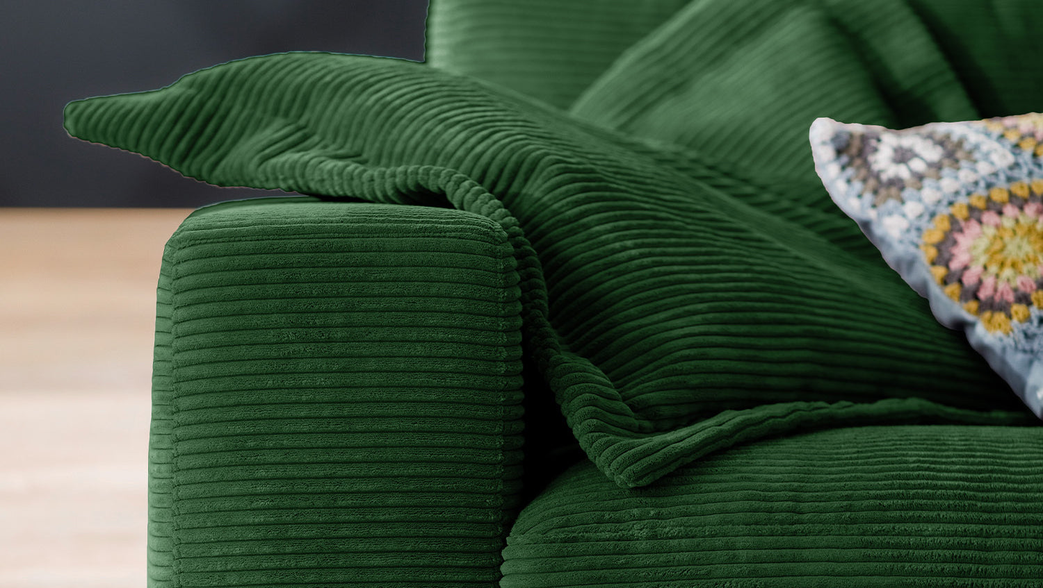 KAWOLA Sofa MADELINE 3-Sitzer Cord smaragd