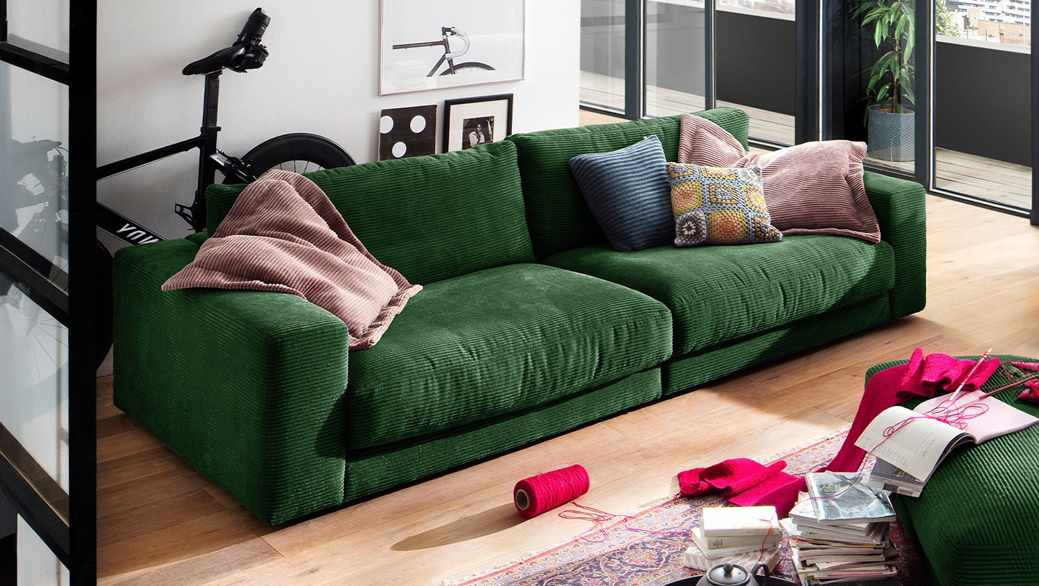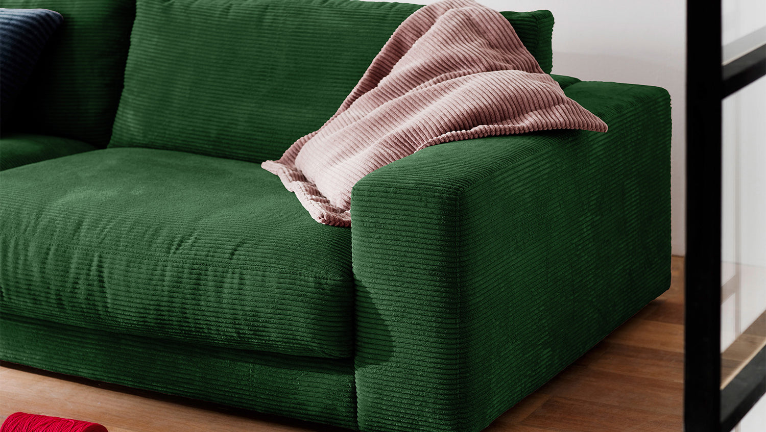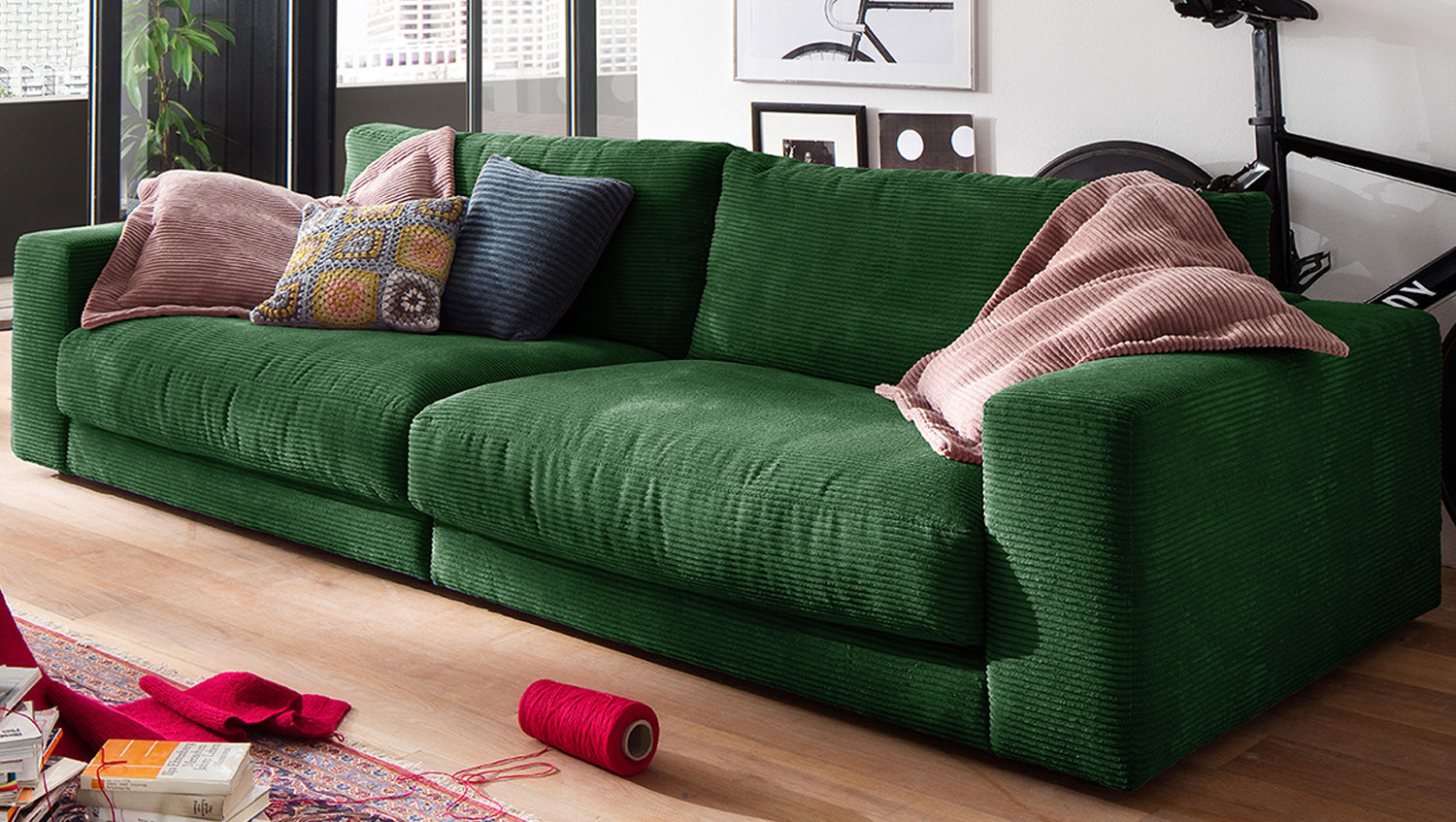 B-Ware KAWOLA Sofa MADELINE 3-Sitzer Cord smaragd