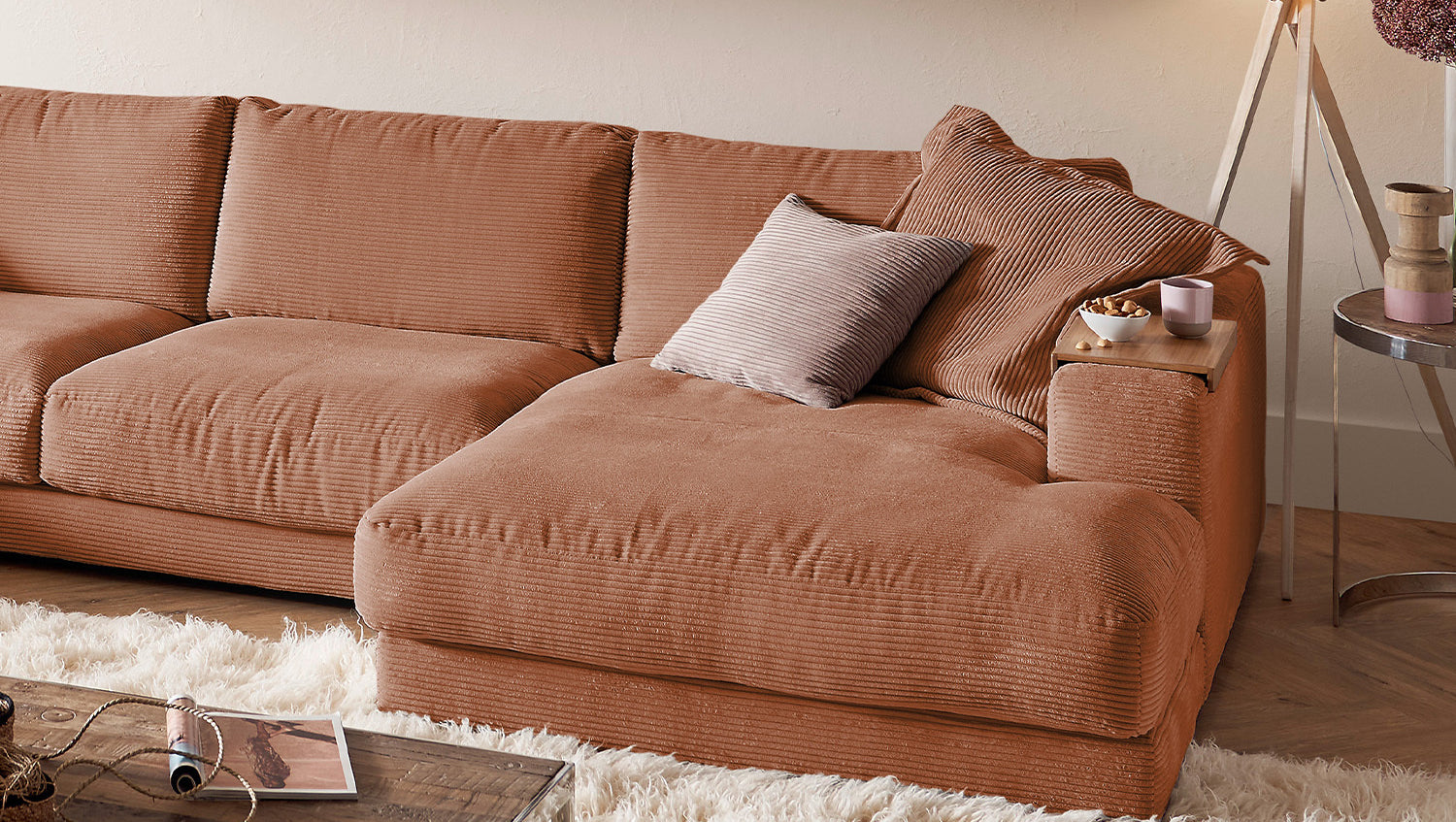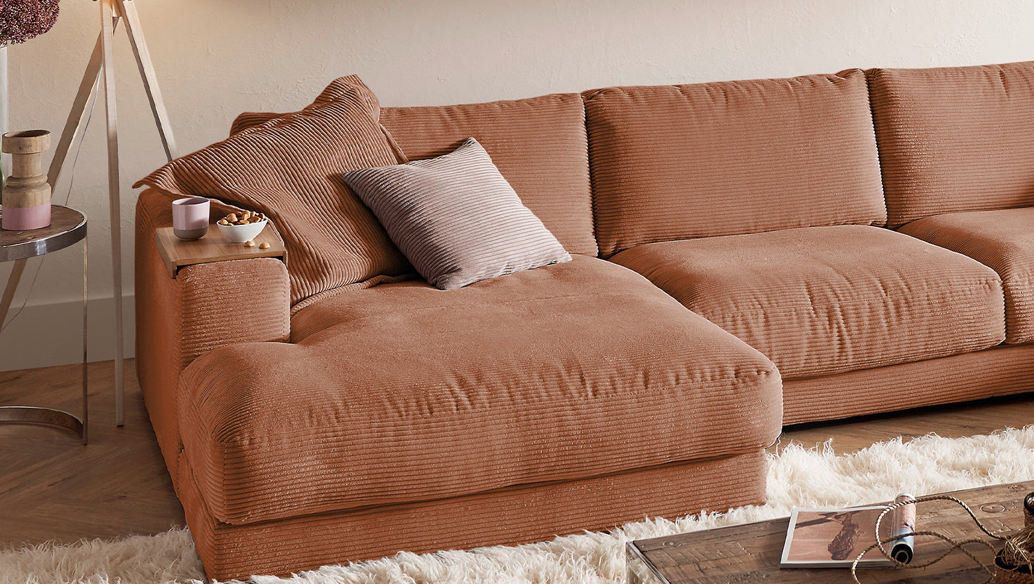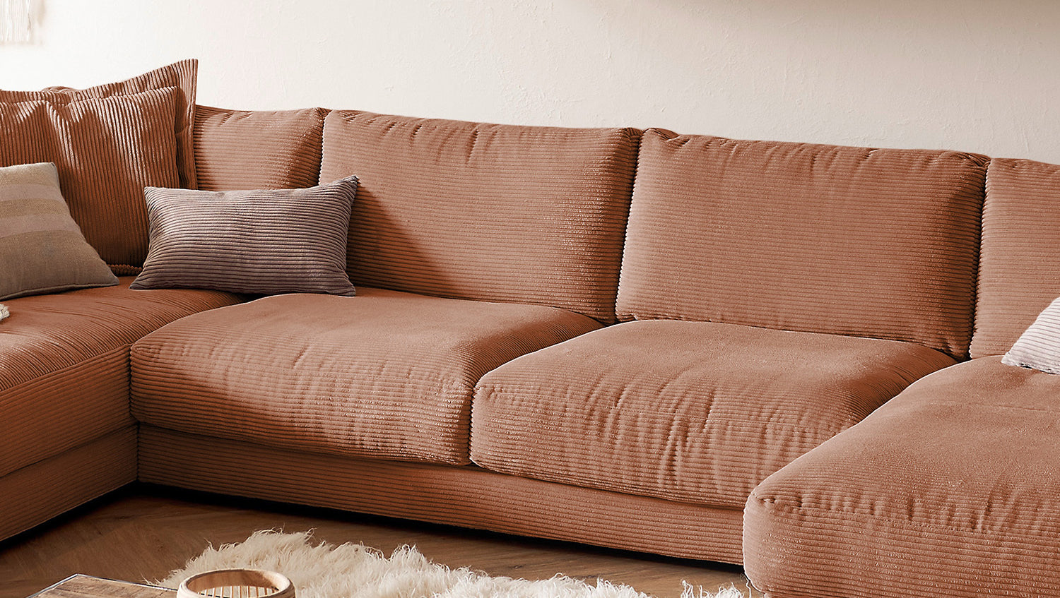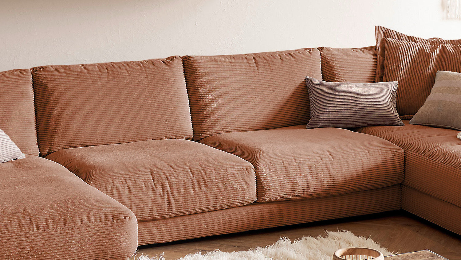 KAWOLA Sofa MADELINE Wohnlandschaft U-Form Cord rost
