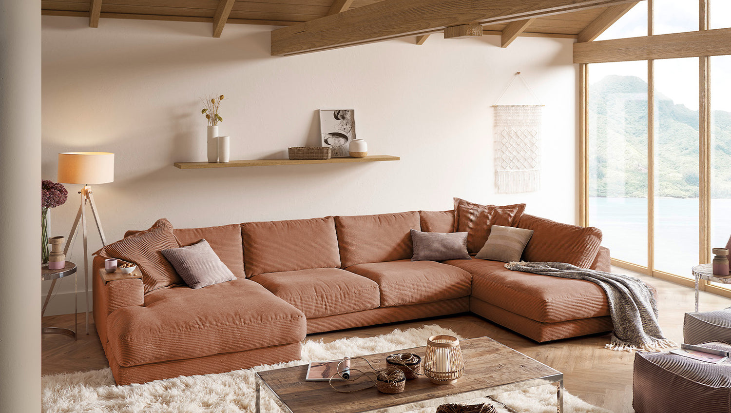 Die KAWOLA Wohnlandschaft MADELINE in U-Form besticht durch ihren hervorragenden Sitzkomfort, der durch die äußerst legere Polsterung zustande kommt und zum Verweilen und Entspannen einlädt. Seine moderne und urbane Form verleihen dem Sofa sein unverwechselbares Aussehen und bieten ausreichend Platz, um gemütliche Abende zu verbringen. Mit seinem zeitlosen Design fügt es sich nahtlos in jede Umgebung ein und macht auch frei im Raum stehend eine gute Figur. Wenn Sie Ihrem Wohnzimmer einen außergewöhnlichen Anstrich verleihen wollen, ist das Sofa MADELINE definitiv das Richtige für Sie!