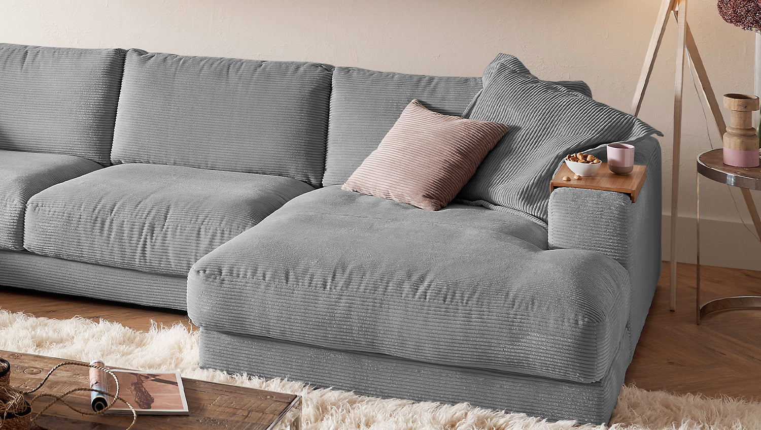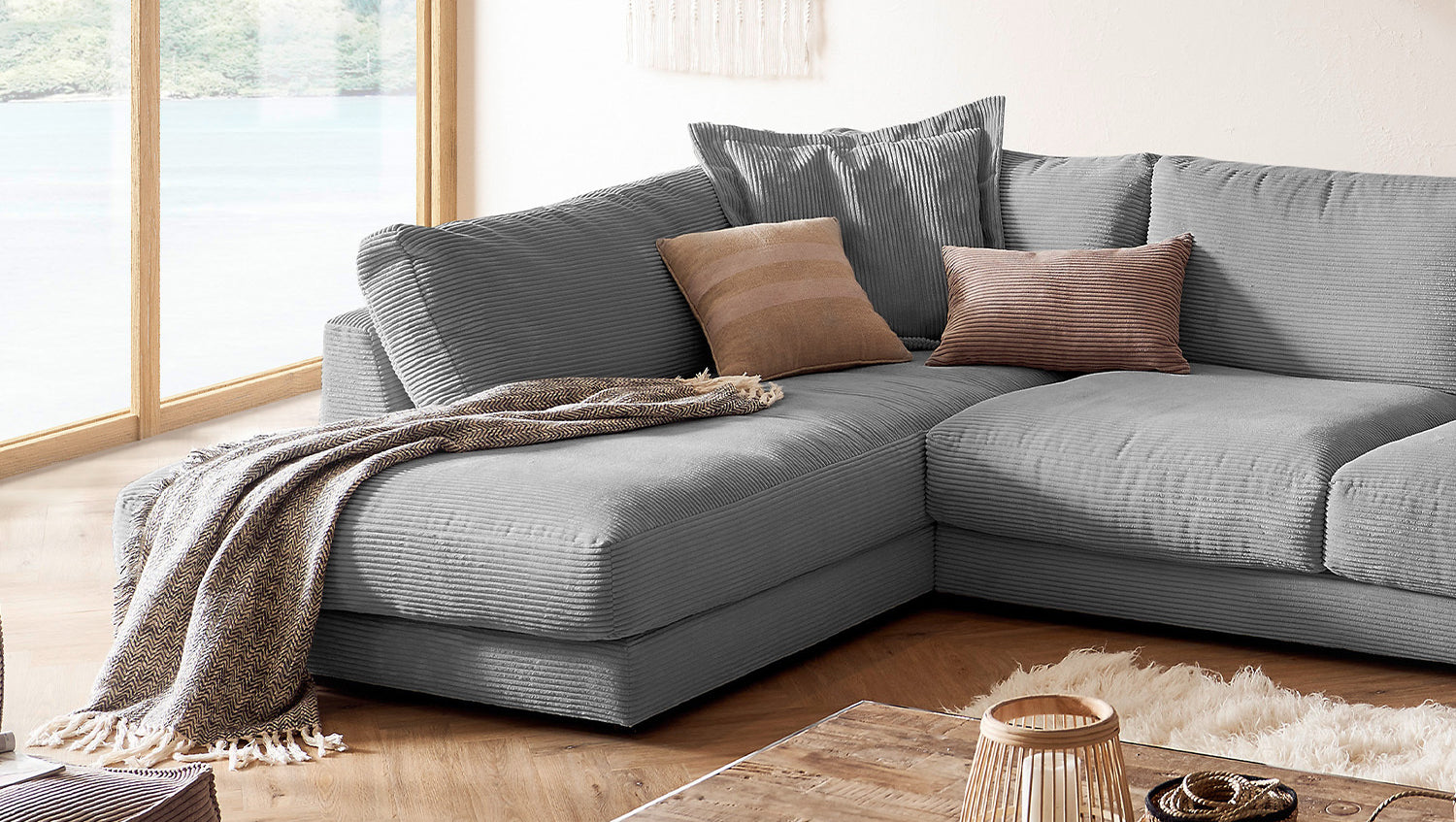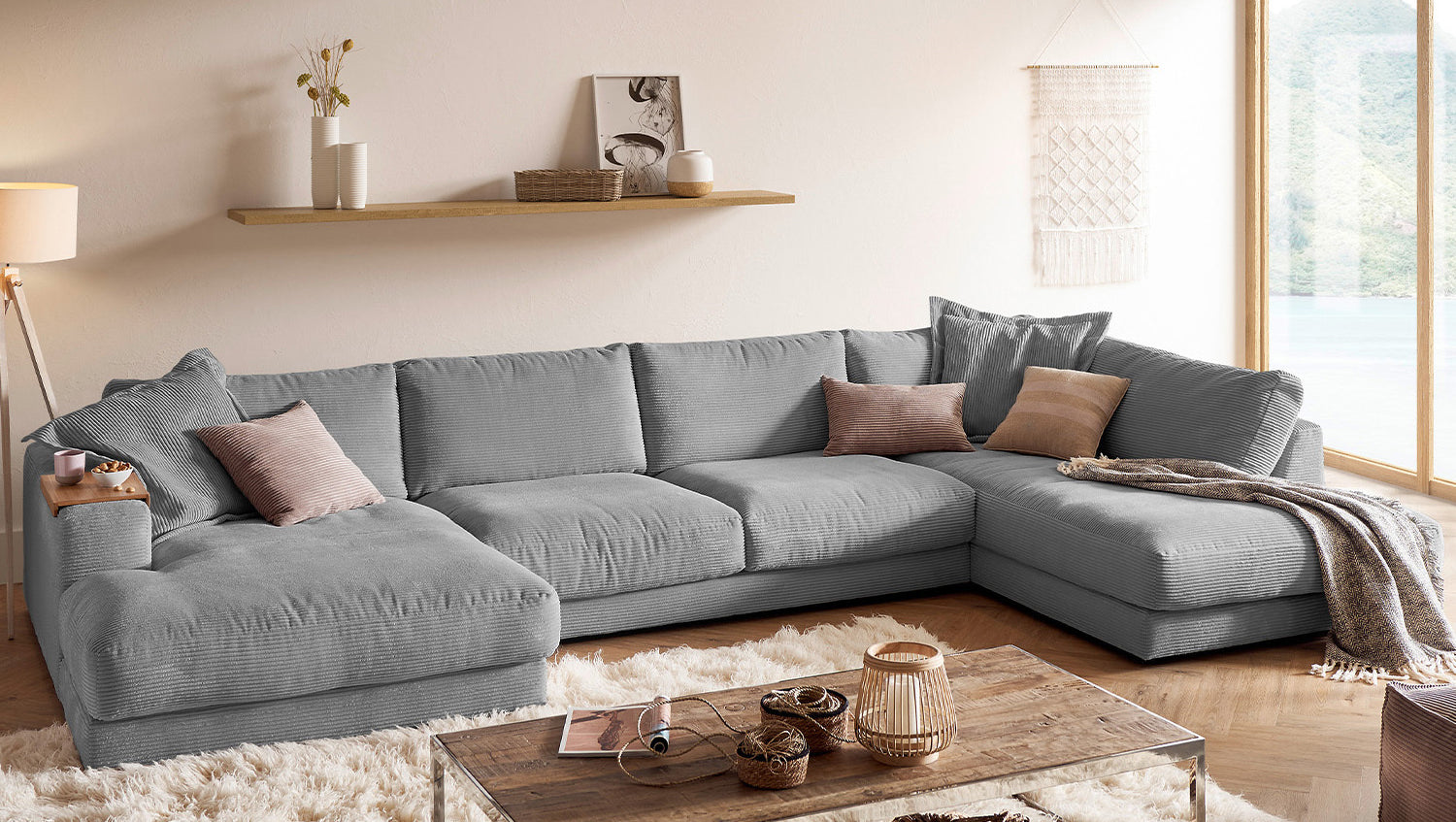 KAWOLA Sofa MADELINE Wohnlandschaft U-Form Cord grau