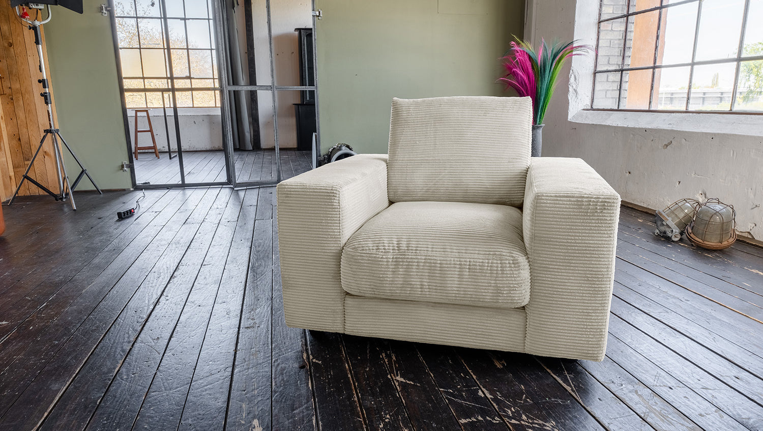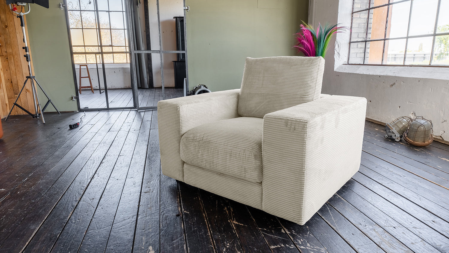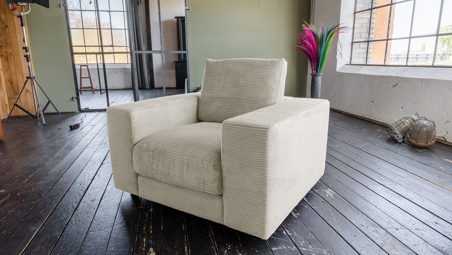 KAWOLA Sessel MADELINE Cord cremeweiß