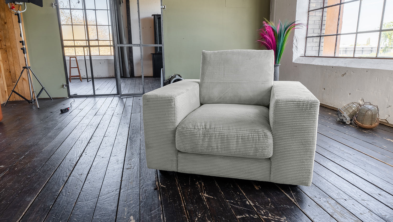 KAWOLA Sessel MADELINE Cord hellgrau