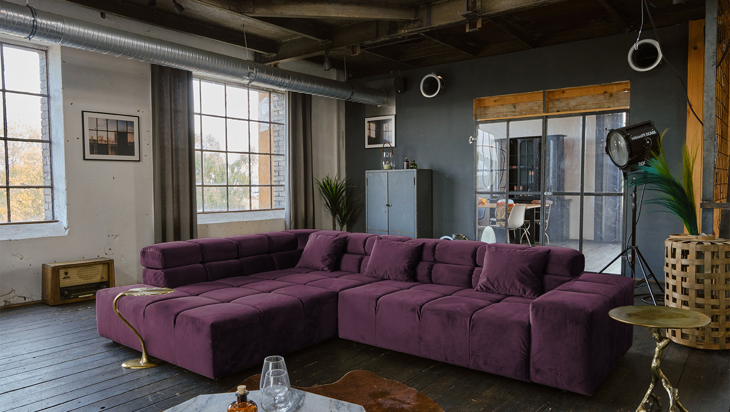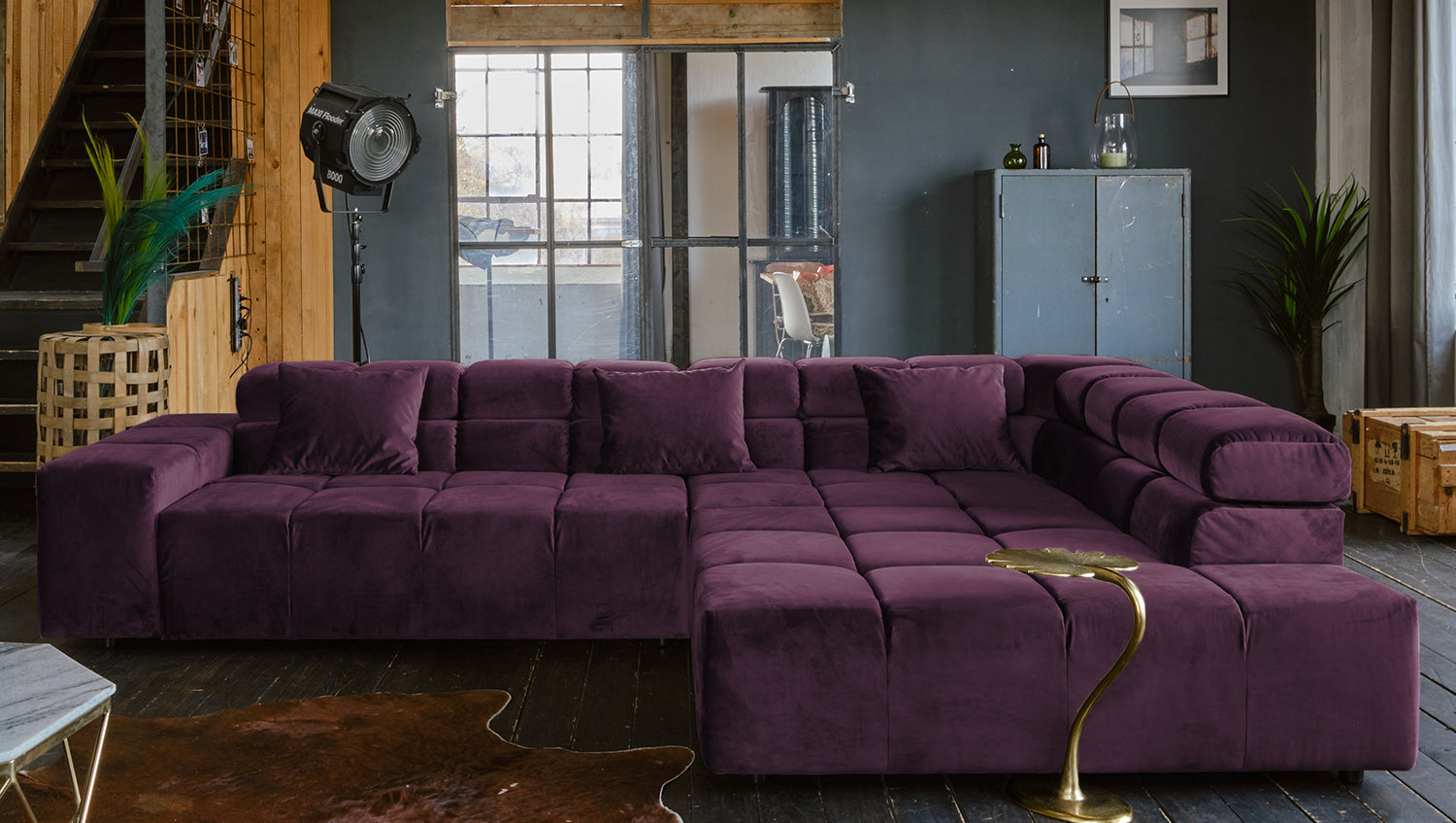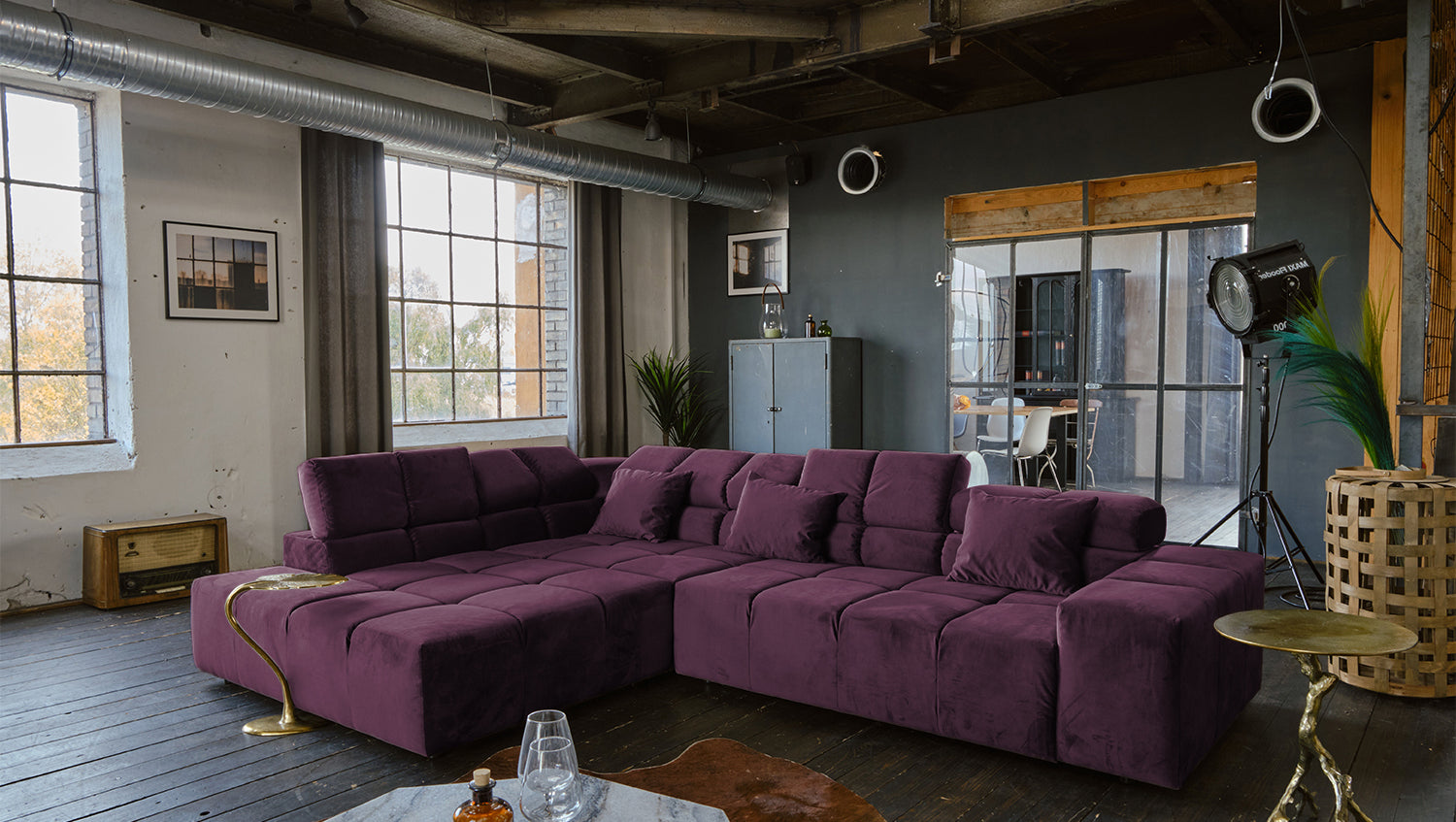KAWOLA Sofa NEVADA Ecksofa Velvet purple