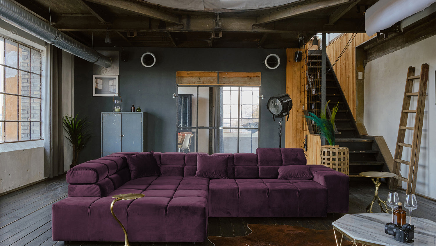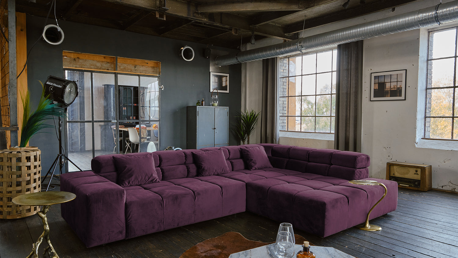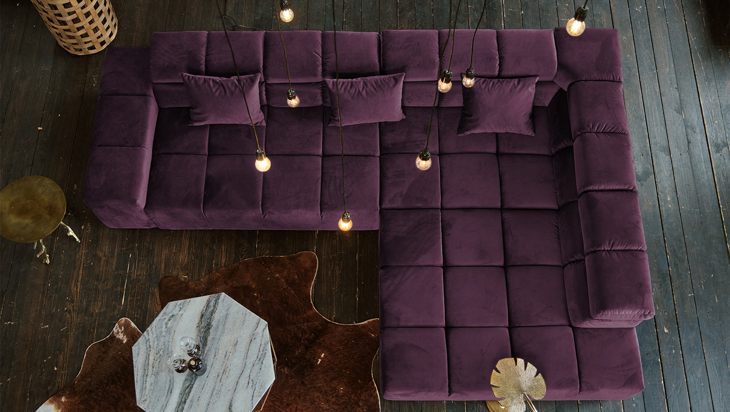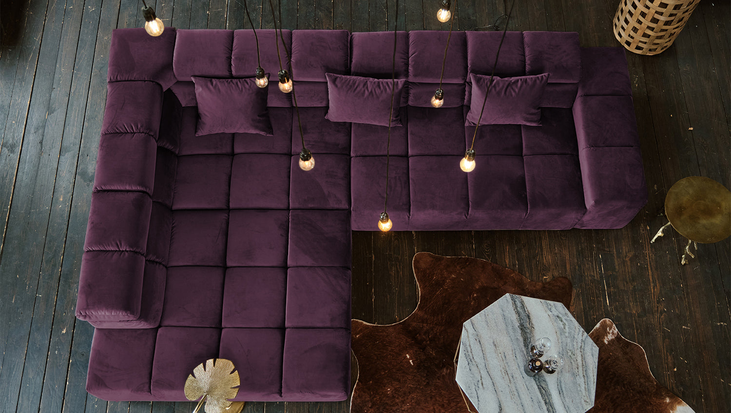 KAWOLA Sofa NEVADA Ecksofa Velvet purple