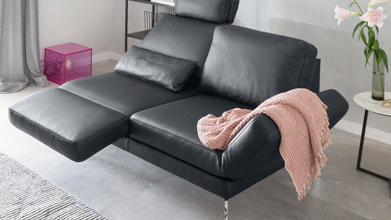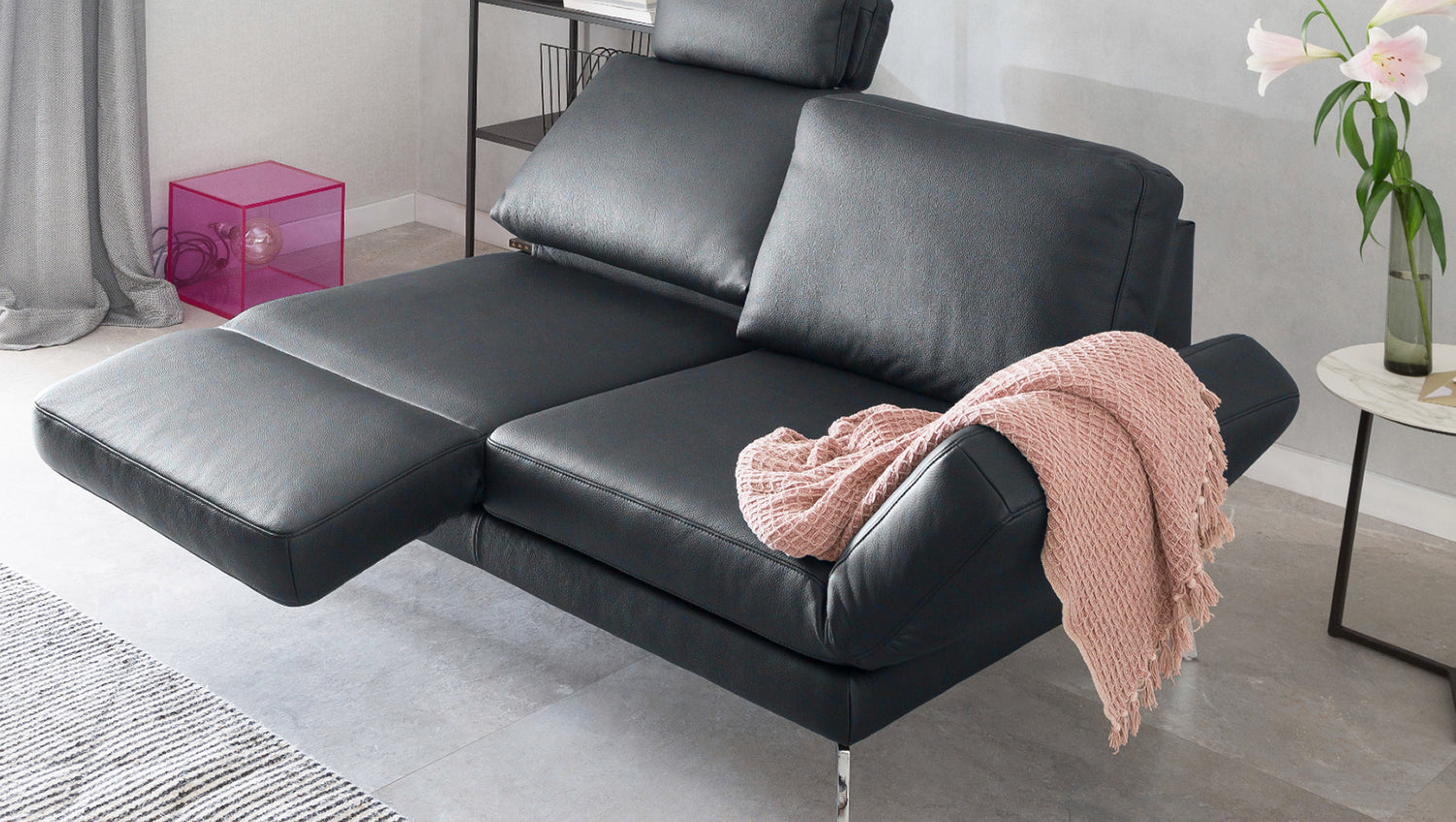Das KAWOLA 2-Sitzer Sofa HURRICANE ist ein echter Blickfang in Ihrem Wohnzimmer. Auf elegante Weise vereint es einen zeitlosen Look und moderne Funktionalität. Es genügt dabei höchsten Design- und Qualitätsansprüchen und bietet darüber hinaus eine Vielzahl toller Funktionen: Es ist sowohl mit drehbaren Sitzelementen als auch mit klappbaren Armlehnen ausgestattet. Eine verstellbare Kopfstütze und nach hinten neigbare Rückenlehnen ermöglichen es Ihnen außerdem, die einzelnen Sitzelemente im Handumdrehen in bequeme Fernsehsessel zu verwandeln. Die tragenden Teile des Sofas HURRICANE sind mit Massivholz verarbeitet, was ihm eine enorme Stabilität verleiht. Die dauerelastischen Stahl-Wellenfedern und der Schaumkern mit Vliesabdeckung sorgen für einen hohen Sitzkomfort. Mit seinem optisch ansprechenden Bezug aus hochwertigem Leder macht dieser 2-Sitzer überall eine gute Figur!