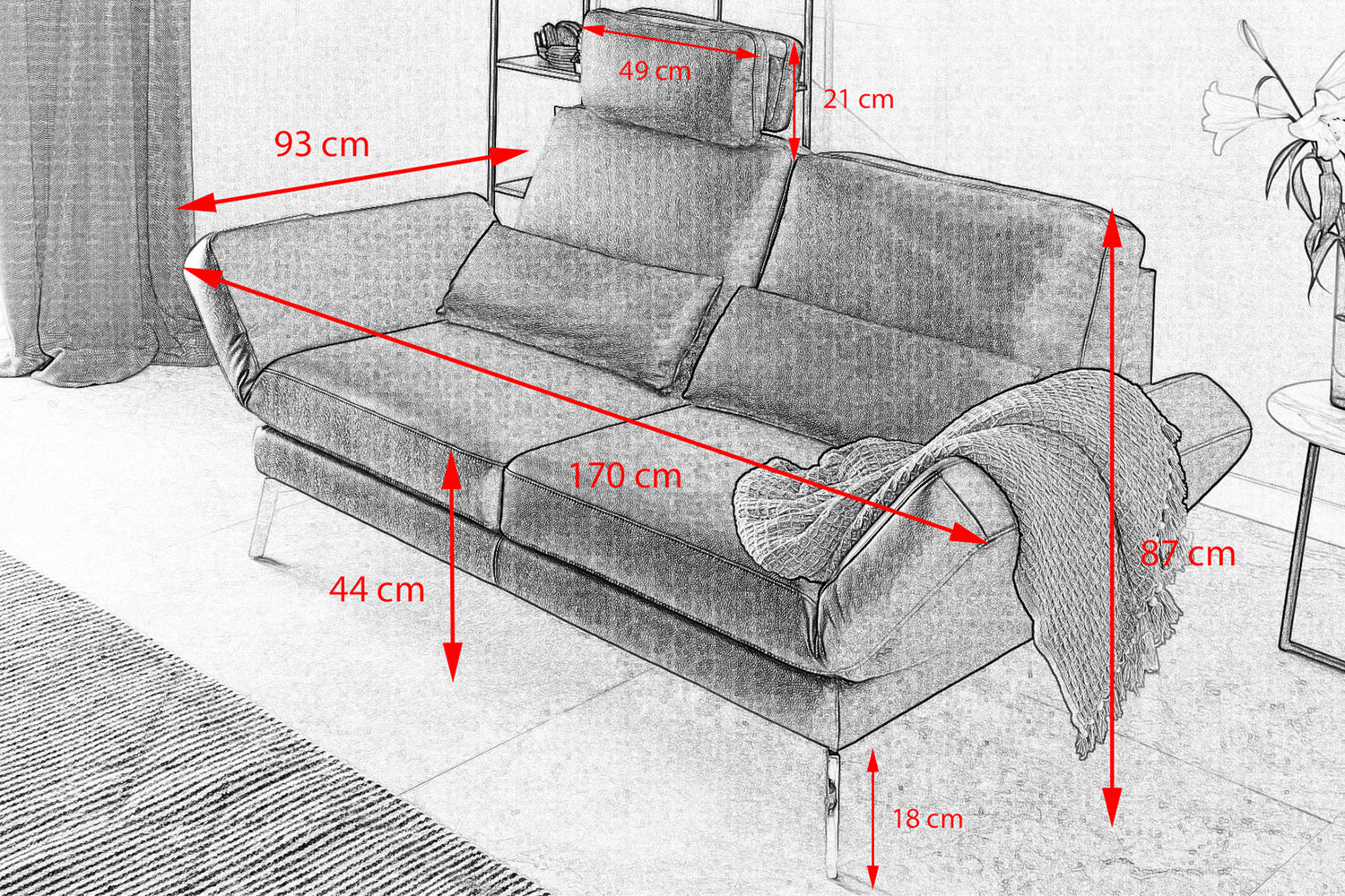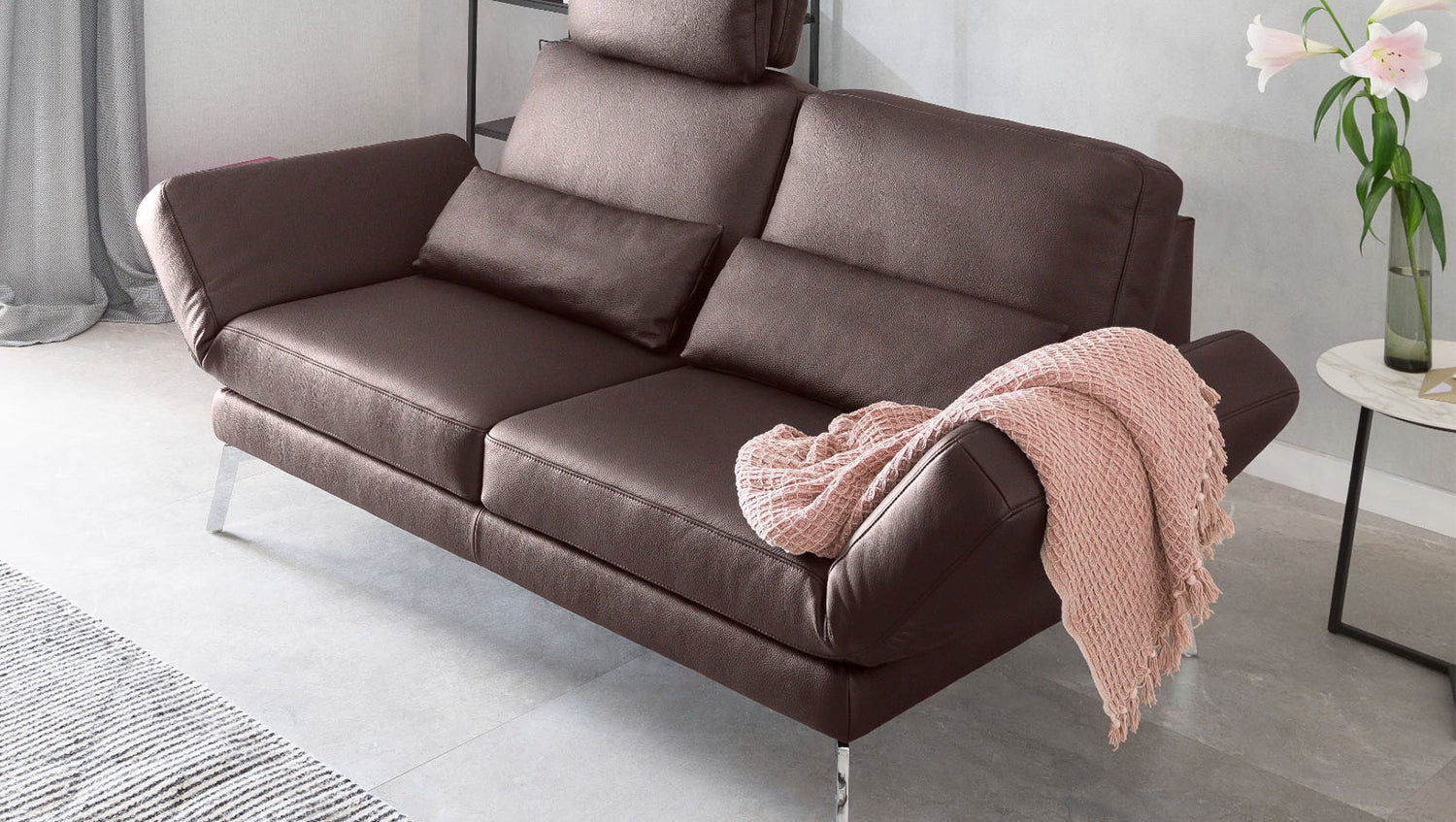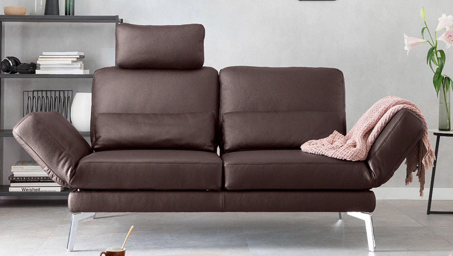 Das KAWOLA 2-Sitzer Sofa HURRICANE ist ein echter Blickfang in Ihrem Wohnzimmer. Auf elegante Weise vereint es einen zeitlosen Look und moderne Funktionalität. Es genügt dabei höchsten Design- und Qualitätsansprüchen und bietet darüber hinaus eine Vielzahl toller Funktionen: Es ist sowohl mit drehbaren Sitzelementen als auch mit klappbaren Armlehnen ausgestattet. Eine verstellbare Kopfstütze und nach hinten neigbare Rückenlehnen ermöglichen es Ihnen außerdem, die einzelnen Sitzelemente im Handumdrehen in bequeme Fernsehsessel zu verwandeln. Die tragenden Teile des Sofas HURRICANE sind mit Massivholz verarbeitet, was ihm eine enorme Stabilität verleiht. Die dauerelastischen Stahl-Wellenfedern und der Schaumkern mit Vliesabdeckung sorgen für einen hohen Sitzkomfort. Mit seinem optisch ansprechenden Bezug aus hochwertigem Leder macht dieser 2-Sitzer überall eine gute Figur!