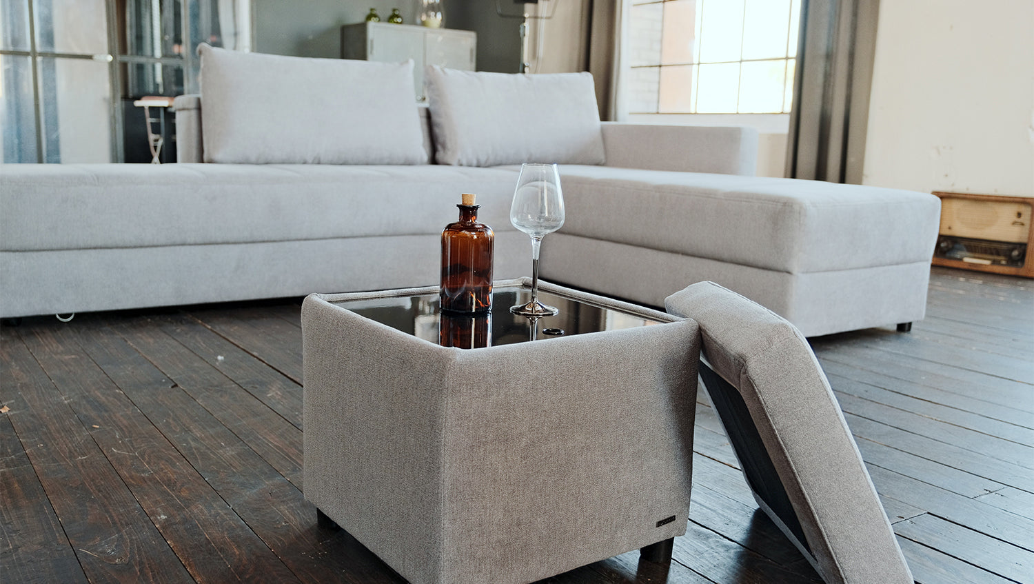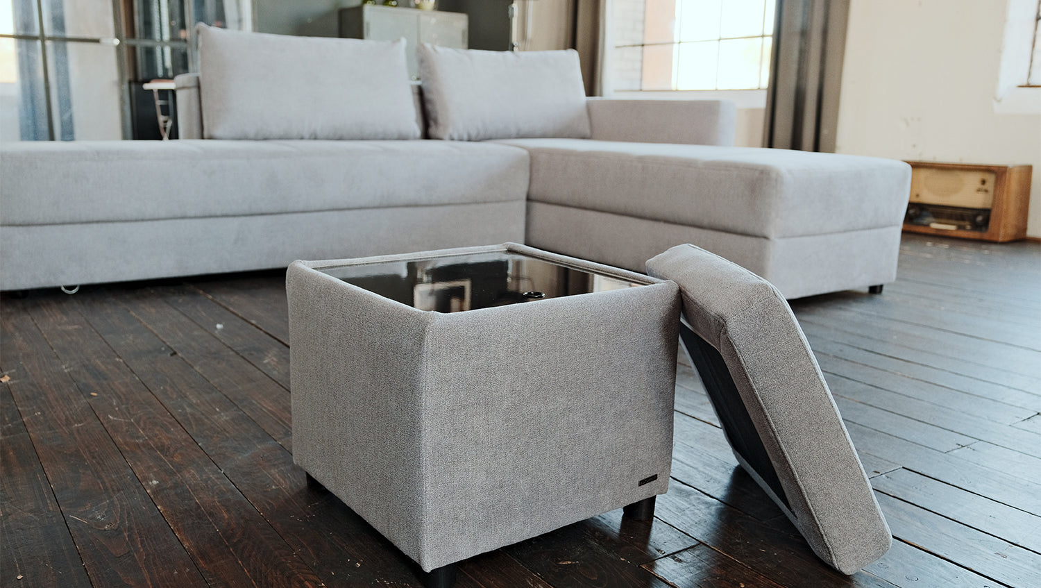 Der KAWOLA Hocker mit Stauraum IDA ist nicht nur optisch ein Hingucker, denn er bietet verschiedene Nutzungsoptionen. Mit wenigen Handgriffen ist der Hocker zum Tisch verwandelbar. Zudem verfügt er über einen geschickt versteckten Stauraum, an den man durch das Abnehmen der Sitzfläche gelangen kann. Der Hocker ist die perfekte Ergänzung zum gleichnamigen Schlafsofa IDA.