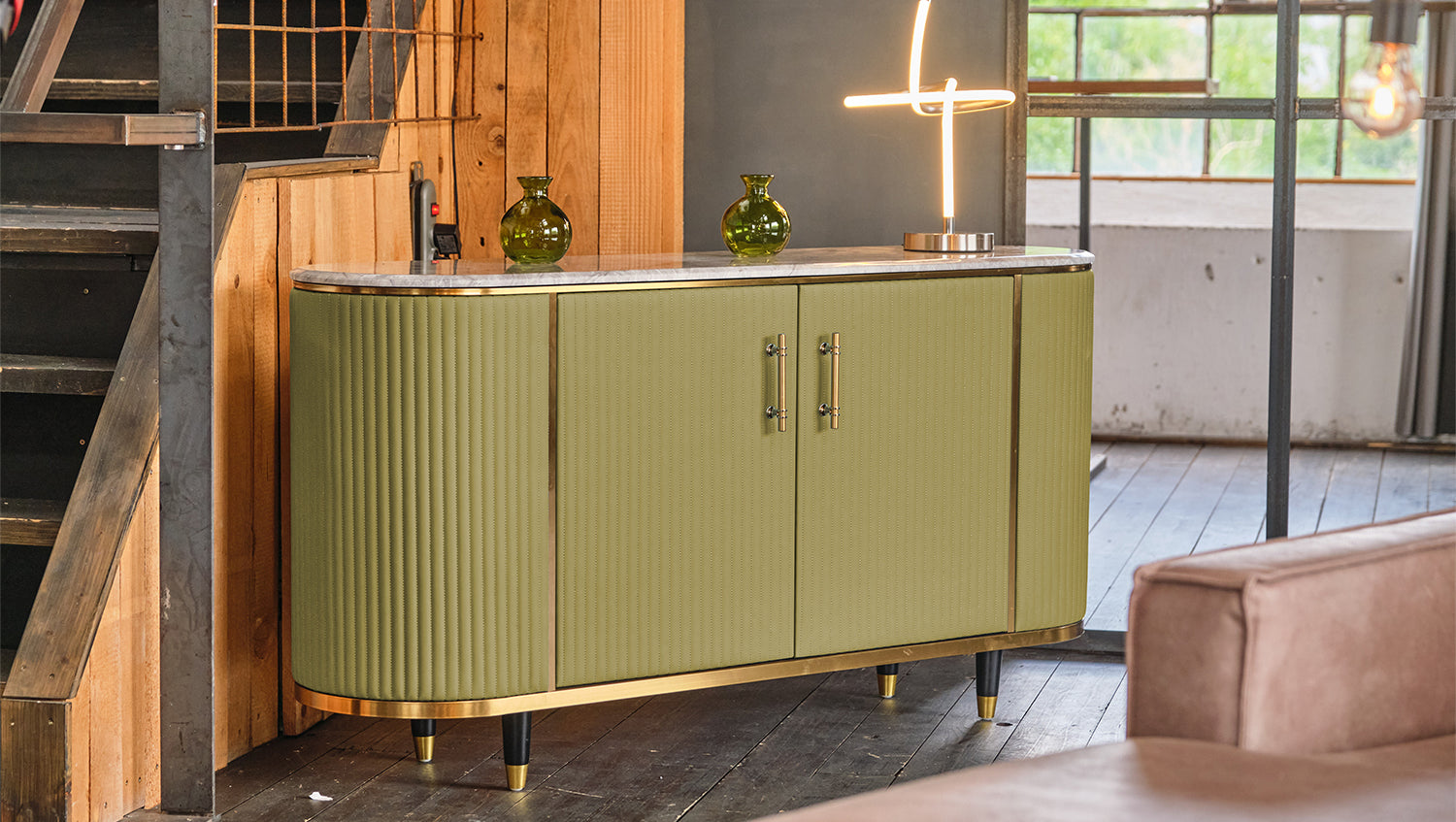 Das KAWOLA Sideboard MARIA ist ein Eyecatcher in jedem Zuhause. Sein nostalgisches Retro-Design im 50er-Jahre-Stil zeichnet sich besonders durch den Materialmix aus. Die Platte aus hellgrauem Marmor und die aufwendig verarbeitete Front aus Kunstleder bilden einen gelungenen Kontrast. Die goldfarbenen Füße sowie Details aus Edelstahl runden das Gesamtbild ab. Weitere Artikel der Serie MARIA ergänzen die heimischen vier Wände um ein geschmackvolles Möbelstück.
