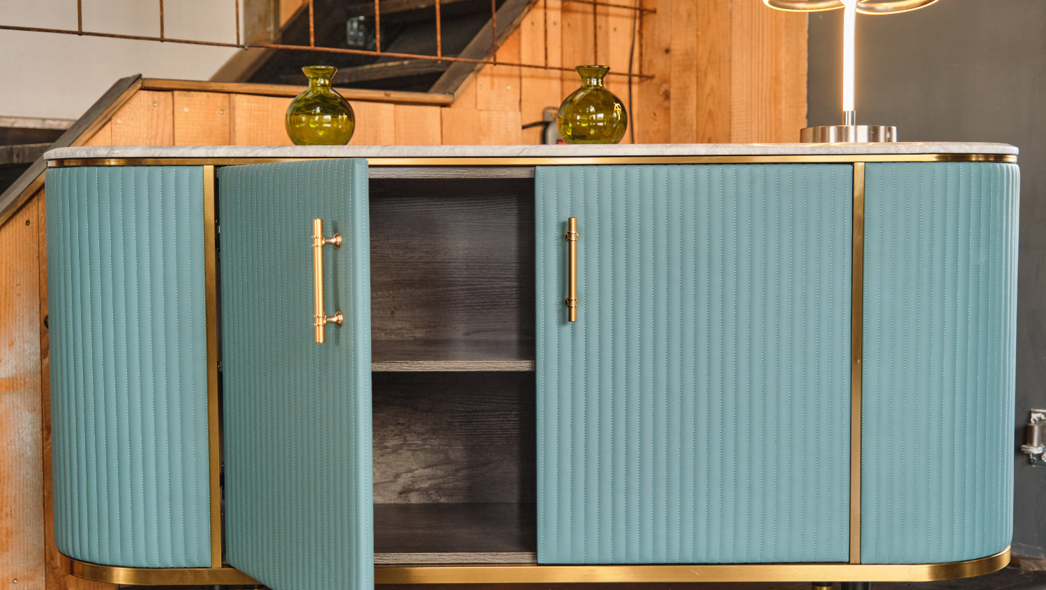 Das KAWOLA Sideboard MARIA ist ein Eyecatcher in jedem Zuhause. Sein nostalgisches Retro-Design im 50er-Jahre-Stil zeichnet sich besonders durch den Materialmix aus. Die Platte aus hellgrauem Marmor und die aufwendig verarbeitete Front aus Kunstleder bilden einen gelungenen Kontrast. Die goldfarbenen Füße sowie Details aus Edelstahl runden das Gesamtbild ab. Weitere Artikel der Serie MARIA ergänzen die heimischen vier Wände um ein geschmackvolles Möbelstück.
