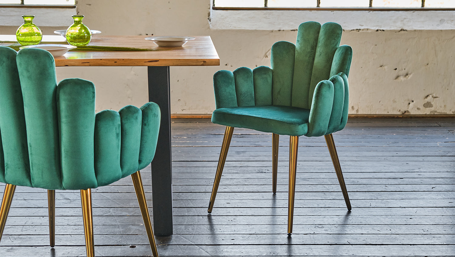 KAWOLA Stuhl FREJA Esszimmerstuhl Velvet grün Fuß gold