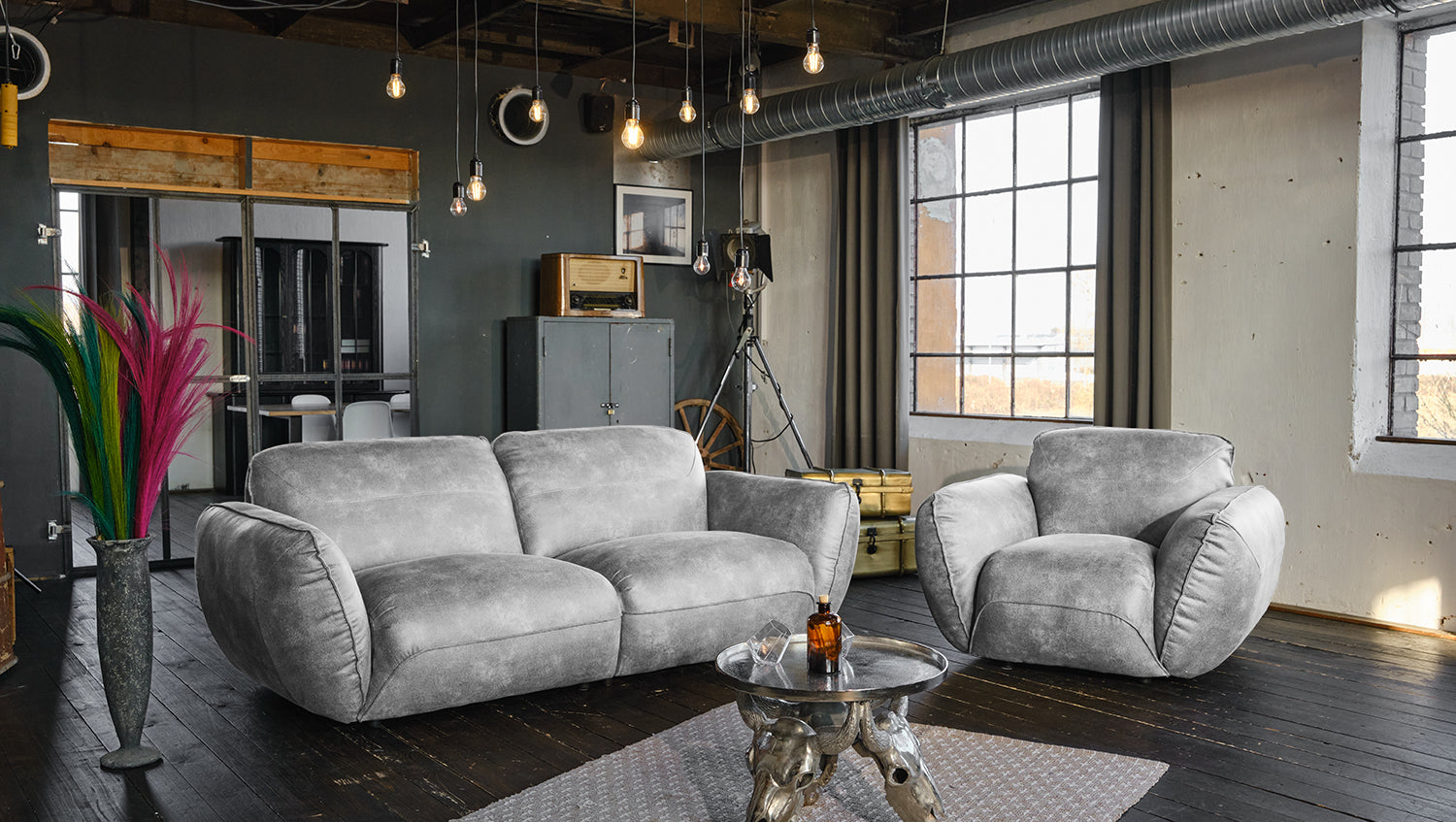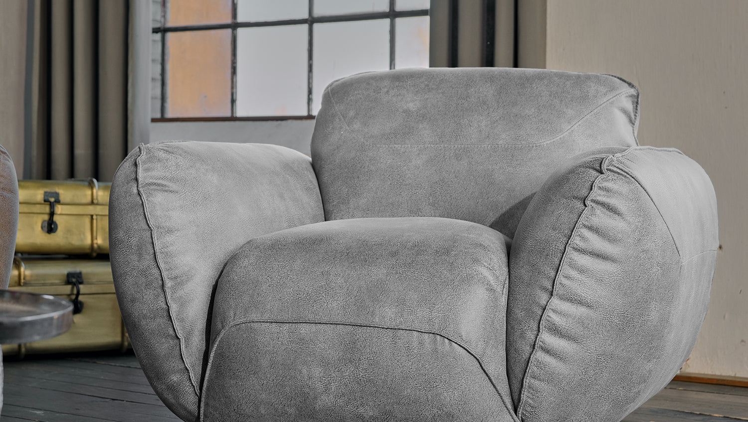 KAWOLA Sessel DAVITO Lederimitat im Vintagelook grau