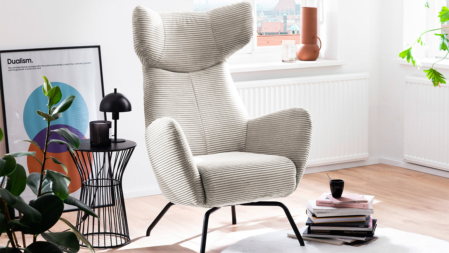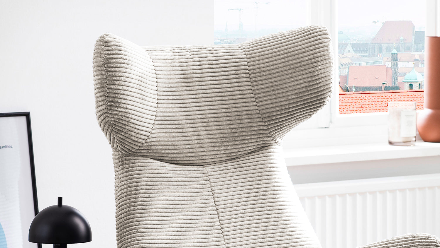 KAWOLA Sessel LOTTE Ohrensessel Cord cremeweiß