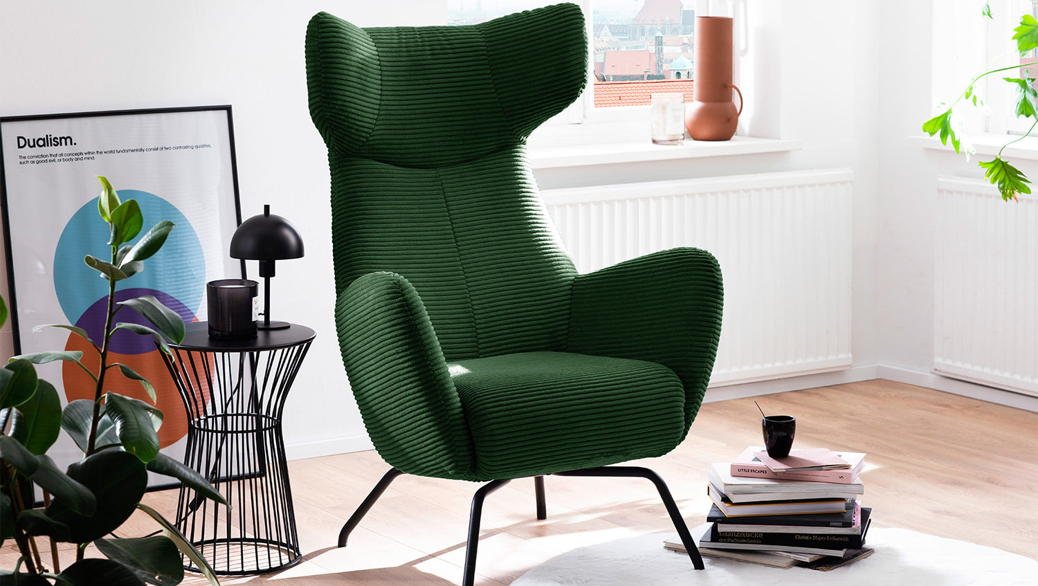 KAWOLA Sessel LOTTE Ohrensessel Cord smaragd
