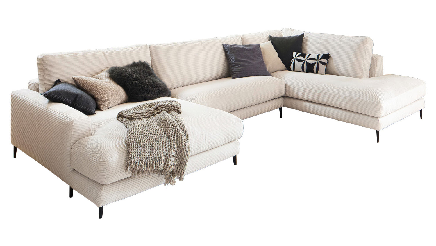 KAWOLA Sofa CARA Wohnlandschaft U-Form Cord cremeweiß