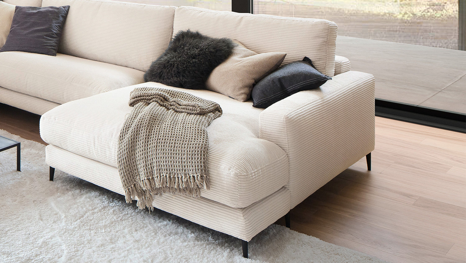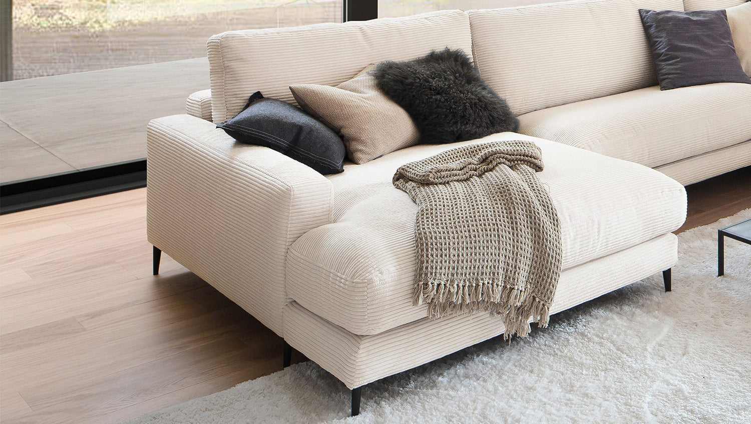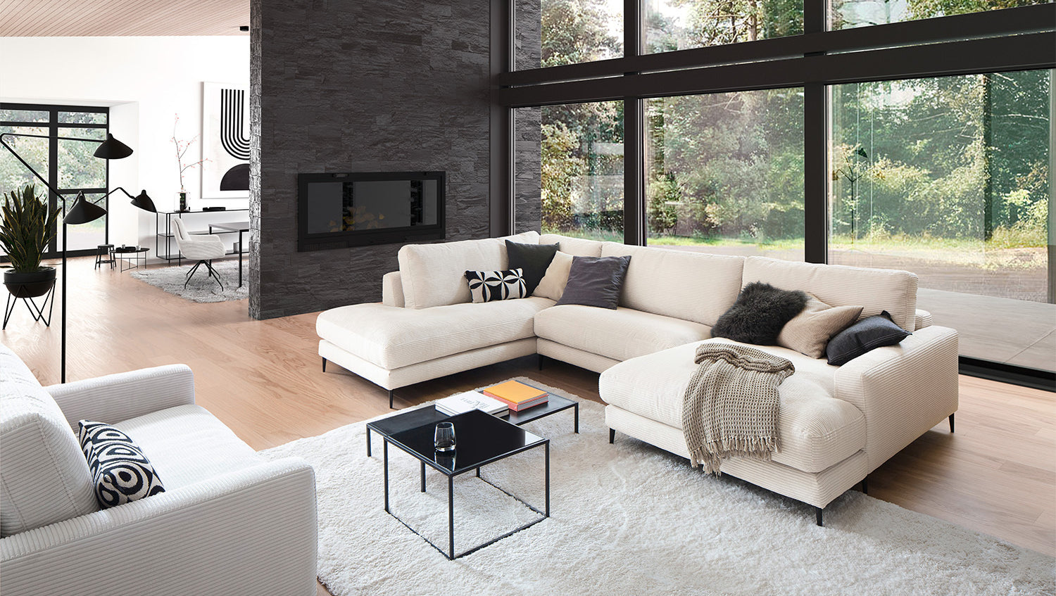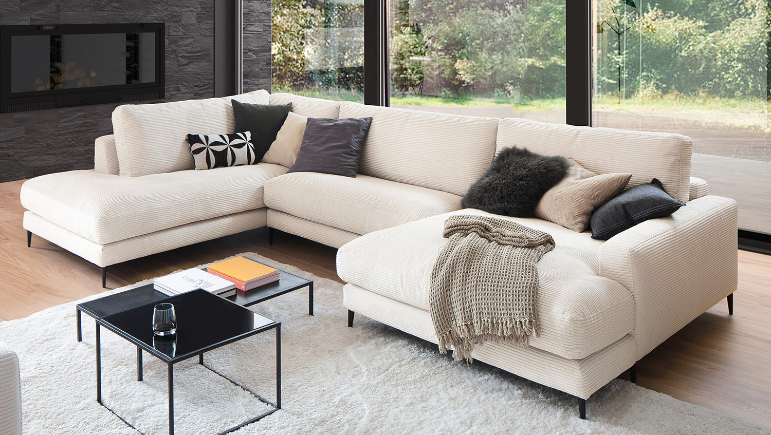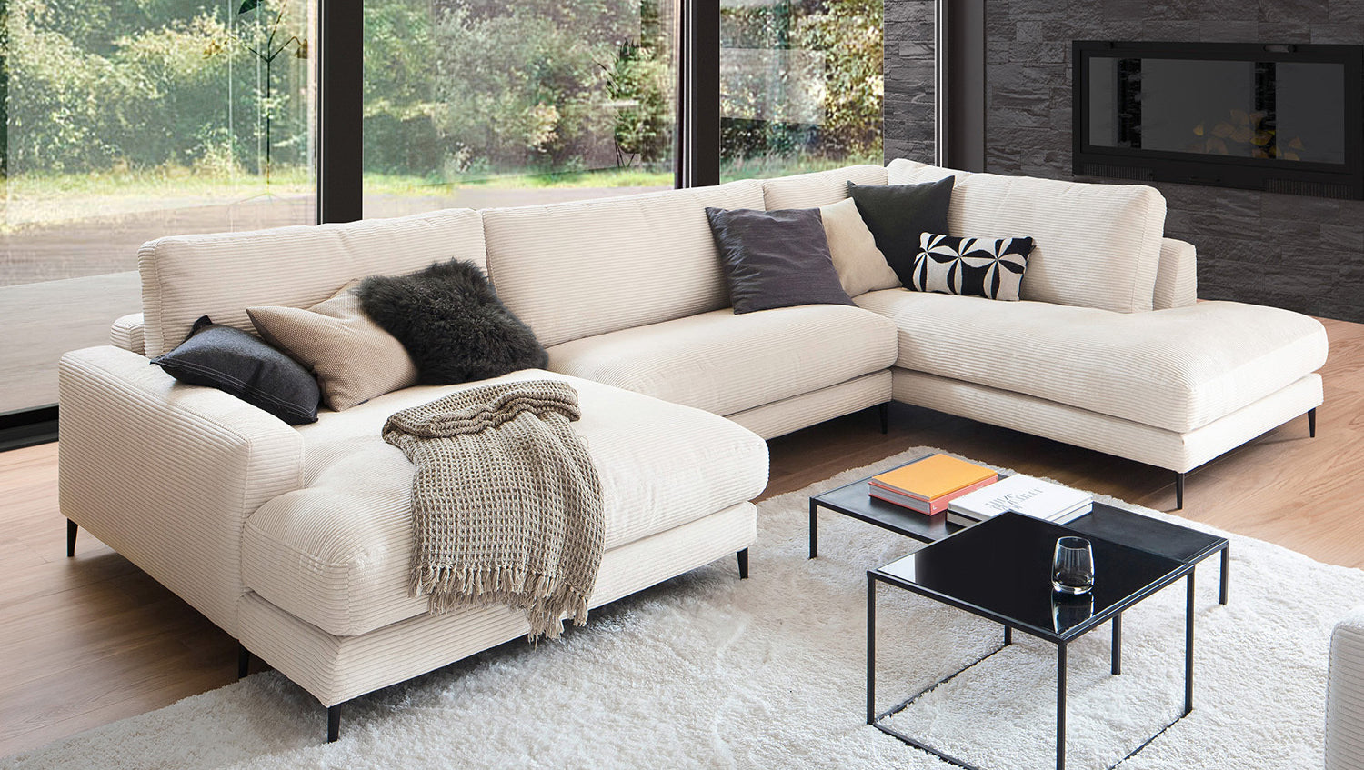 Die KAWOLA Wohnlandschaft CARA in U-Form verbindet klassisches Design mit moderner Sachlichkeit und fügt sich nahtlos in jedes Interieur ein. Seine weichen Formen und der Bezug aus angesagtem Cord-Stoff verleihen dem Sofa eine zeitlose Eleganz. Die komplexe, 3-stufige Polsterung garantiert höchsten Sitzkomfort und passt sich durch ihren legeren Aufbau der Körperform an. Darüber hinaus ist das Sofa mit hochwertigen Kammerkissen ausgestattet. Um ein Stauchen des Füllmaterials zu verhindern, sollten diese Rückenkissen nach Gebrauch aufgeschüttelt werden. Egal zu welcher Gelegenheit - auf dem Sofa CARA findet jeder ein Plätzchen zum Entspannen!