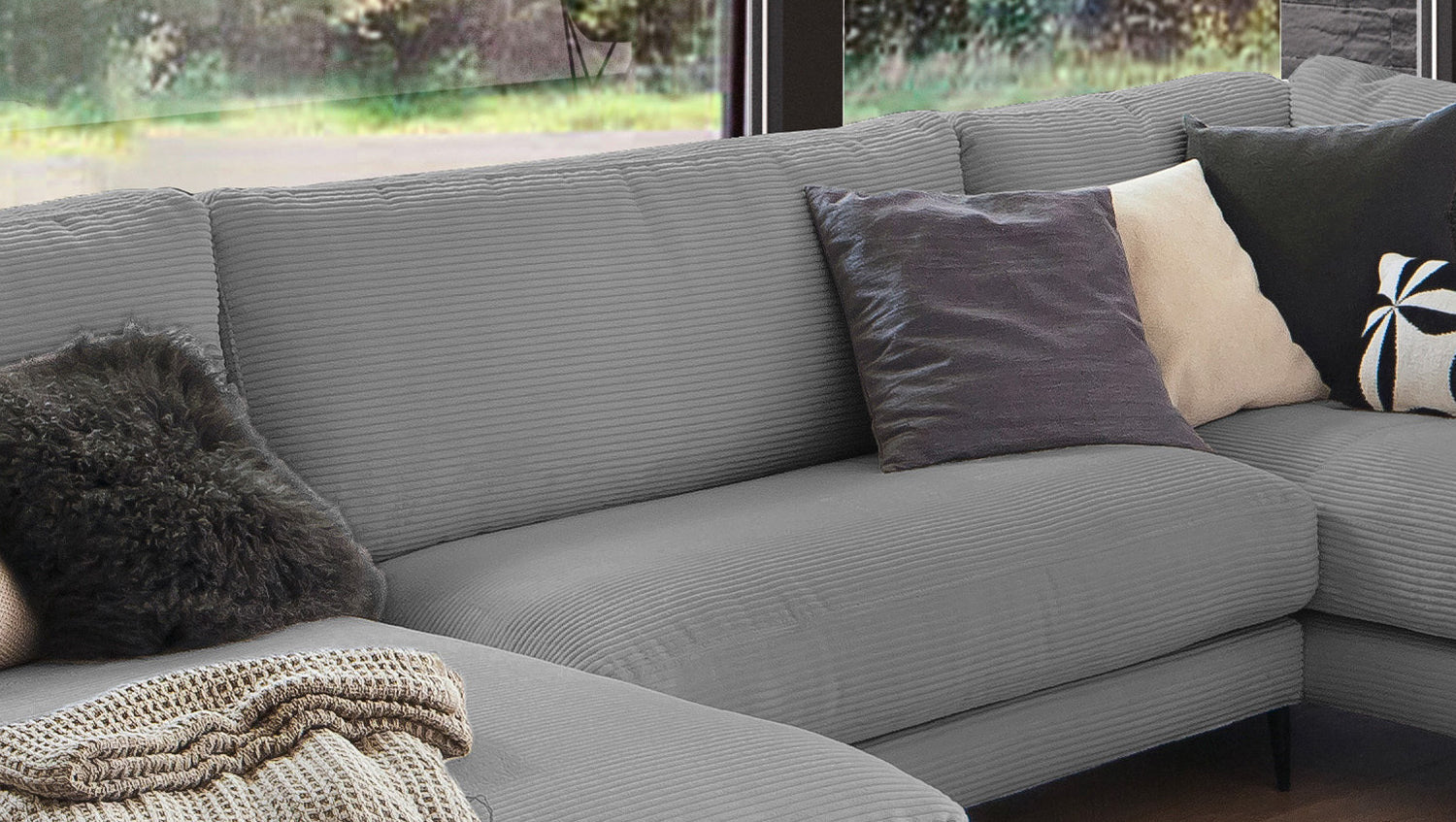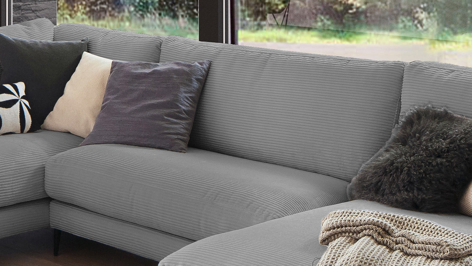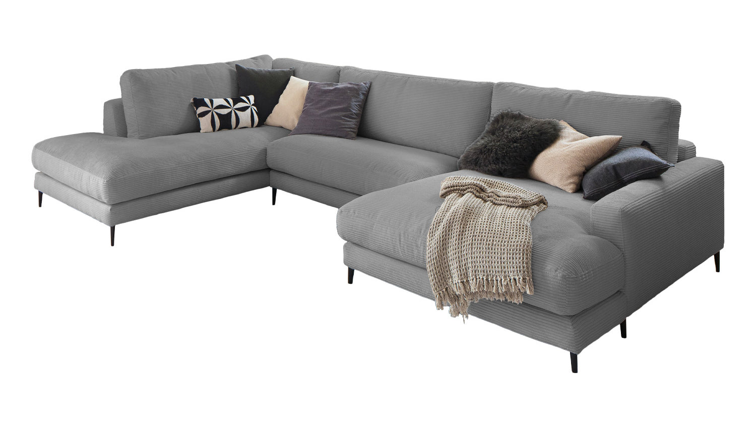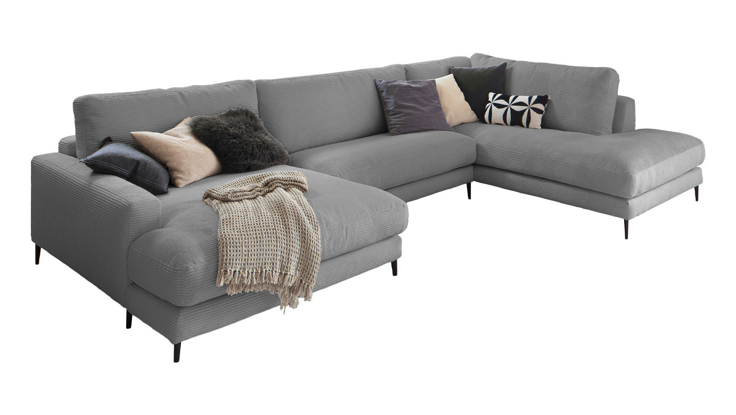 Die KAWOLA Wohnlandschaft CARA in U-Form verbindet klassisches Design mit moderner Sachlichkeit und fügt sich nahtlos in jedes Interieur ein. Seine weichen Formen und der Bezug aus angesagtem Cord-Stoff verleihen dem Sofa eine zeitlose Eleganz. Die komplexe, 3-stufige Polsterung garantiert höchsten Sitzkomfort und passt sich durch ihren legeren Aufbau der Körperform an. Darüber hinaus ist das Sofa mit hochwertigen Kammerkissen ausgestattet. Um ein Stauchen des Füllmaterials zu verhindern, sollten diese Rückenkissen nach Gebrauch aufgeschüttelt werden. Egal zu welcher Gelegenheit - auf dem Sofa CARA findet jeder ein Plätzchen zum Entspannen!