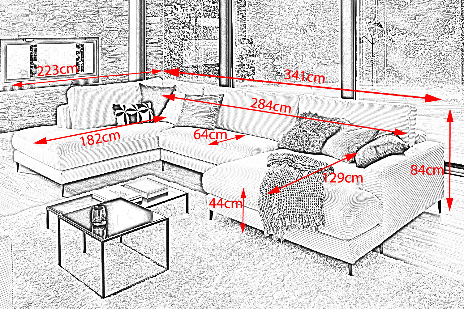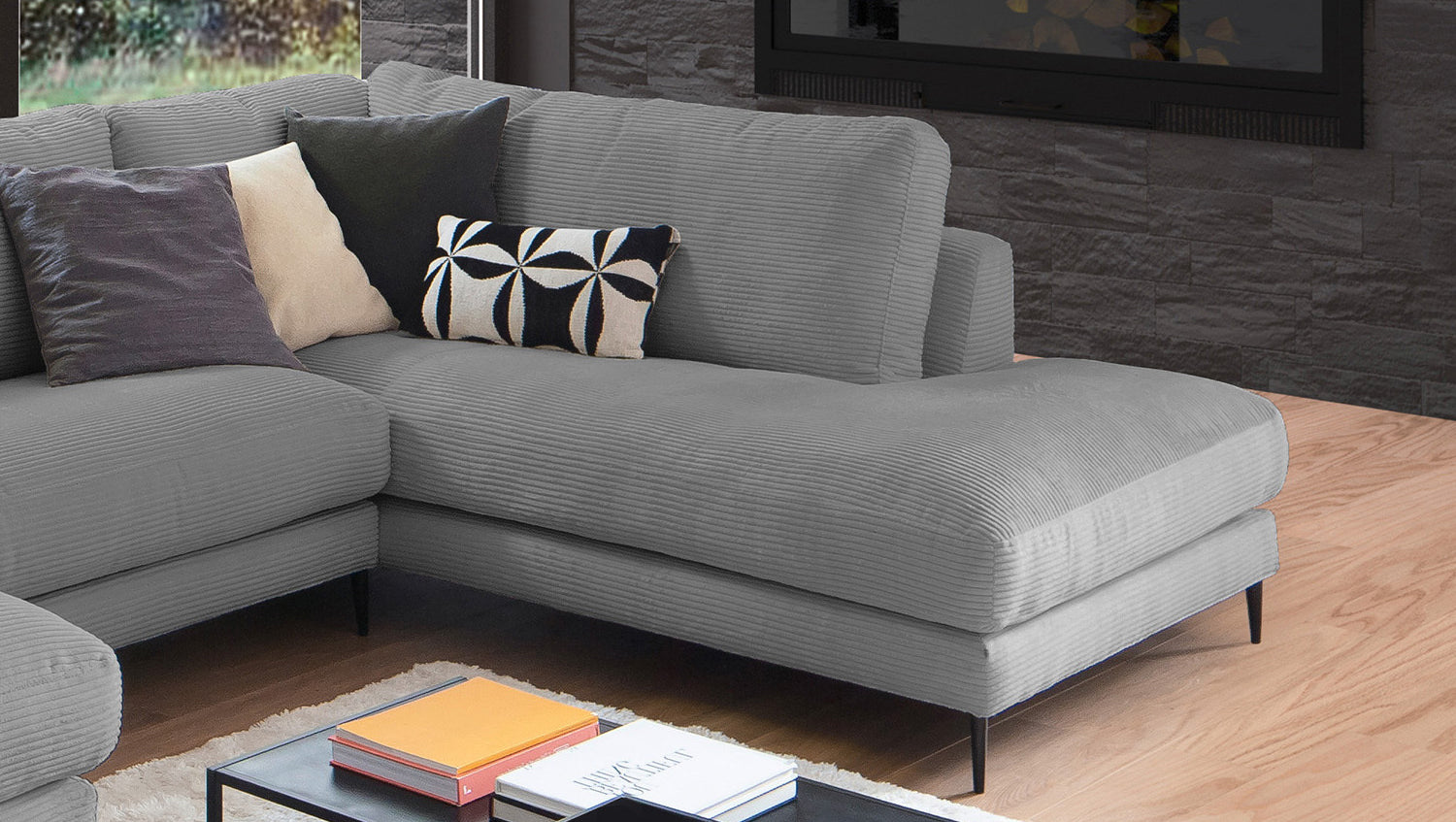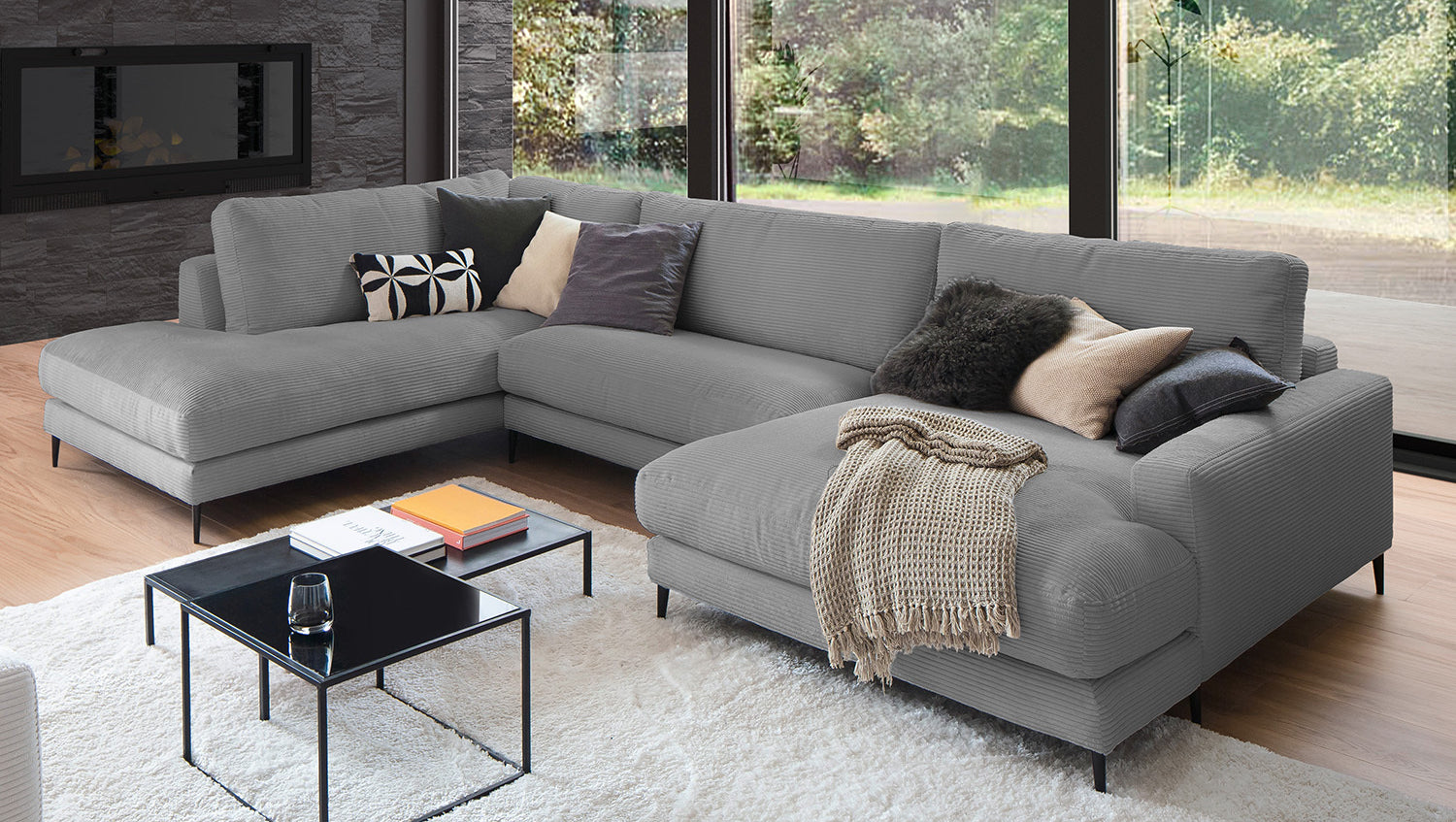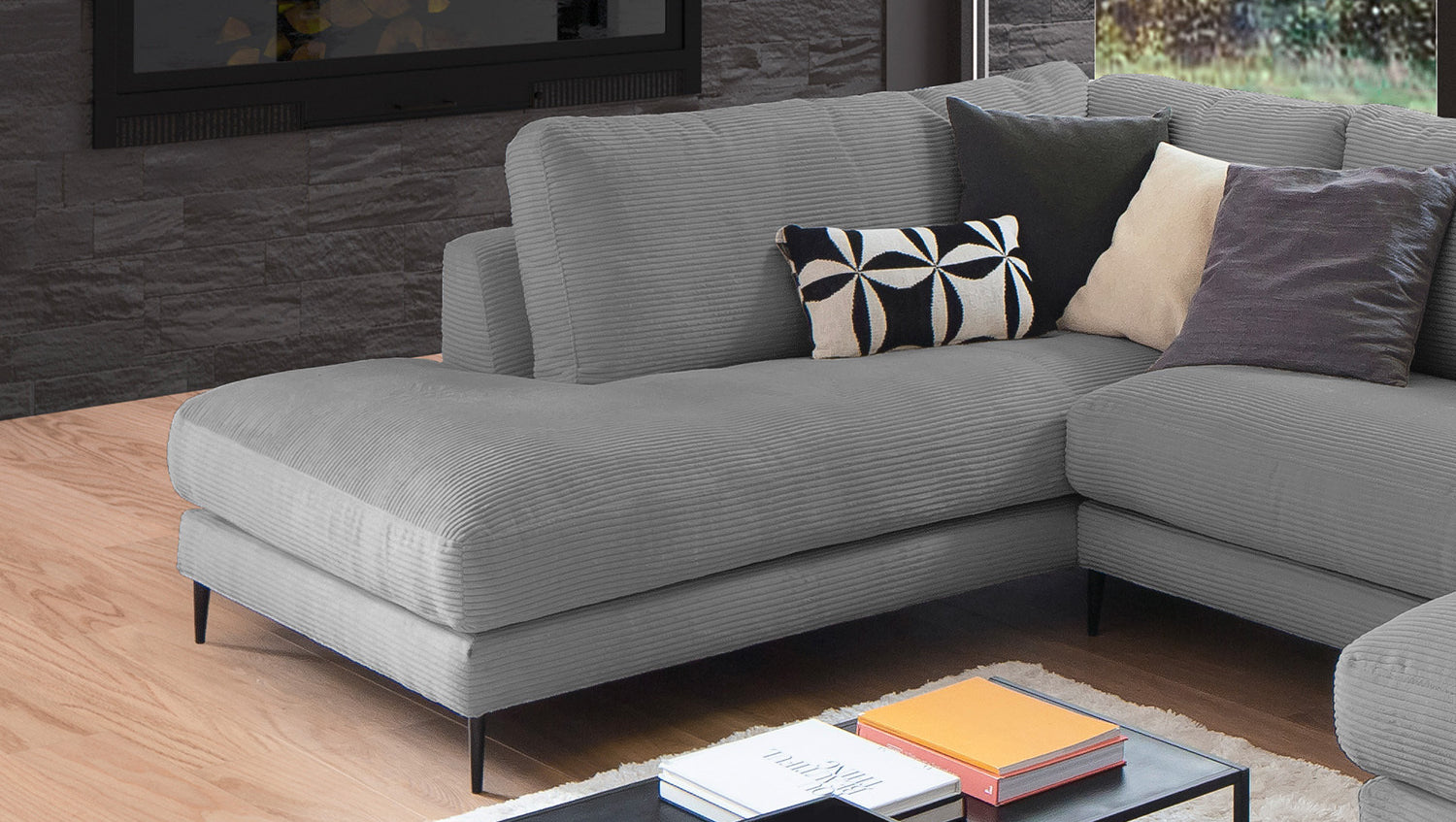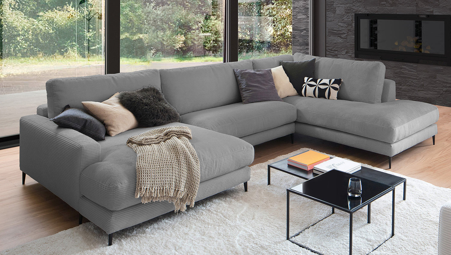 Die KAWOLA Wohnlandschaft CARA in U-Form verbindet klassisches Design mit moderner Sachlichkeit und fügt sich nahtlos in jedes Interieur ein. Seine weichen Formen und der Bezug aus angesagtem Cord-Stoff verleihen dem Sofa eine zeitlose Eleganz. Die komplexe, 3-stufige Polsterung garantiert höchsten Sitzkomfort und passt sich durch ihren legeren Aufbau der Körperform an. Darüber hinaus ist das Sofa mit hochwertigen Kammerkissen ausgestattet. Um ein Stauchen des Füllmaterials zu verhindern, sollten diese Rückenkissen nach Gebrauch aufgeschüttelt werden. Egal zu welcher Gelegenheit - auf dem Sofa CARA findet jeder ein Plätzchen zum Entspannen!