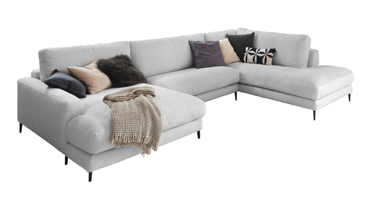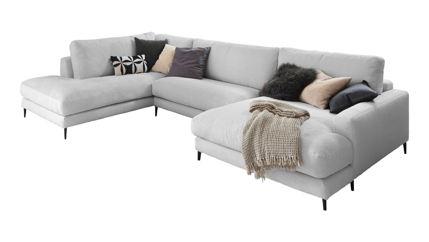 KAWOLA Sofa CARA Wohnlandschaft U-Form Cord hellgrau