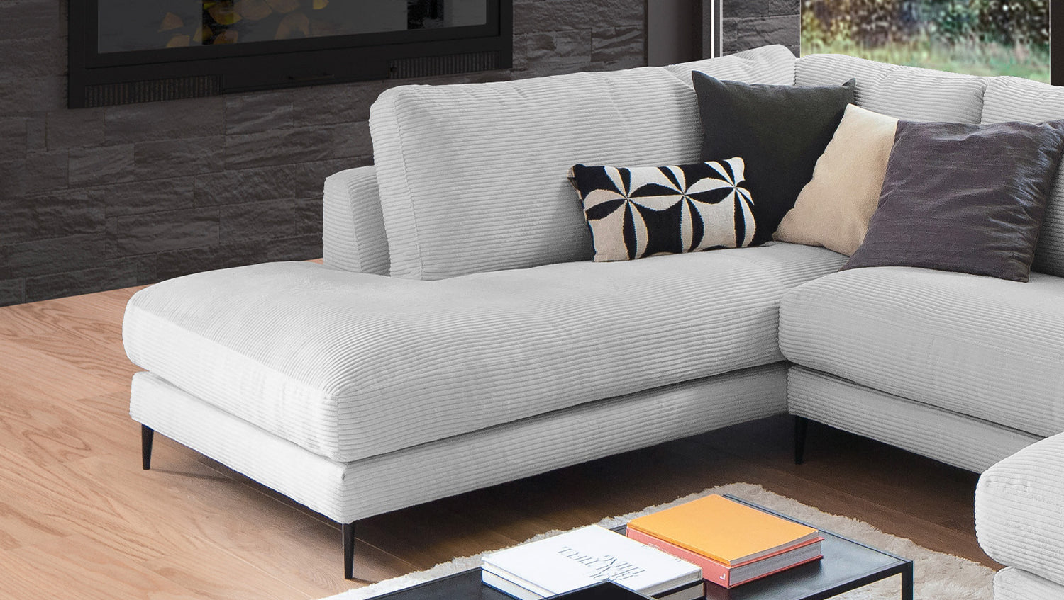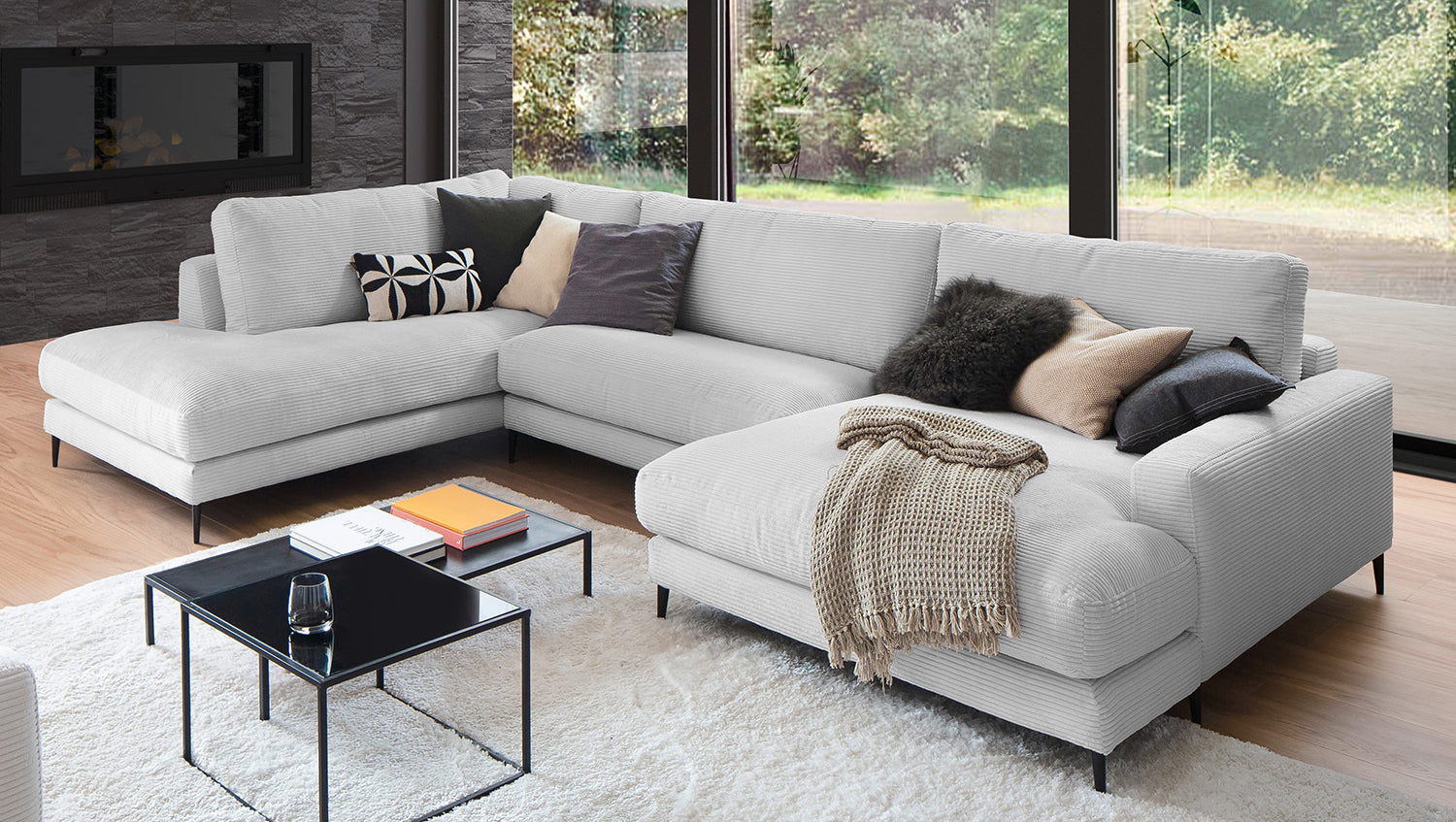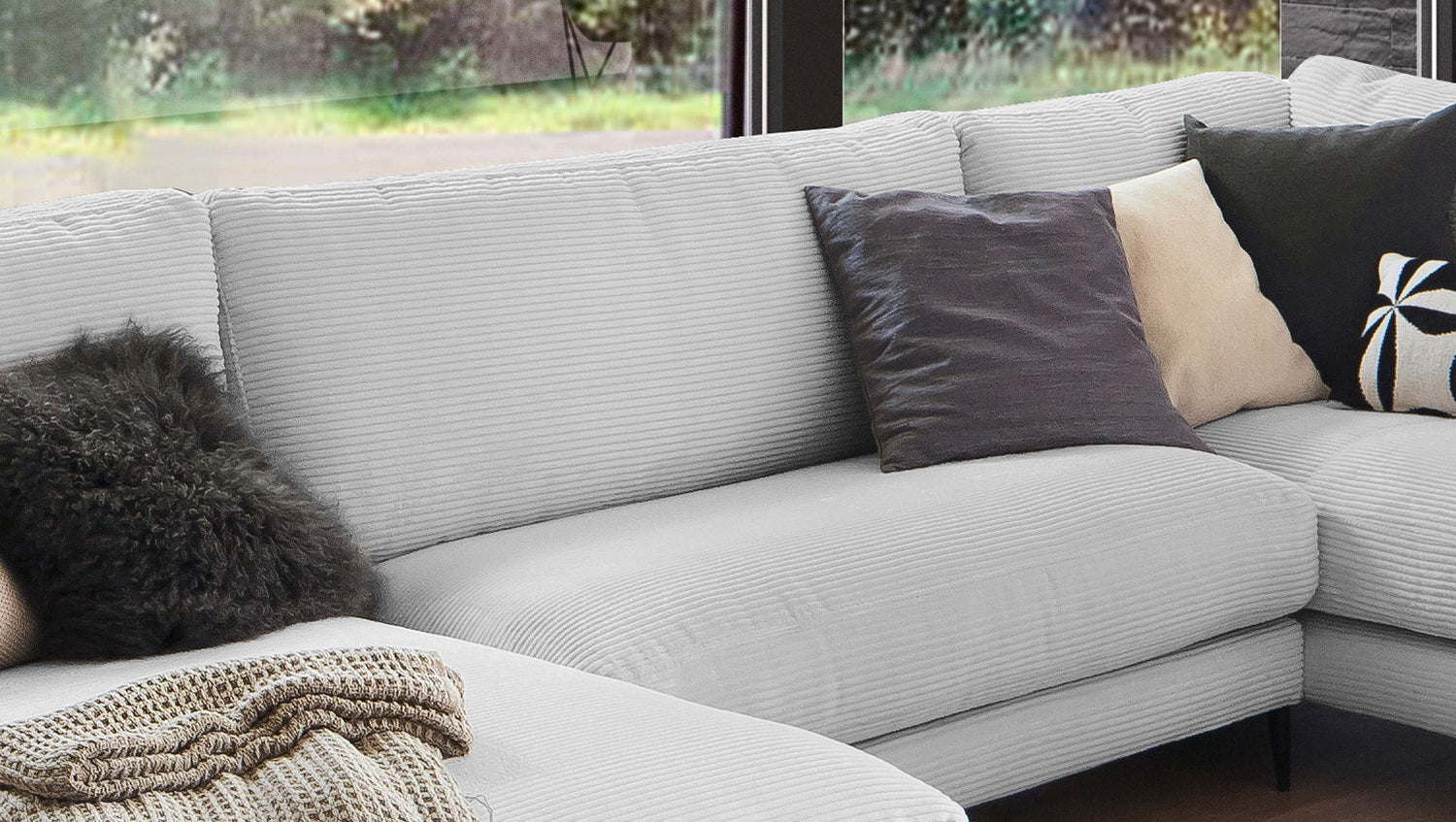 Die KAWOLA Wohnlandschaft CARA in U-Form verbindet klassisches Design mit moderner Sachlichkeit und fügt sich nahtlos in jedes Interieur ein. Seine weichen Formen und der Bezug aus angesagtem Cord-Stoff verleihen dem Sofa eine zeitlose Eleganz. Die komplexe, 3-stufige Polsterung garantiert höchsten Sitzkomfort und passt sich durch ihren legeren Aufbau der Körperform an. Darüber hinaus ist das Sofa mit hochwertigen Kammerkissen ausgestattet. Um ein Stauchen des Füllmaterials zu verhindern, sollten diese Rückenkissen nach Gebrauch aufgeschüttelt werden. Egal zu welcher Gelegenheit - auf dem Sofa CARA findet jeder ein Plätzchen zum Entspannen!