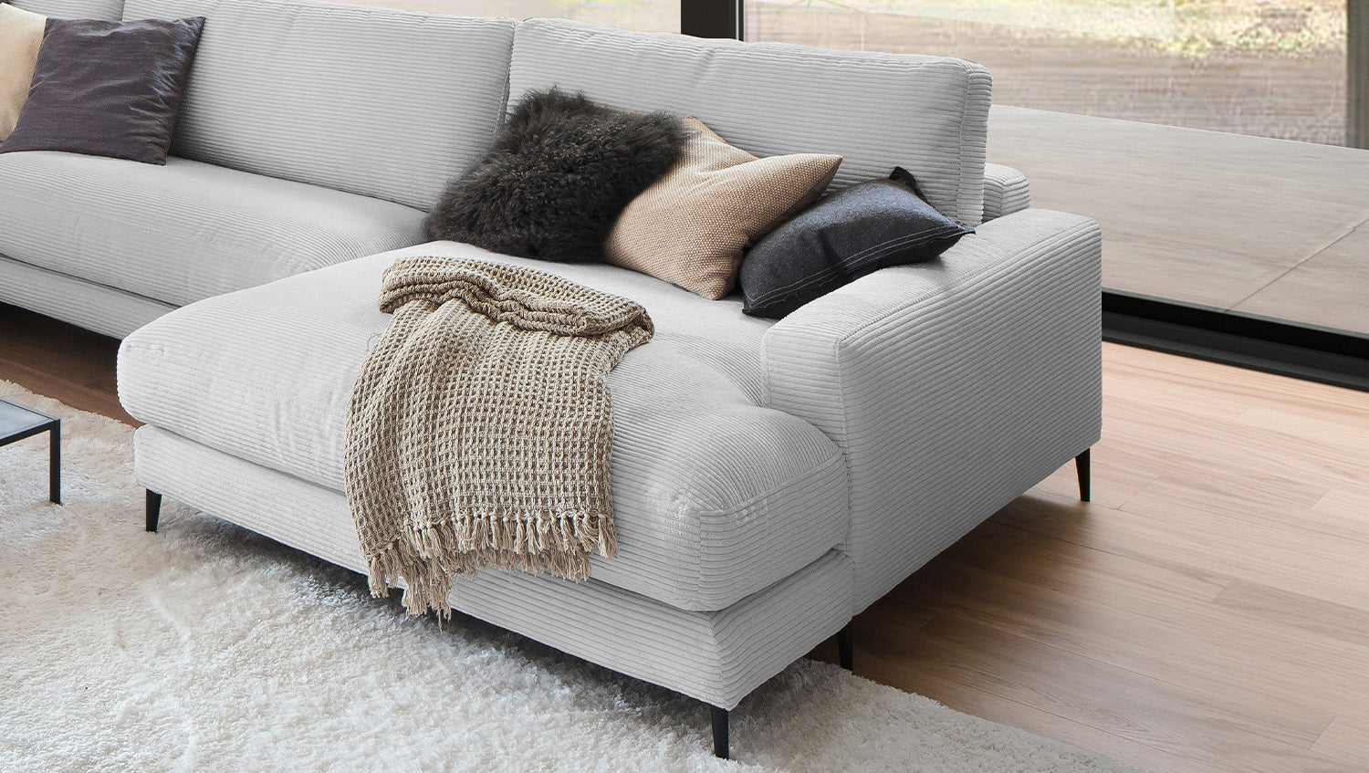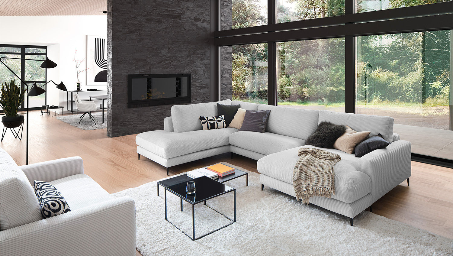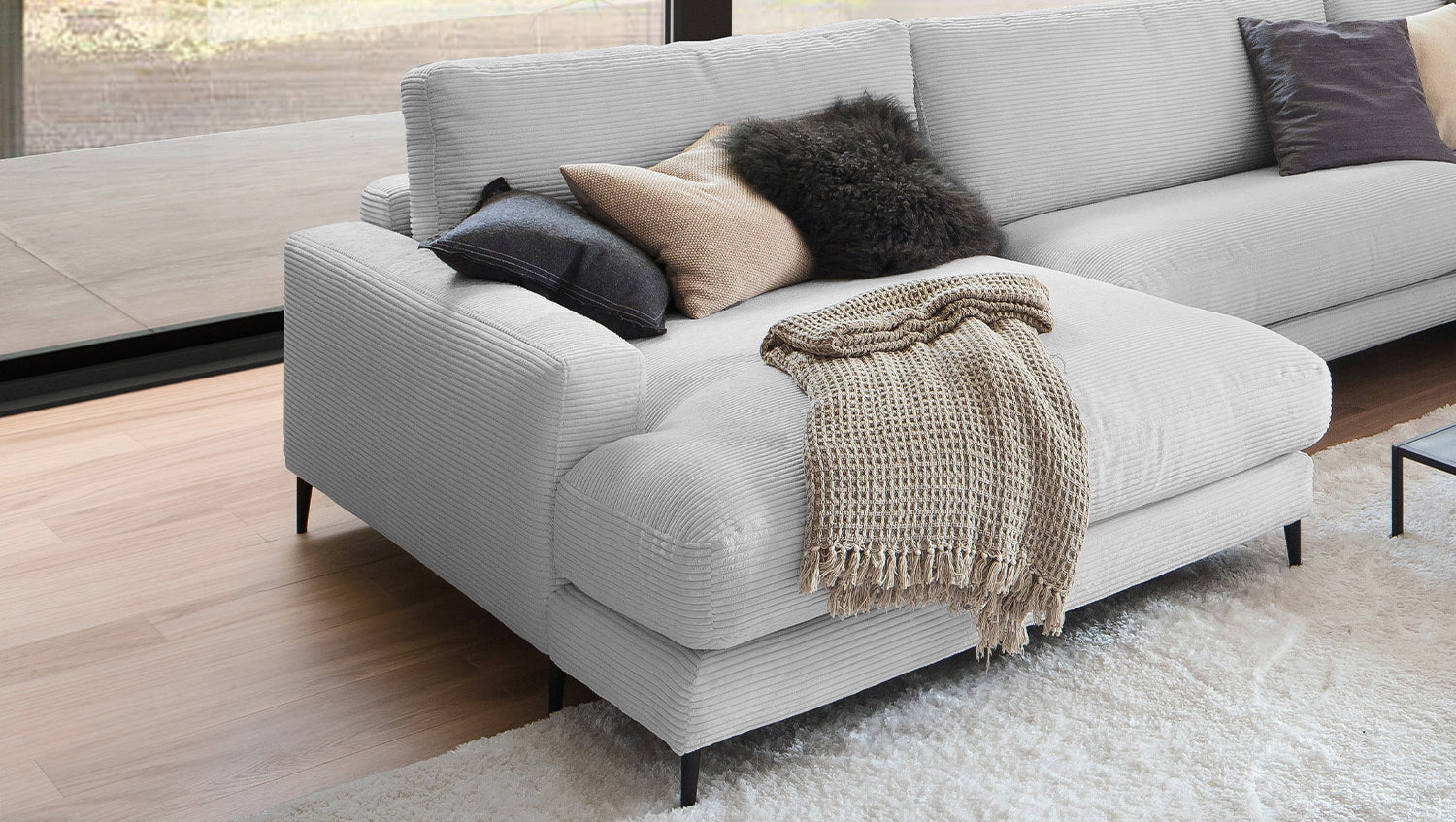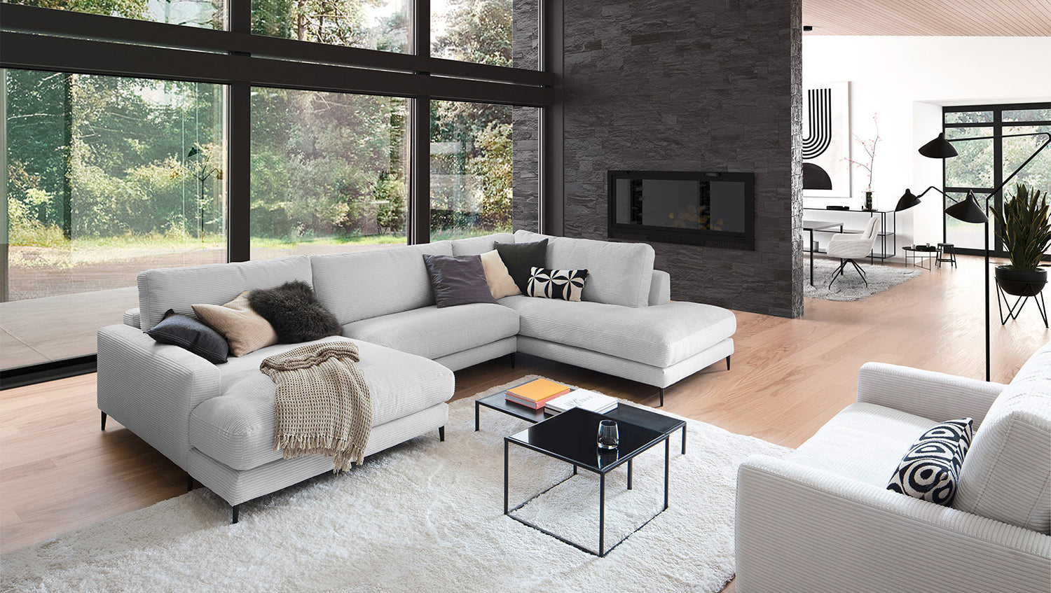 Die KAWOLA Wohnlandschaft CARA in U-Form verbindet klassisches Design mit moderner Sachlichkeit und fügt sich nahtlos in jedes Interieur ein. Seine weichen Formen und der Bezug aus angesagtem Cord-Stoff verleihen dem Sofa eine zeitlose Eleganz. Die komplexe, 3-stufige Polsterung garantiert höchsten Sitzkomfort und passt sich durch ihren legeren Aufbau der Körperform an. Darüber hinaus ist das Sofa mit hochwertigen Kammerkissen ausgestattet. Um ein Stauchen des Füllmaterials zu verhindern, sollten diese Rückenkissen nach Gebrauch aufgeschüttelt werden. Egal zu welcher Gelegenheit - auf dem Sofa CARA findet jeder ein Plätzchen zum Entspannen!