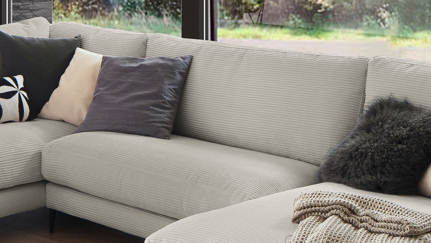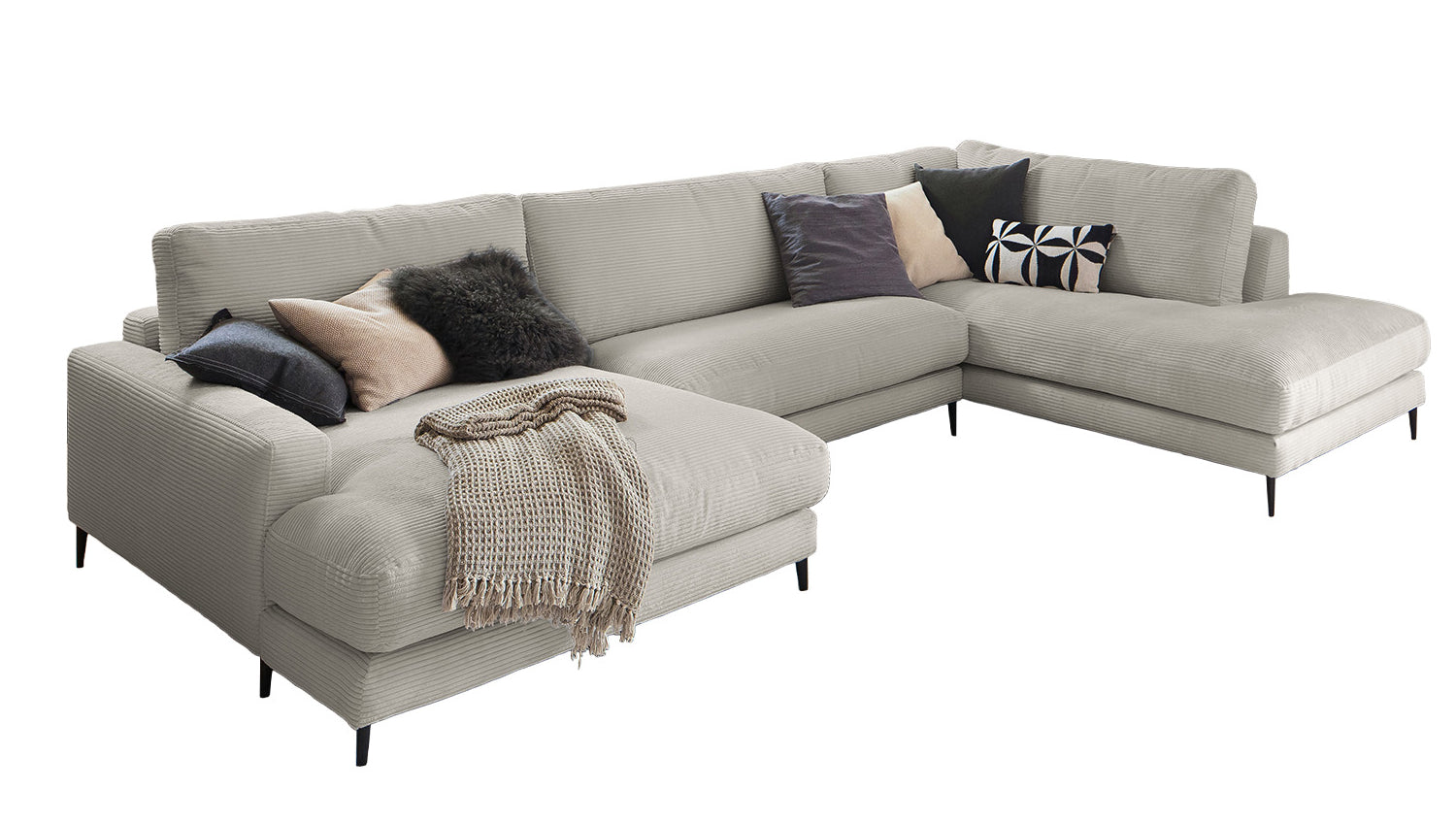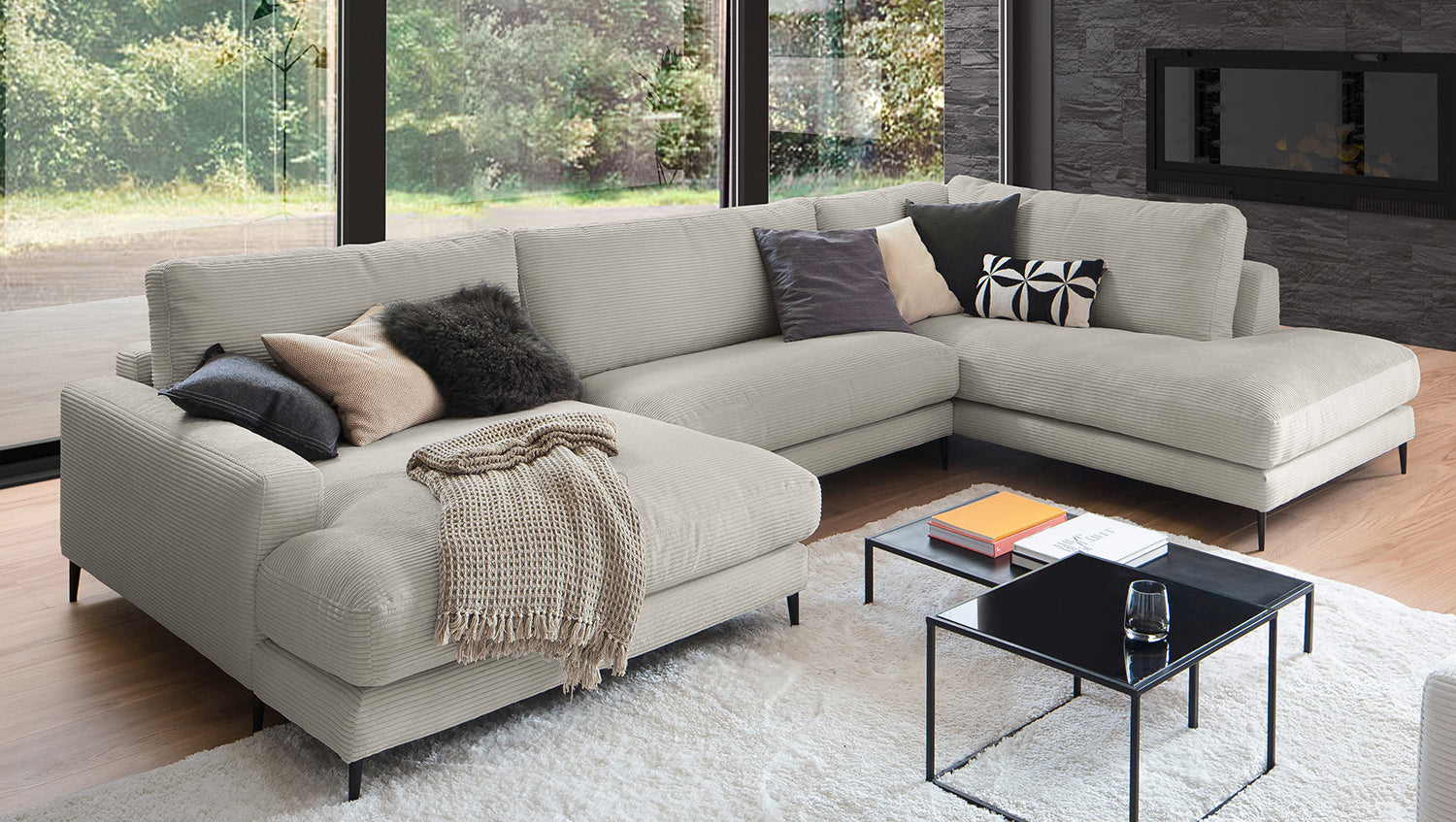 Die KAWOLA Wohnlandschaft CARA in U-Form verbindet klassisches Design mit moderner Sachlichkeit und fügt sich nahtlos in jedes Interieur ein. Seine weichen Formen und der Bezug aus angesagtem Cord-Stoff verleihen dem Sofa eine zeitlose Eleganz. Die komplexe, 3-stufige Polsterung garantiert höchsten Sitzkomfort und passt sich durch ihren legeren Aufbau der Körperform an. Darüber hinaus ist das Sofa mit hochwertigen Kammerkissen ausgestattet. Um ein Stauchen des Füllmaterials zu verhindern, sollten diese Rückenkissen nach Gebrauch aufgeschüttelt werden. Egal zu welcher Gelegenheit - auf dem Sofa CARA findet jeder ein Plätzchen zum Entspannen!