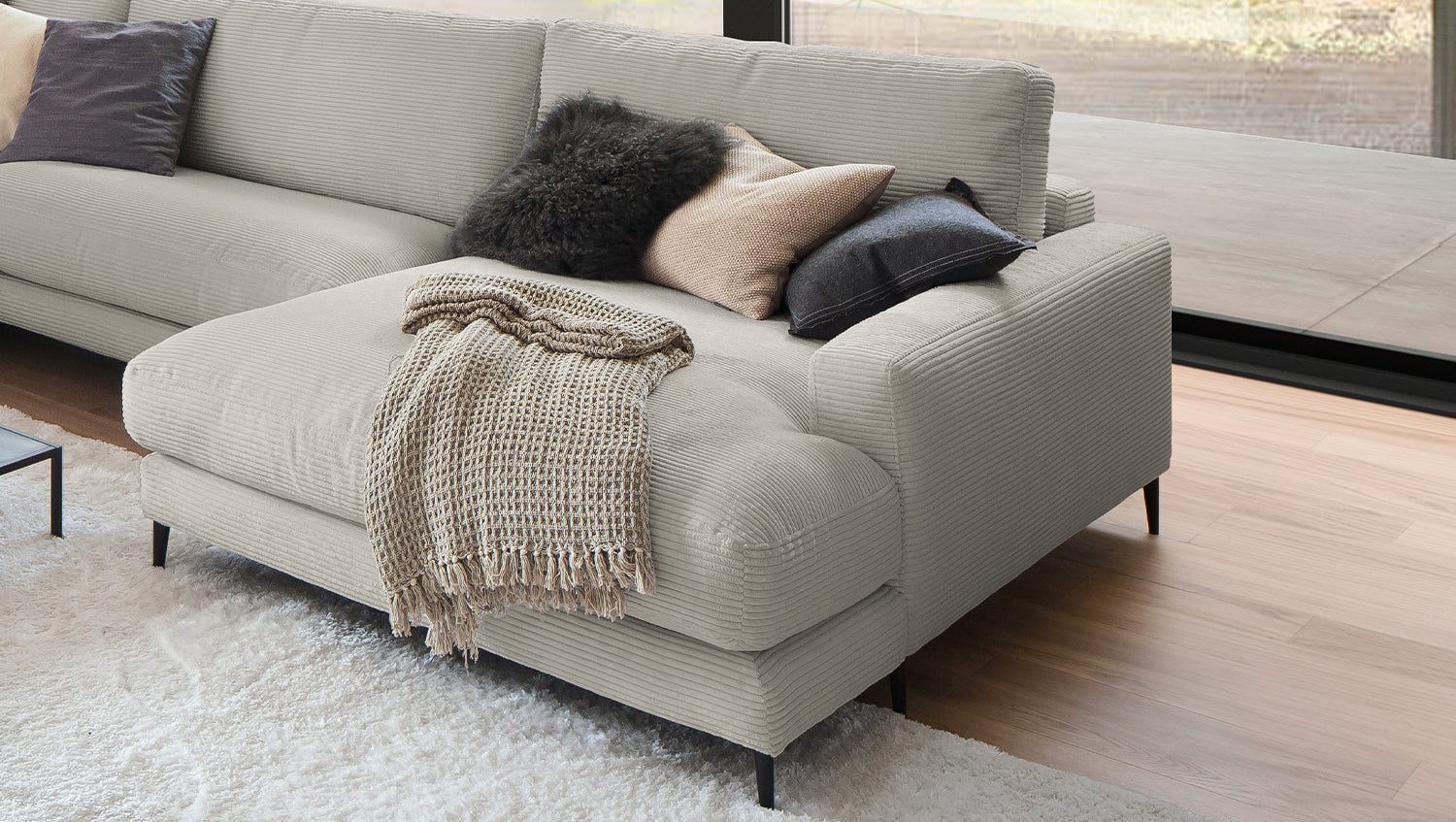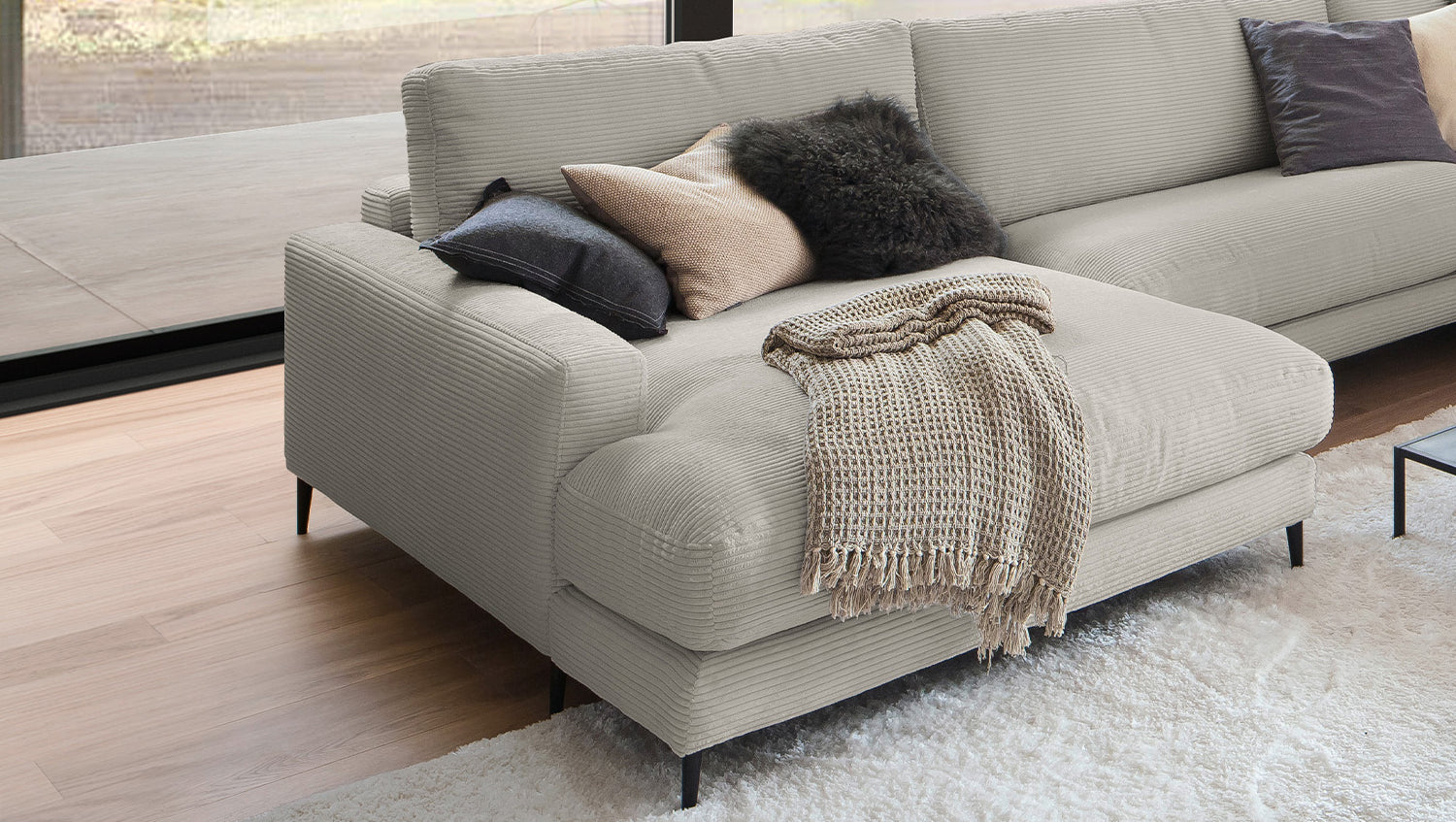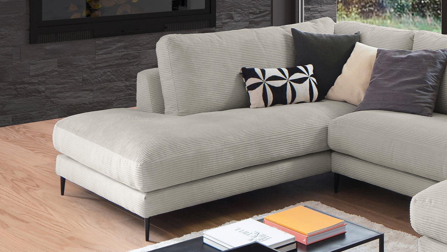 Die KAWOLA Wohnlandschaft CARA in U-Form verbindet klassisches Design mit moderner Sachlichkeit und fügt sich nahtlos in jedes Interieur ein. Seine weichen Formen und der Bezug aus angesagtem Cord-Stoff verleihen dem Sofa eine zeitlose Eleganz. Die komplexe, 3-stufige Polsterung garantiert höchsten Sitzkomfort und passt sich durch ihren legeren Aufbau der Körperform an. Darüber hinaus ist das Sofa mit hochwertigen Kammerkissen ausgestattet. Um ein Stauchen des Füllmaterials zu verhindern, sollten diese Rückenkissen nach Gebrauch aufgeschüttelt werden. Egal zu welcher Gelegenheit - auf dem Sofa CARA findet jeder ein Plätzchen zum Entspannen!