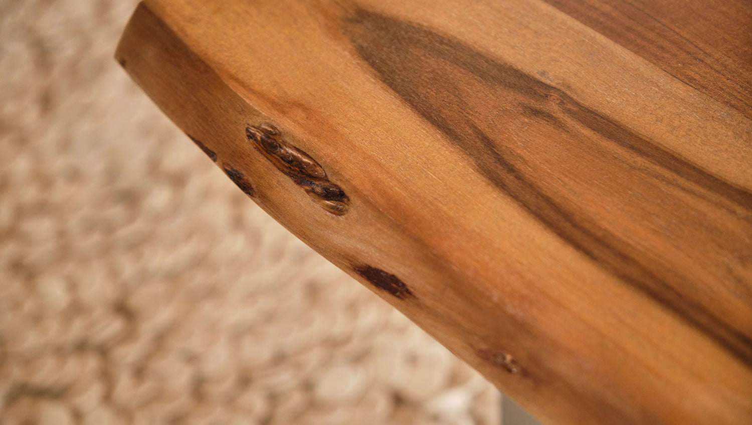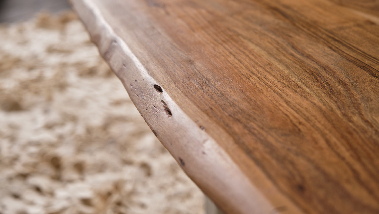 Bei diesem Baumkantentisch handelt es sich um ein Naturprodukt. Das macht ihn zu einem Unikat, jeder Tisch ist einzigartig. Maßabweichungen, Astlöcher und Risse sowie kleinere Unebenheiten sind warentypisch und kein Reklamationsgrund. Vorhandene Risse werden noch in der Herstellung mit Stücken der gleichen Holzart ausgefüllt. Daraus resultierende farbliche Abweichungen stellen ebenfalls keinen Reklamationsgrund dar.