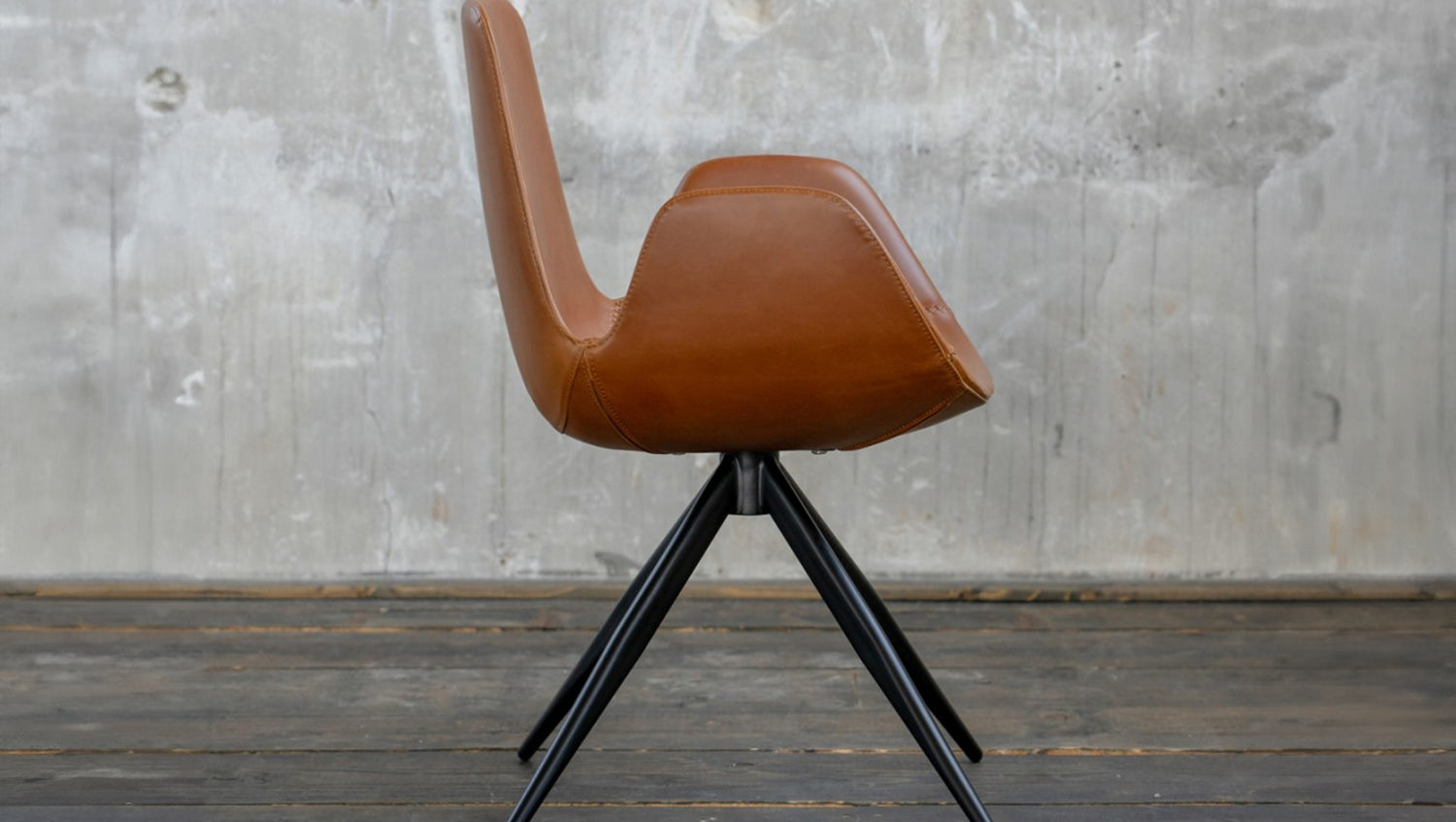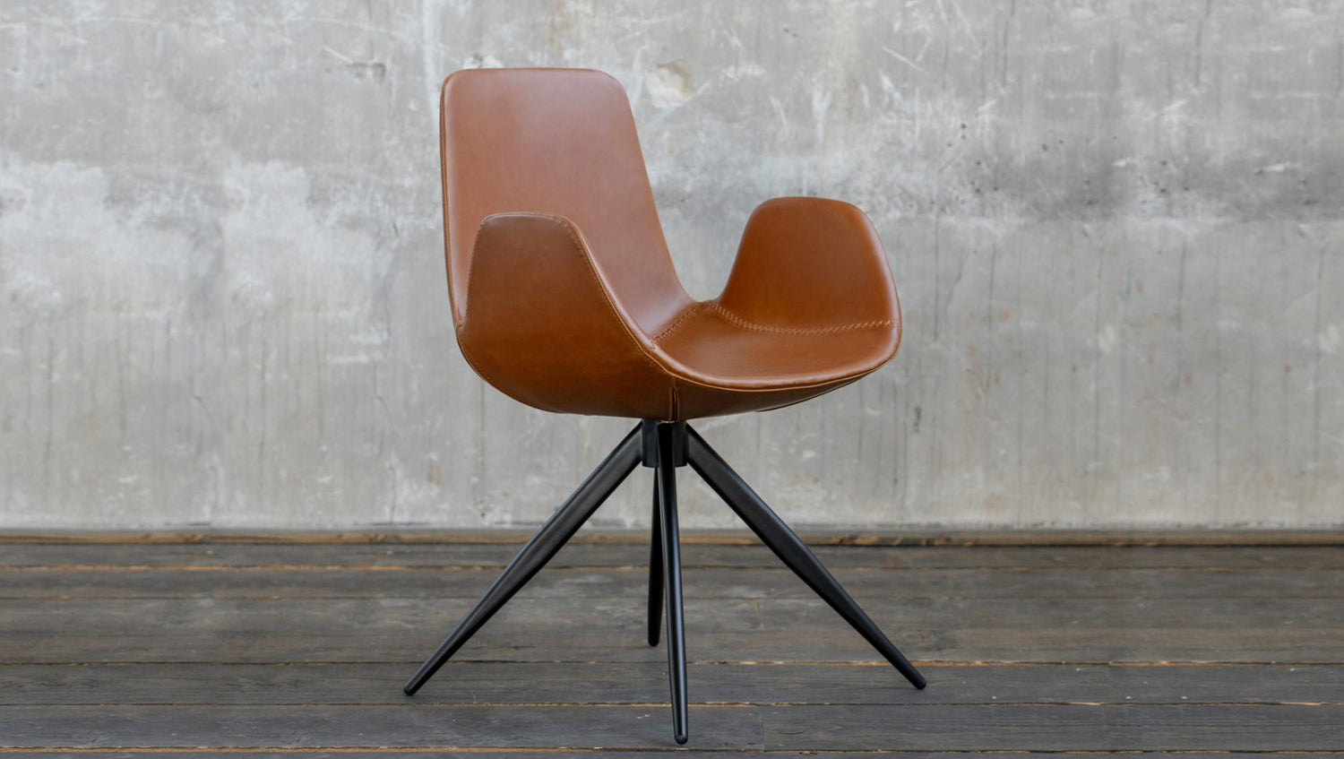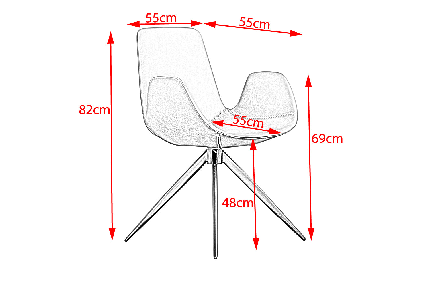 Die Sitzschale ist mit einem strapazierfähigen Kunstleder bezogen, welches vor allem durch die angenehme Haptik heraussticht. Die Füße des Stuhls haben die Farbe schwarz und setzen sich somit optimal von der modern geformten Sitzschale ab.