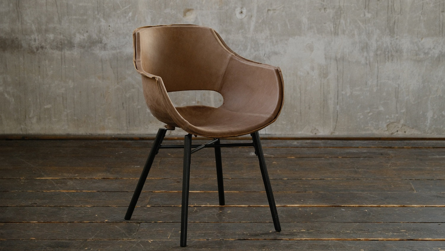 Der Stuhl ZAJA vereint industrielles und modernes Wohndesign. Hier können Sie sich bequem zurücklehnen und stilvoll speisen. Die Sitzschale ist in einem sehr hochwertigen Echtleder in der Farbe Camel bezogen. Das Leder ist sehr strapazierfähig, pflegeleicht und fällt vor allem durch seine angenehme Haptik auf.