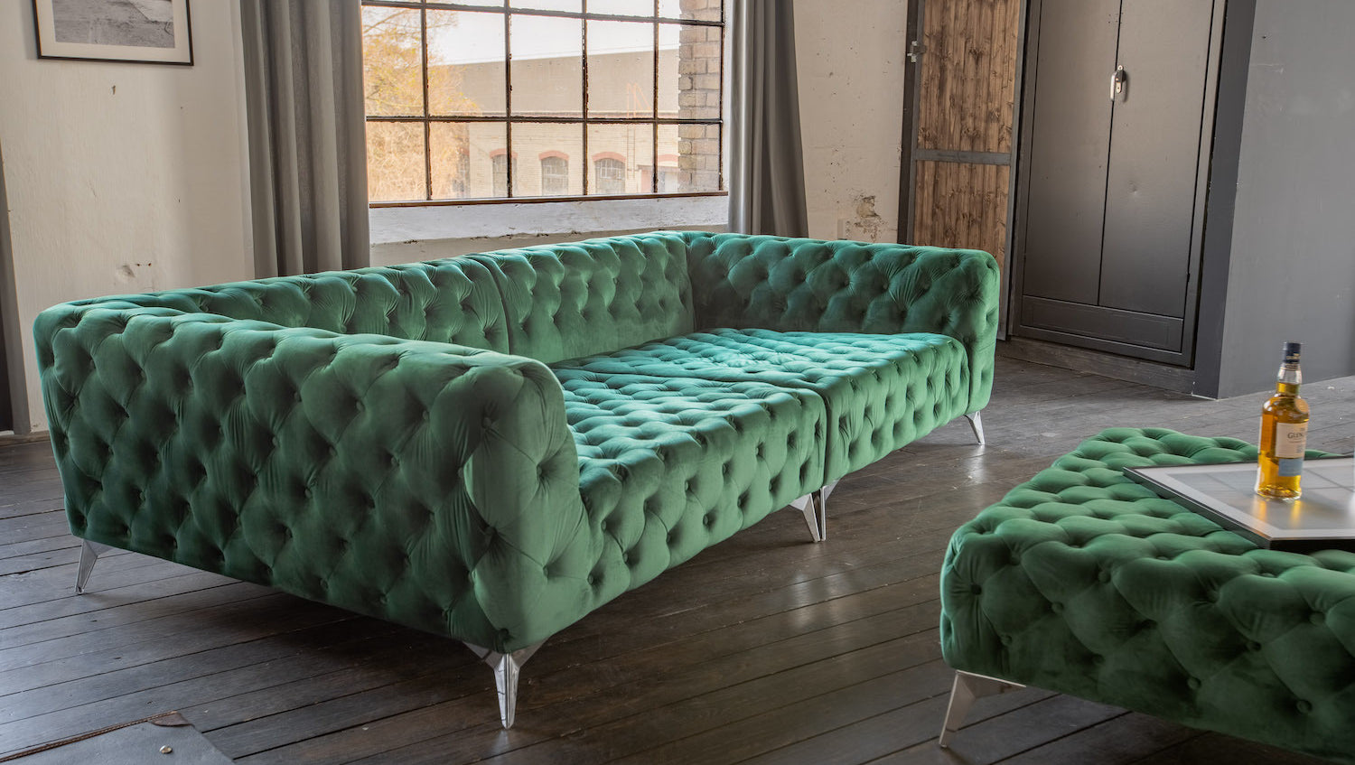 KAWOLA Big Sofa NARLA Chesterfield Sofa Velvet grün