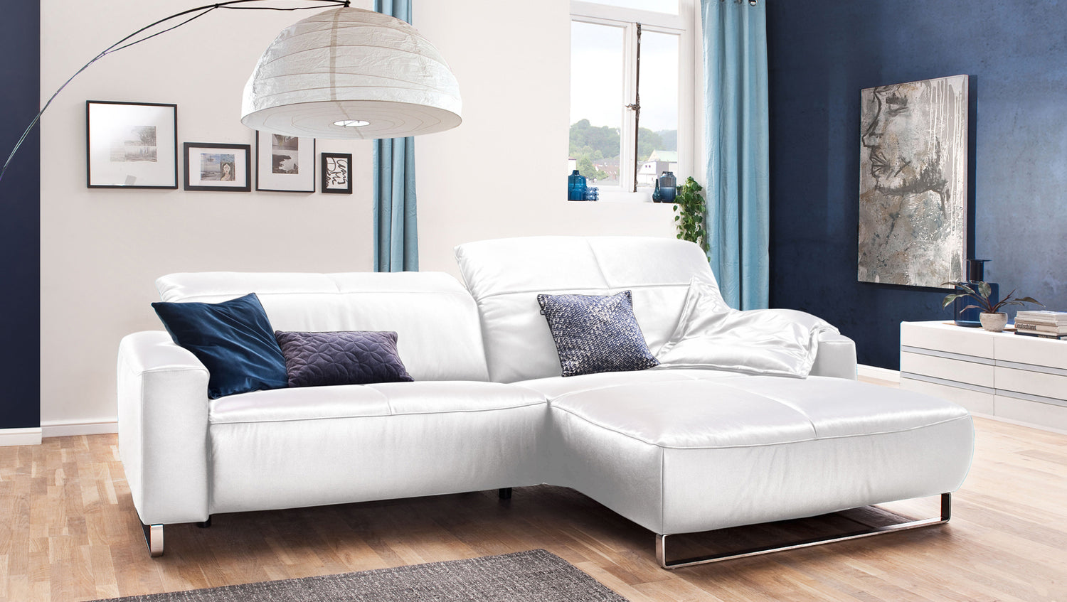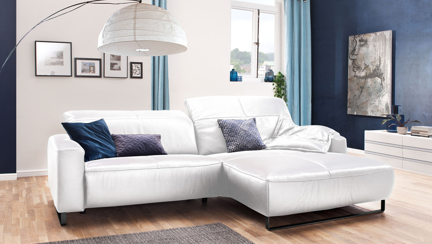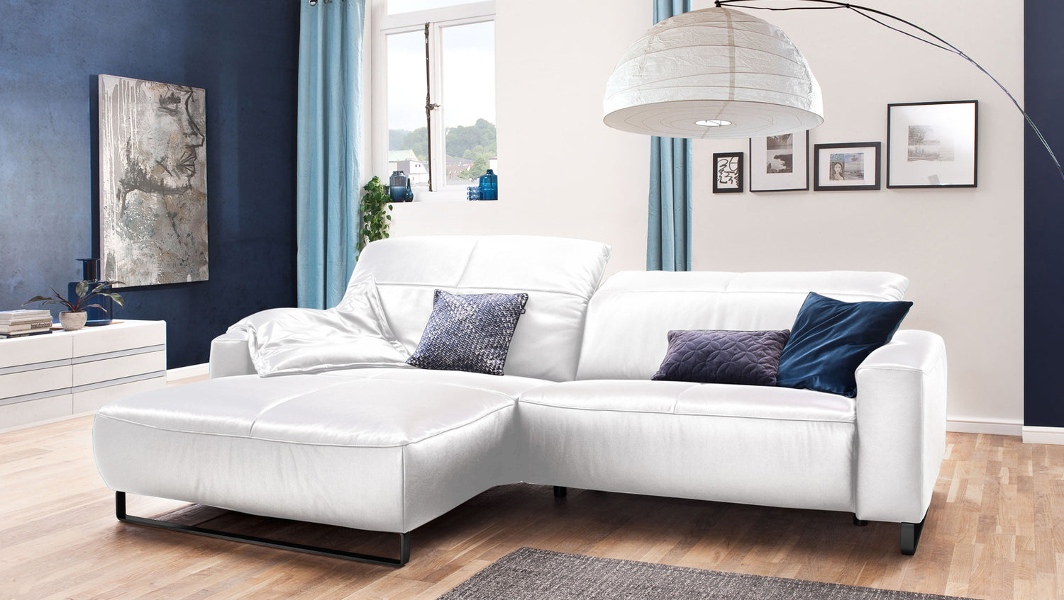 Das KAWOLA Sofa YORK in der Lederfarbe white ist ein wunderbar voluminöses Sofa, das zum Entspannen einlädt. Sein äußeres Erscheinungsbild spiegelt sich auch im Sitzkomfort wider: die besonders legere Polsterung und die sehr weiche und softe Oberfläche laden zum Relaxen ein und passt sich der Körperform wohlig an. Bei diesem Ledersofa kommt jeder auf seine Kosten, denn das KAWOLA Sofa YORK wurde komplett mit Leder überzogen und lässt sich dadurch auch frei in den Raum stellen. Die hier ausgewählte Bezugsfarbe Life-line white passt hervorragend zur Lederauswahl und zum Design des Ledersofas.