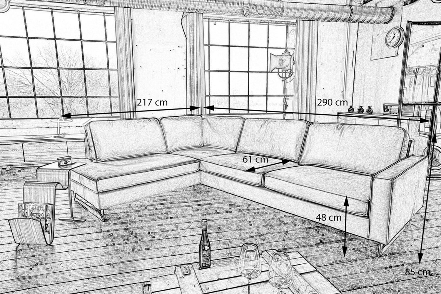 Extreme Robustheit ist durch das massive Holzgestell ebenso gegeben wie eine komfortable und legere Polsterung für ein weiches Sitzvergnügen. Trotz seiner großflächigen Maße lässt sich das Ecksofa in allen Räumlichkeiten flexibel positionieren und stellt damit jederzeit ein optisches Highlight dar.