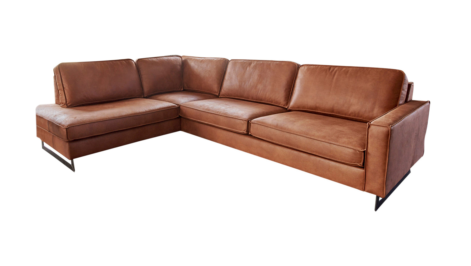 KAWOLA Ecksofa VILNIUS 3-Sitzer mit Recamiere Lederfaserstoff cognac