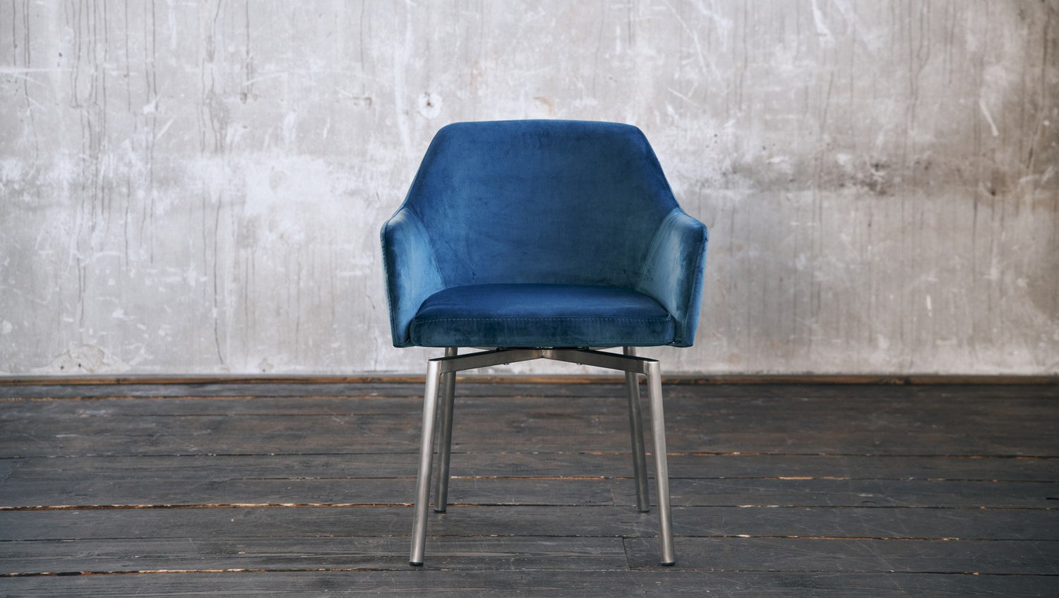 Das Gestell in Edelstahl harmonisiert hervorragend mit der Wahl des Bezuges und verleiht dem Stuhl seinen modernen Charakter.
